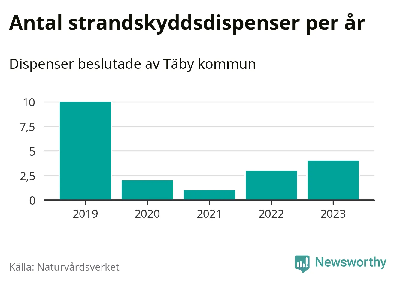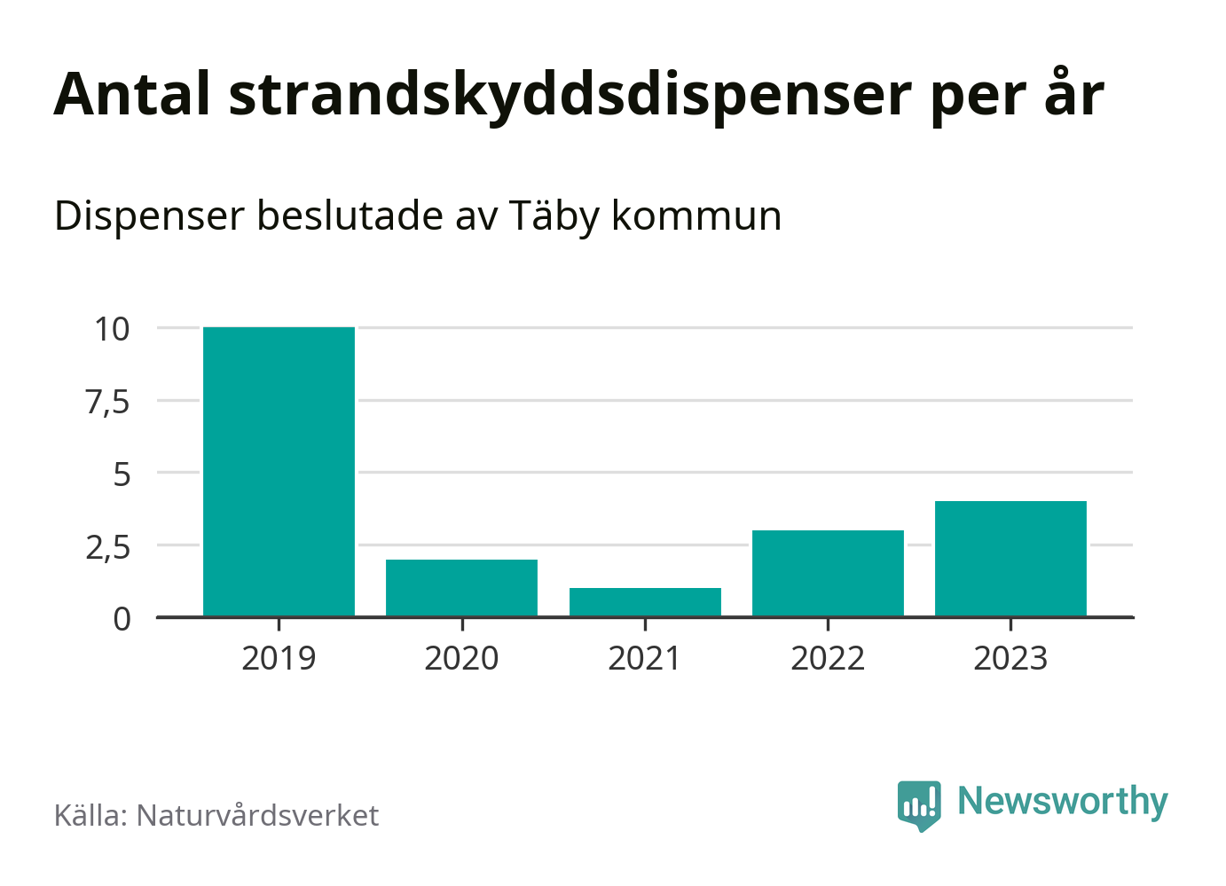 Strandskyddsdispenser per kommun 2019–2023 i Stockholms län