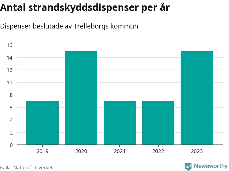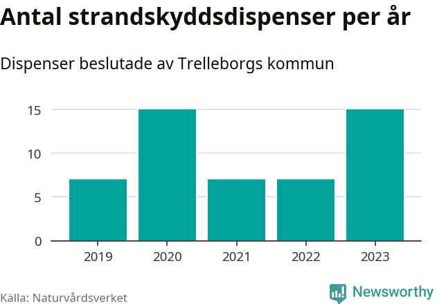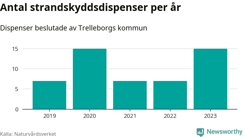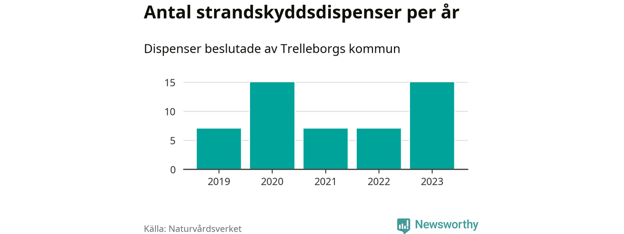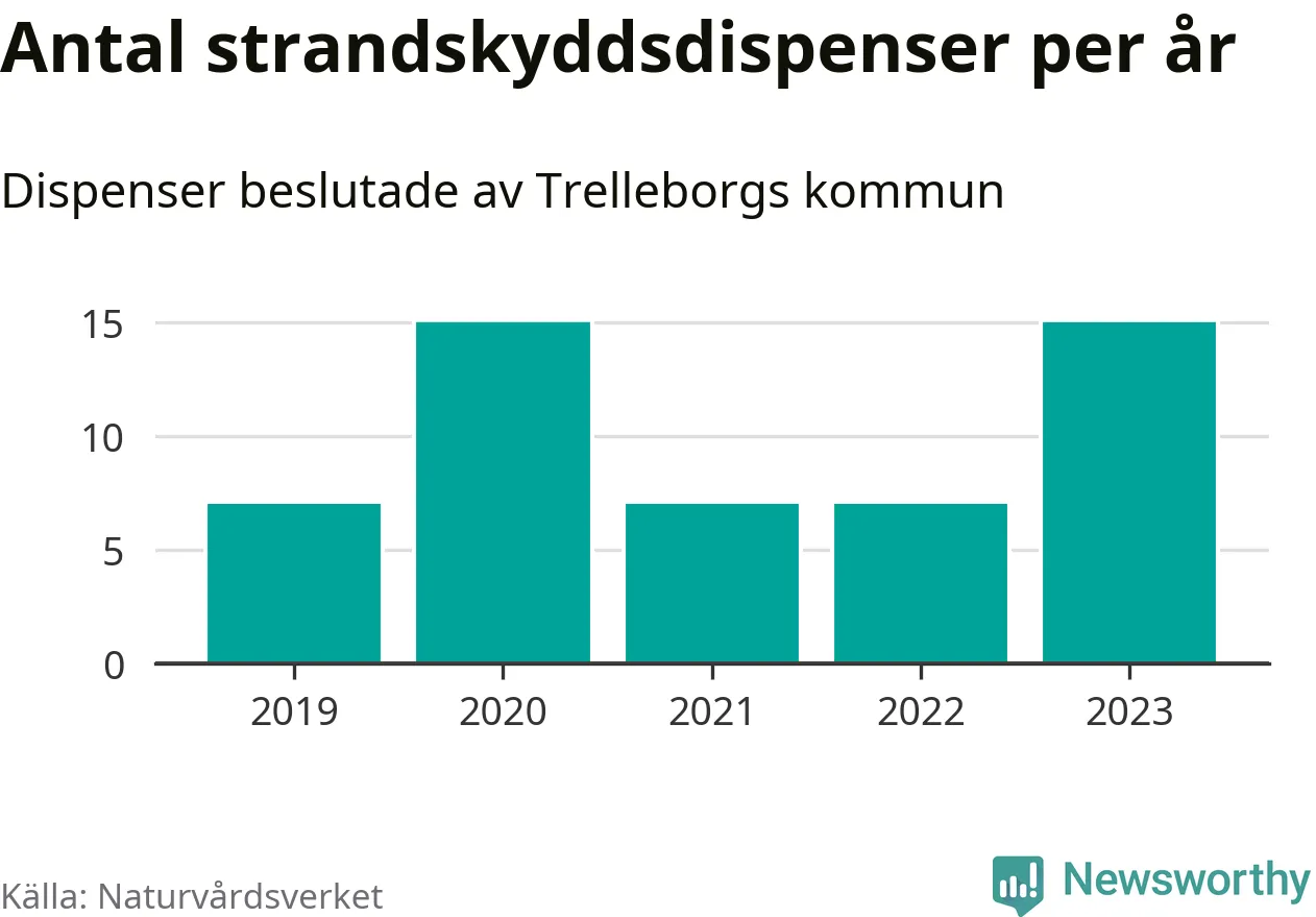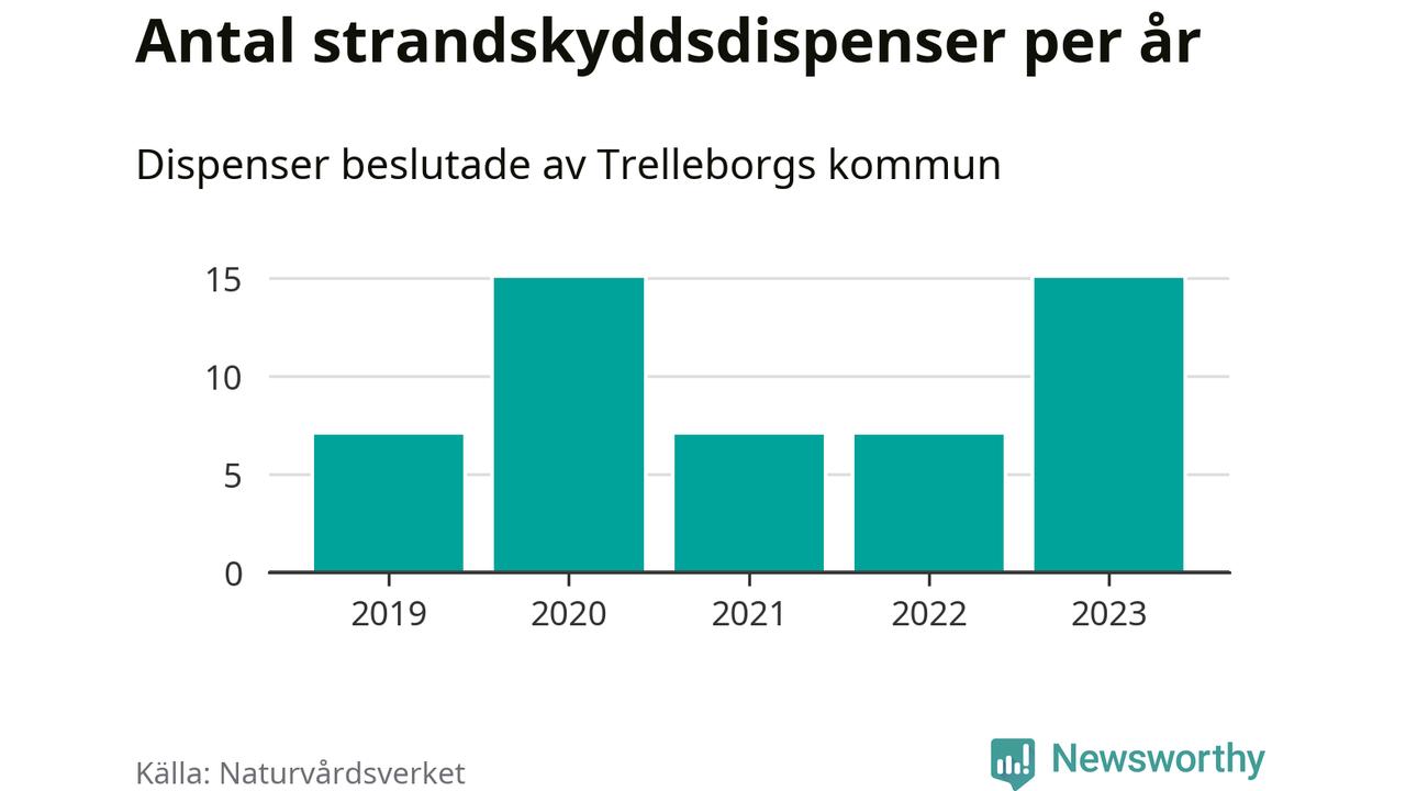 Den som vill bygga nära vatten behöver dispens från strandskyddet, lagstiftningen som ska säkra allmänhetens tillgång till stränderna och bevara livsvillkor för djur och växter. I de flesta fall är det kommunerna som godkänner dispenserna, och under de senaste fem åren har Trelleborgs kommun fattat 51 beslut för totalt 63 åtgärder inom strandskyddat område, enligt den sammanställning Naturvårdsverket varje år gör. Det är tredje flest av kommunerna i Skåne län. Flest dispenser i länet har godkänts i Kristianstad – 111 stycken.