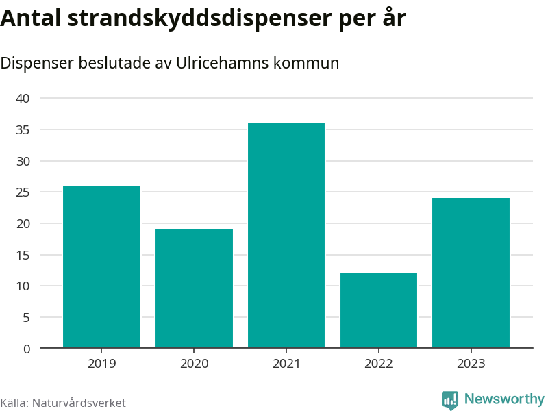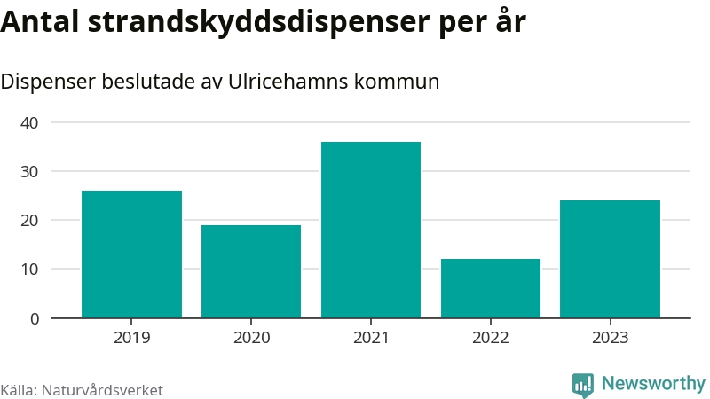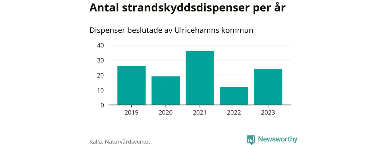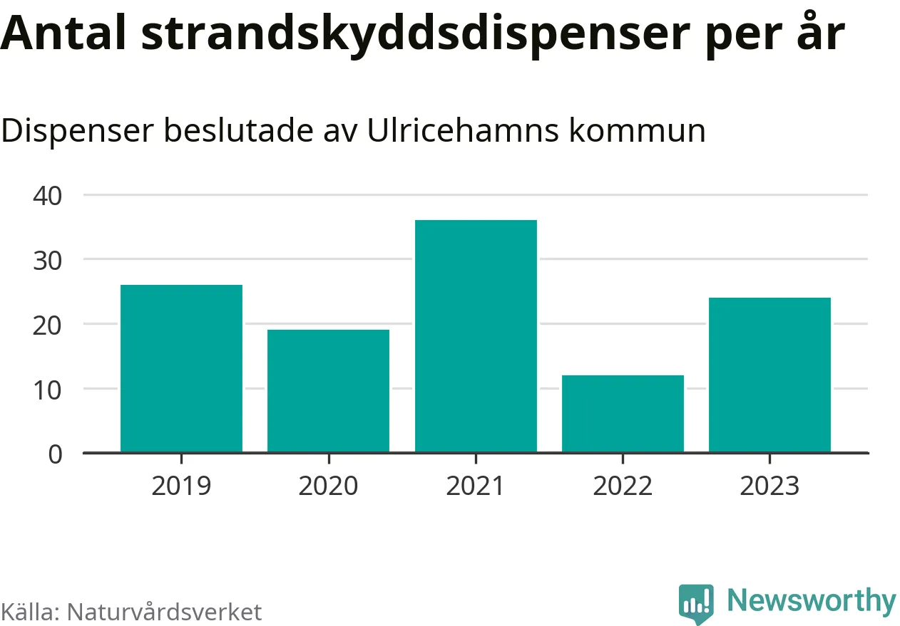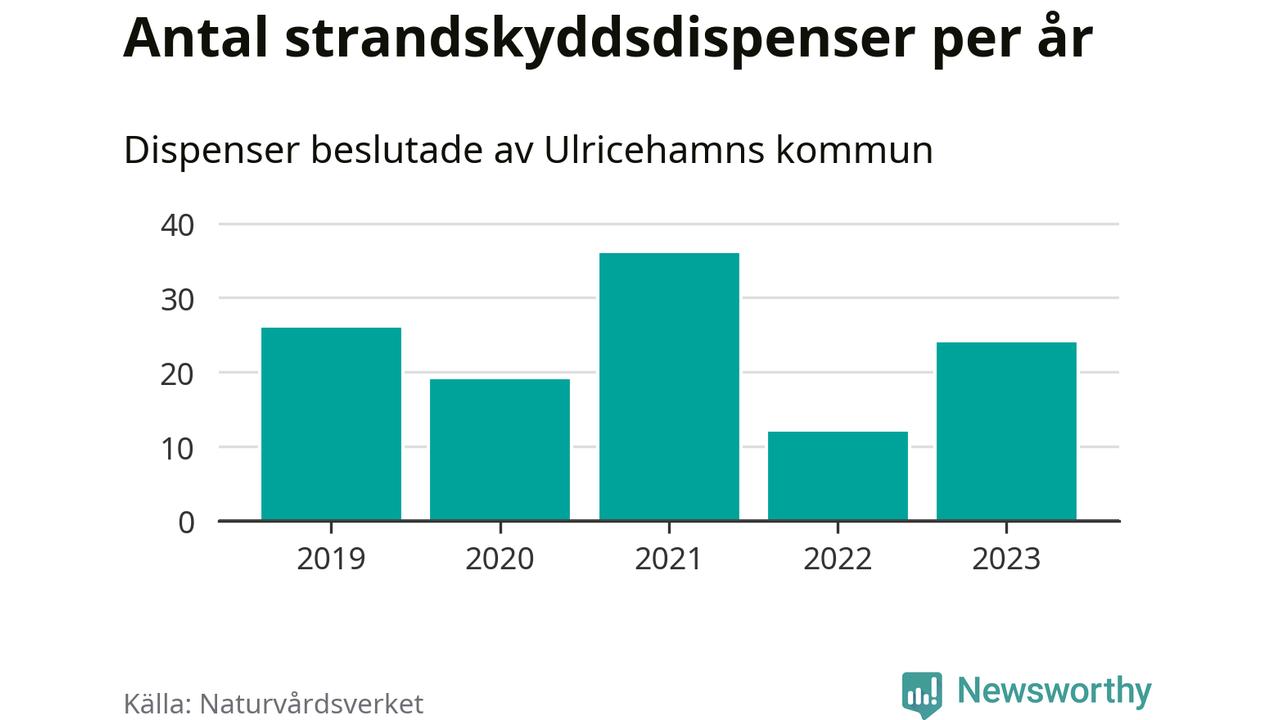 Den som vill bygga nära vatten behöver dispens från strandskyddet, lagstiftningen som ska säkra allmänhetens tillgång till stränderna och bevara livsvillkor för djur och växter. I de flesta fall är det kommunerna som godkänner dispenserna, och under de senaste fem åren har Ulricehamns kommun fattat 117 beslut för totalt 250 åtgärder inom strandskyddat område, enligt den sammanställning Naturvårdsverket varje år gör. Det är fler än i de flesta kommuner i landet. Flest dispenser i Västra Götalands län har godkänts i Borås – 220 stycken.