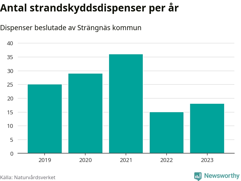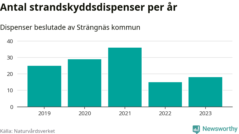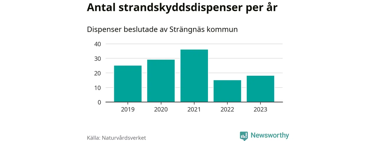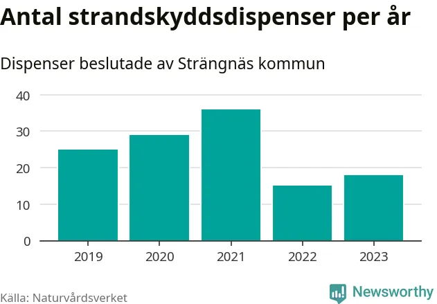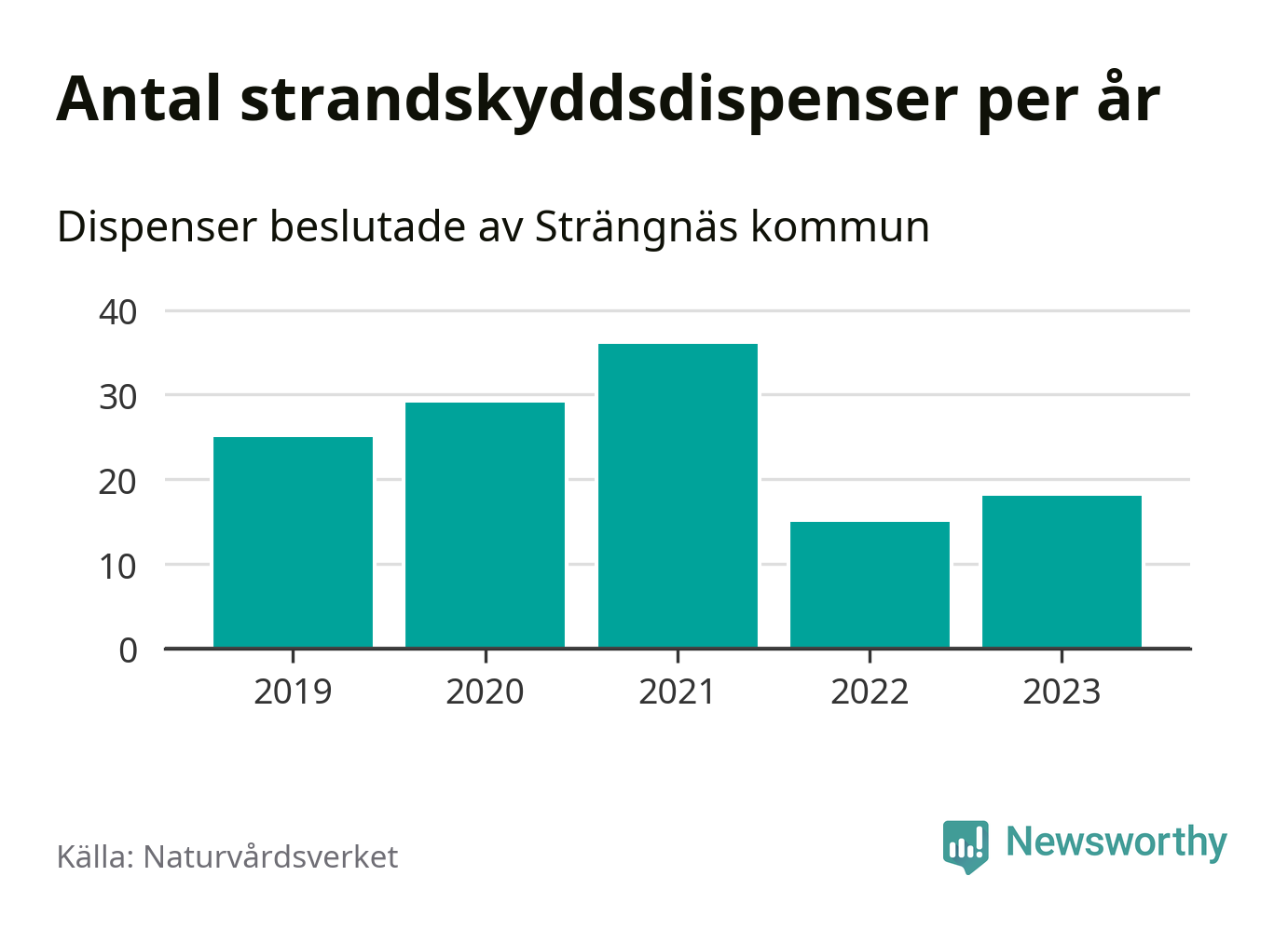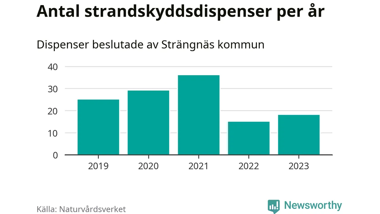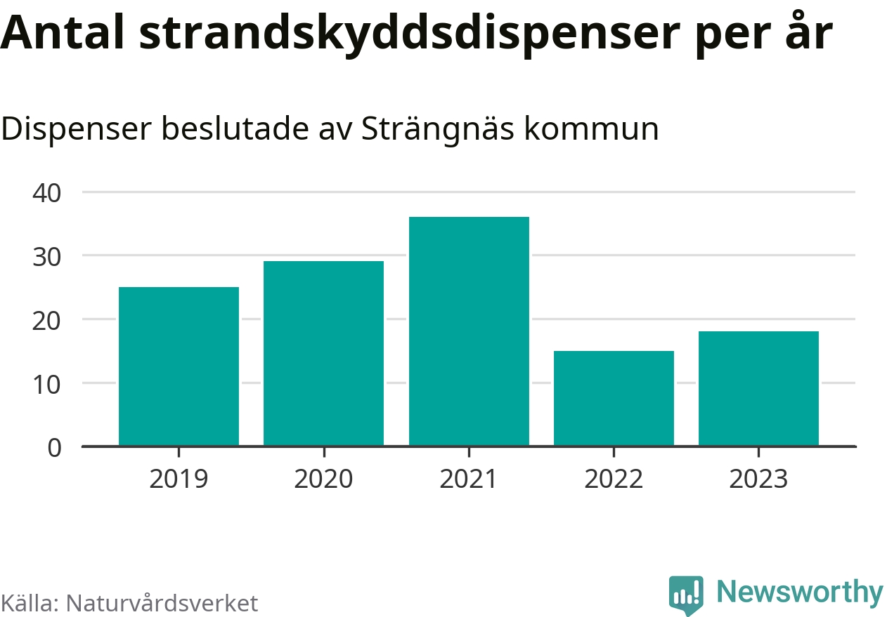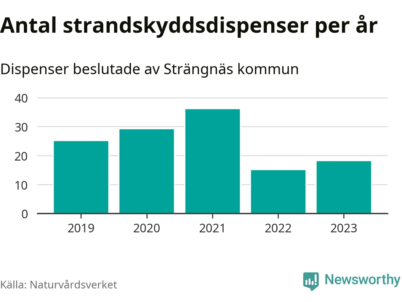 Den som vill bygga nära vatten behöver dispens från strandskyddet, lagstiftningen som ska säkra allmänhetens tillgång till stränderna och bevara livsvillkor för djur och växter. I de flesta fall är det kommunerna som godkänner dispenserna, och under de senaste fem åren har Strängnäs kommun fattat 123 beslut för totalt 168 åtgärder inom strandskyddat område, enligt den sammanställning Naturvårdsverket varje år gör. Det är näst flest av kommunerna i Södermanlands län. Flest dispenser i länet har godkänts i Eskilstuna – 157 stycken.
