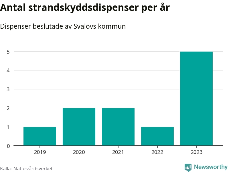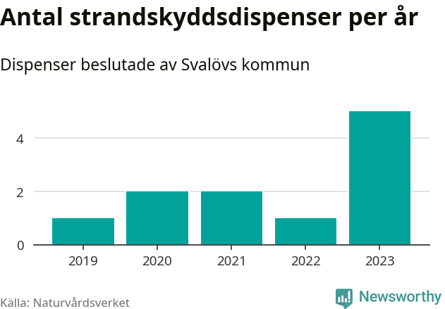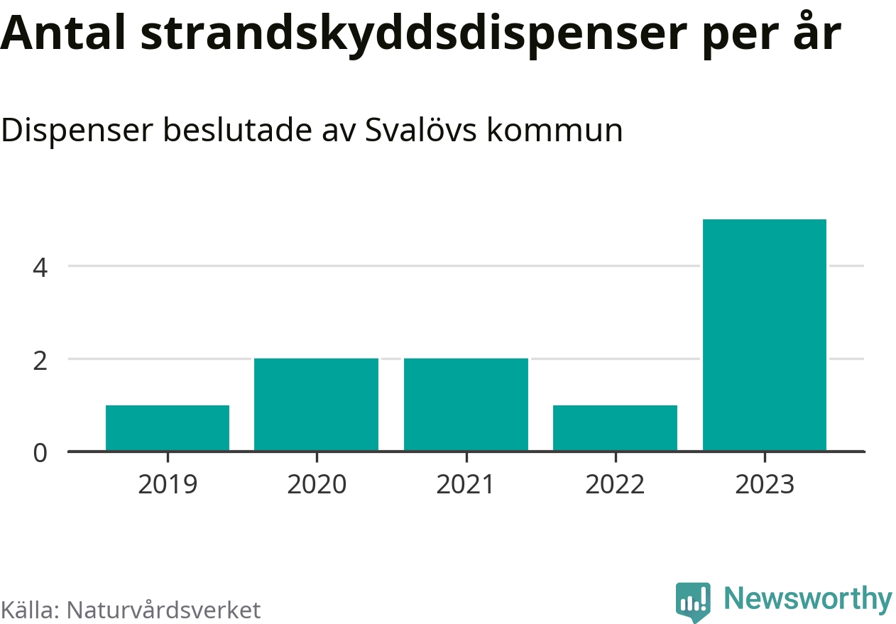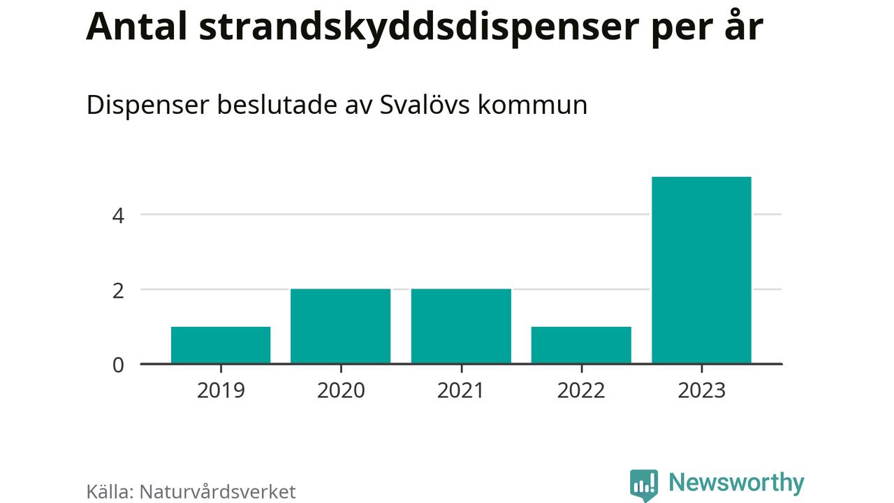 Den som vill bygga nära vatten behöver dispens från strandskyddet, lagstiftningen som ska säkra allmänhetens tillgång till stränderna och bevara livsvillkor för djur och växter. I de flesta fall är det kommunerna som godkänner dispenserna, och under de senaste fem åren har Svalövs kommun fattat elva beslut om dispens inom strandskyddat område, enligt den sammanställning Naturvårdsverket varje år gör. Det är färre än i de flesta kommuner i landet. Flest dispenser i Skåne län har godkänts i Kristianstad – 111 stycken.
