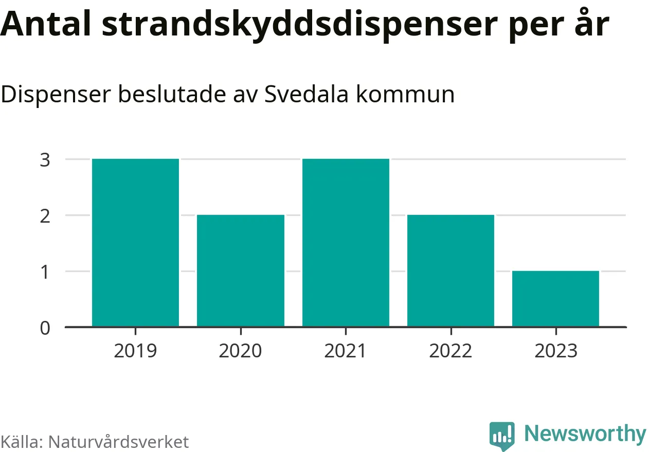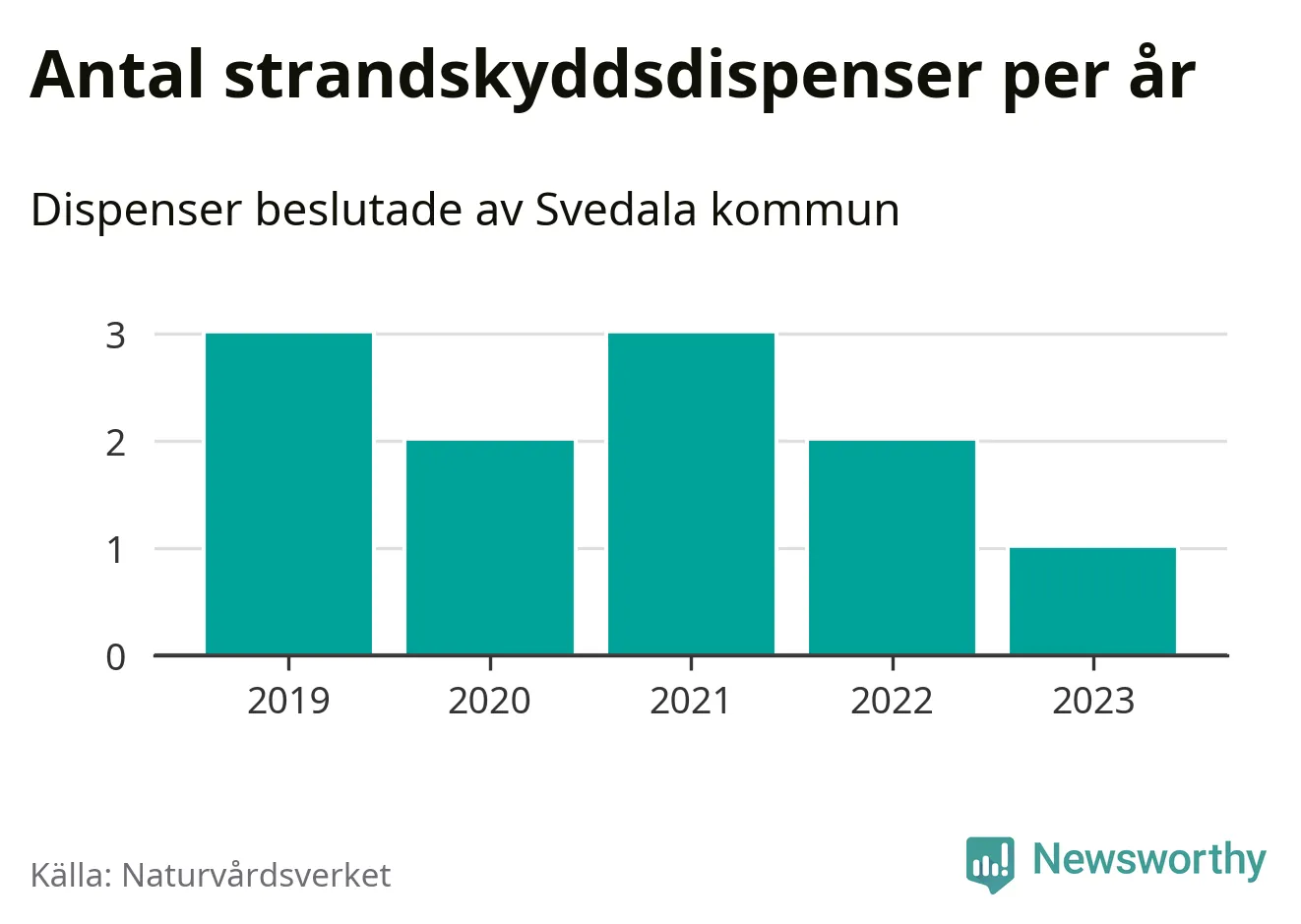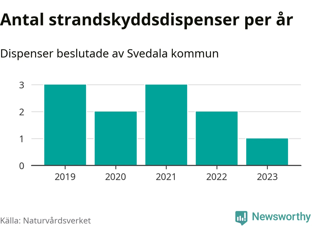 Den som vill bygga nära vatten behöver dispens från strandskyddet, lagstiftningen som ska säkra allmänhetens tillgång till stränderna och bevara livsvillkor för djur och växter. I de flesta fall är det kommunerna som godkänner dispenserna, och under de senaste fem åren har Svedala kommun fattat elva beslut för totalt 13 åtgärder inom strandskyddat område, enligt den sammanställning Naturvårdsverket varje år gör. Det är färre än i de flesta kommuner i landet. Flest dispenser i Skåne län har godkänts i Kristianstad – 111 stycken.