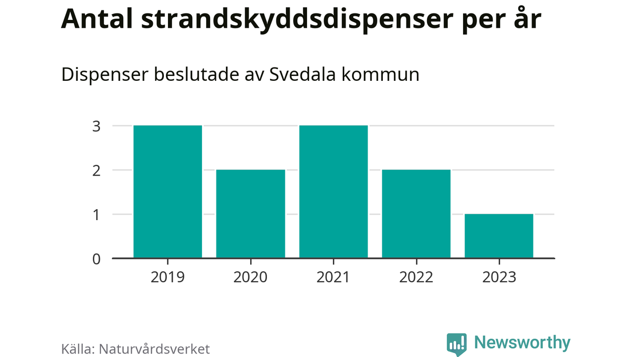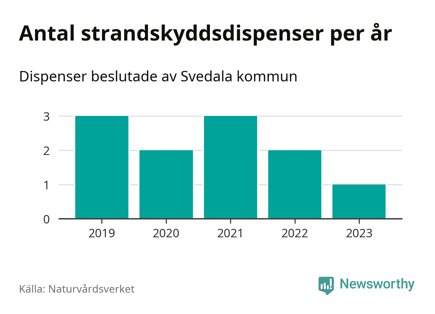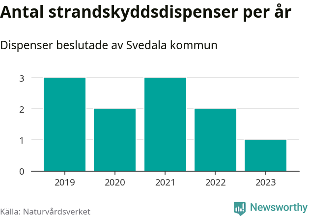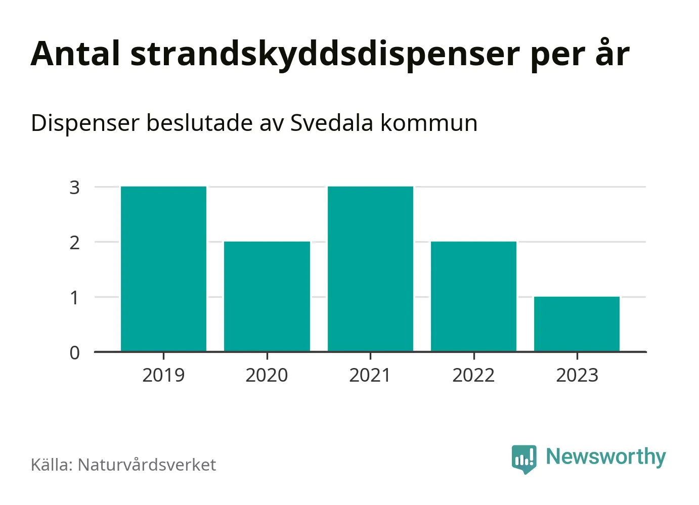 Den som vill bygga nära vatten behöver dispens från strandskyddet, lagstiftningen som ska säkra allmänhetens tillgång till stränderna och bevara livsvillkor för djur och växter. I de flesta fall är det kommunerna som godkänner dispenserna, och under de senaste fem åren har Svedala kommun fattat elva beslut för totalt 13 åtgärder inom strandskyddat område, enligt den sammanställning Naturvårdsverket varje år gör. Det är färre än i de flesta kommuner i landet. Flest dispenser i Skåne län har godkänts i Kristianstad – 111 stycken.