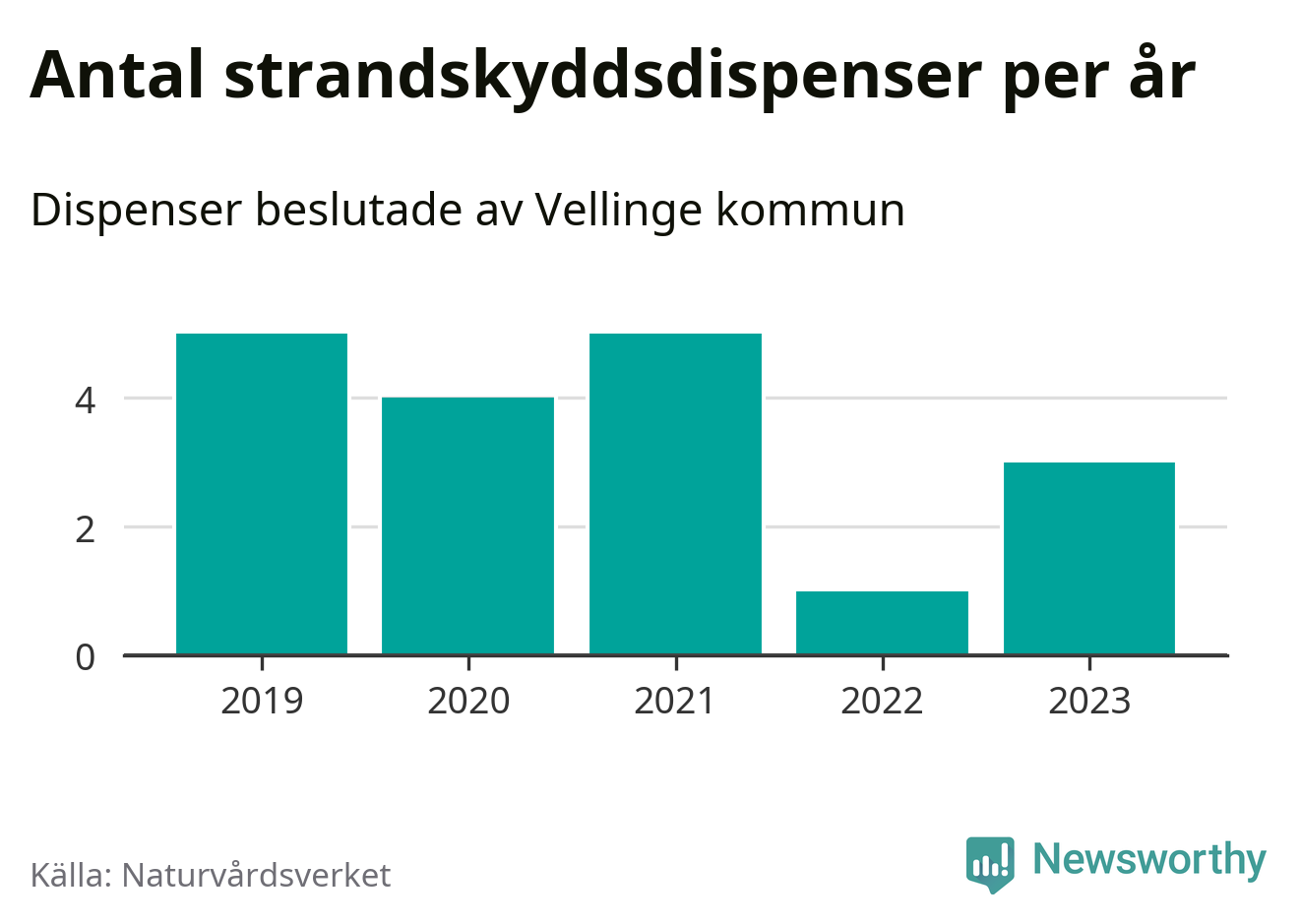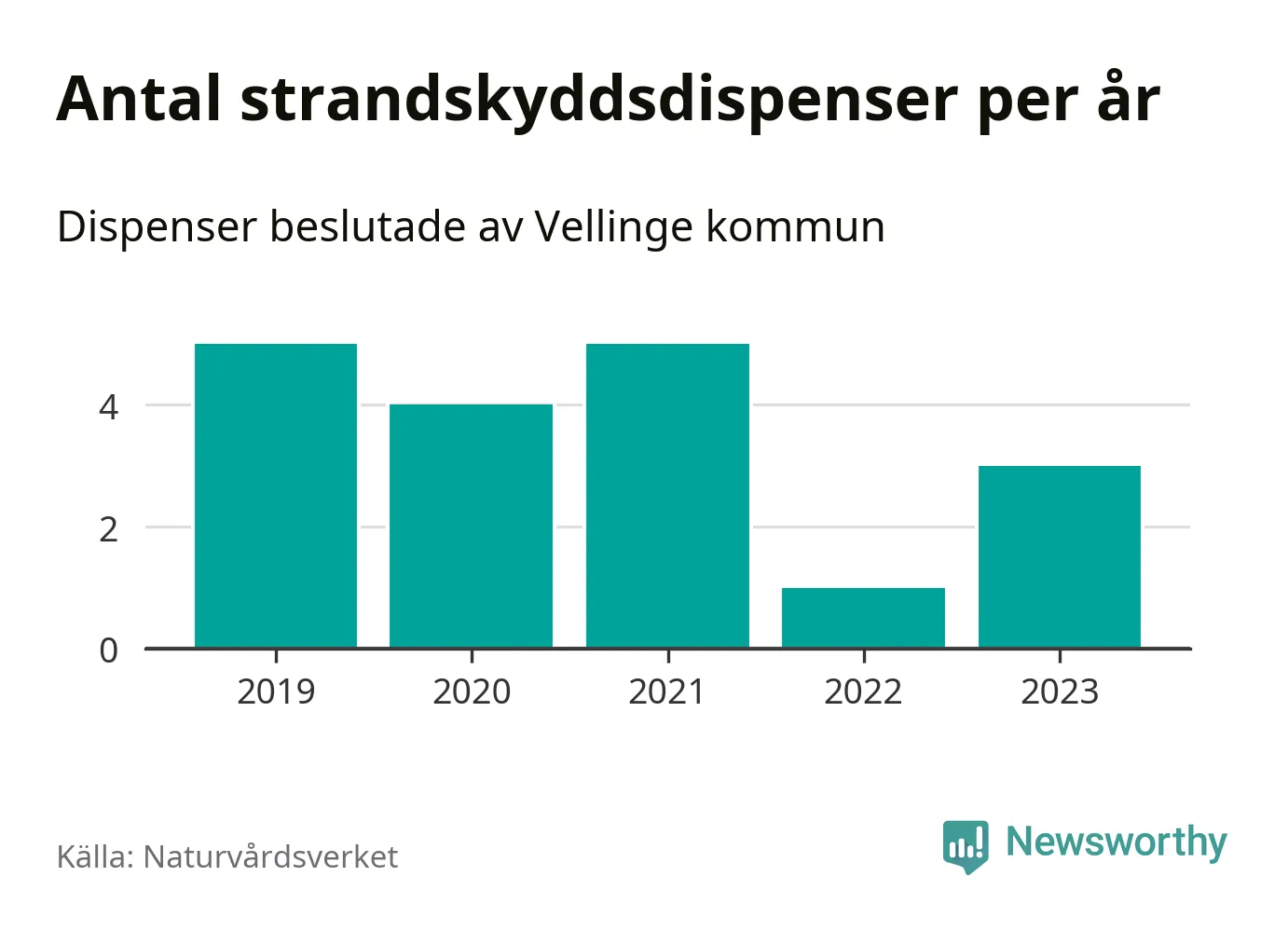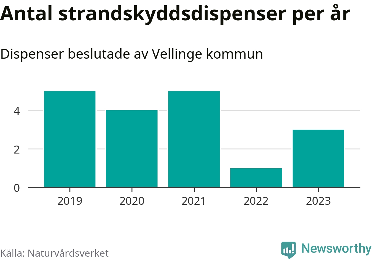Den som vill bygga nära vatten behöver dispens från strandskyddet, lagstiftningen som ska säkra allmänhetens tillgång till stränderna och bevara livsvillkor för djur och växter. I de flesta fall är det kommunerna som godkänner dispenserna, och under de senaste fem åren har Vellinge kommun fattat 18 beslut för totalt 21 åtgärder inom strandskyddat område, enligt den sammanställning Naturvårdsverket varje år gör. Det är färre än i de flesta kommuner i landet. Flest dispenser i Skåne län har godkänts i Kristianstad – 111 stycken.
