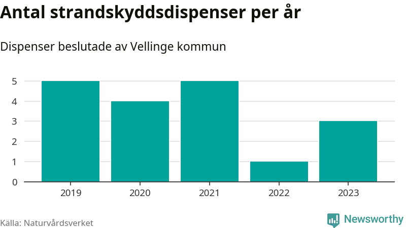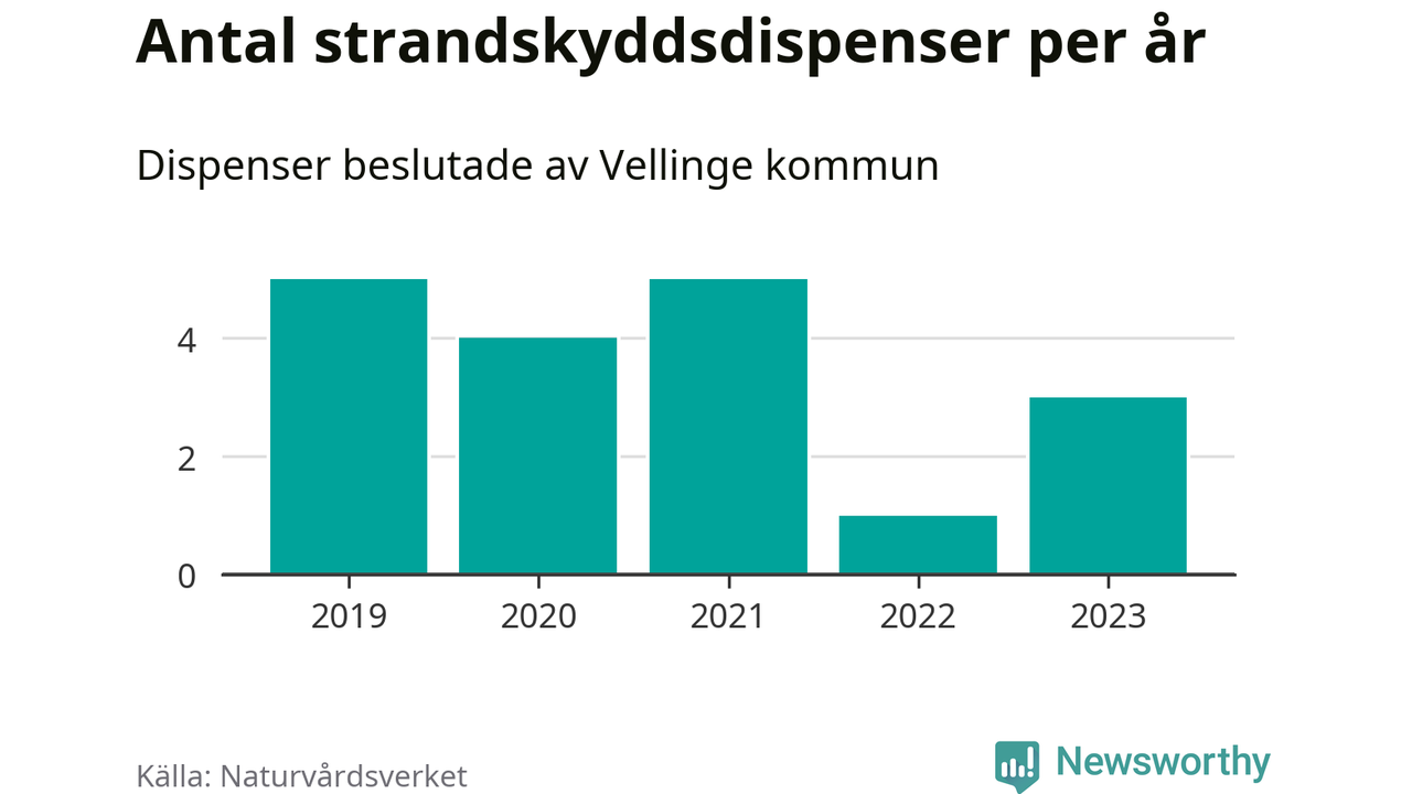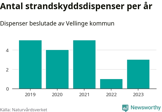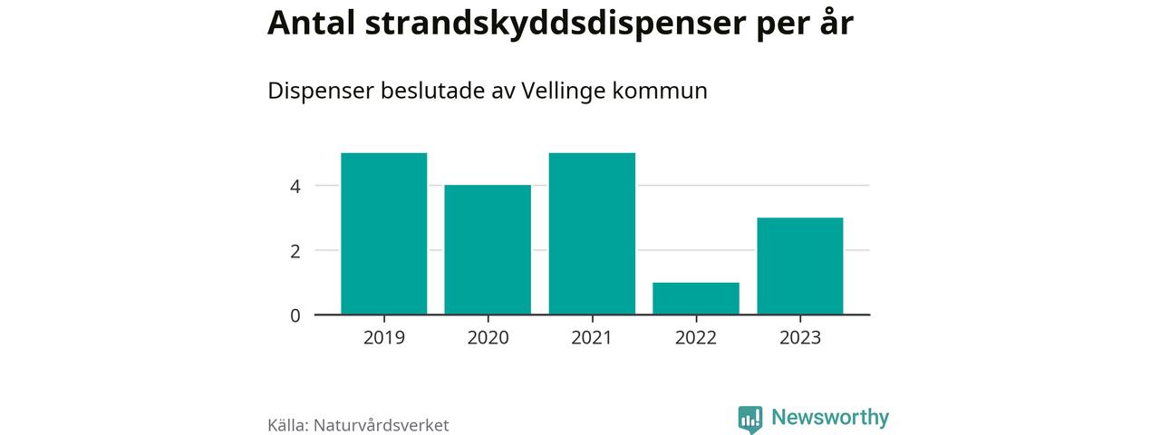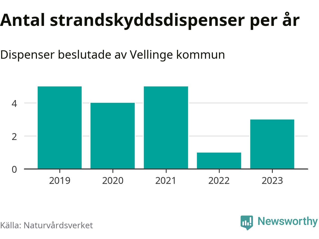 Den som vill bygga nära vatten behöver dispens från strandskyddet, lagstiftningen som ska säkra allmänhetens tillgång till stränderna och bevara livsvillkor för djur och växter. I de flesta fall är det kommunerna som godkänner dispenserna, och under de senaste fem åren har Vellinge kommun fattat 18 beslut för totalt 21 åtgärder inom strandskyddat område, enligt den sammanställning Naturvårdsverket varje år gör. Det är färre än i de flesta kommuner i landet. Flest dispenser i Skåne län har godkänts i Kristianstad – 111 stycken.