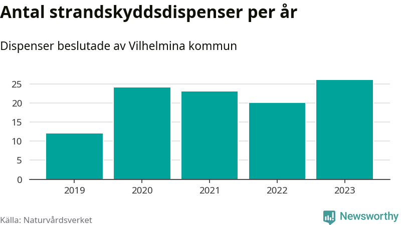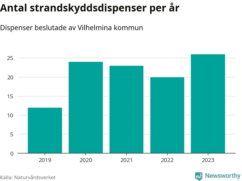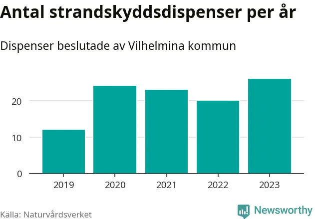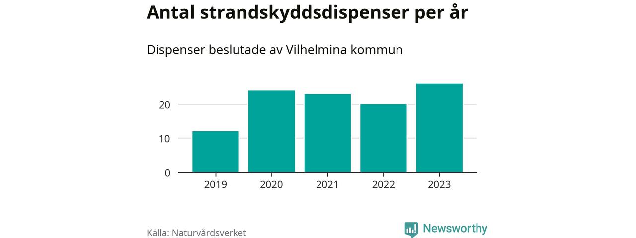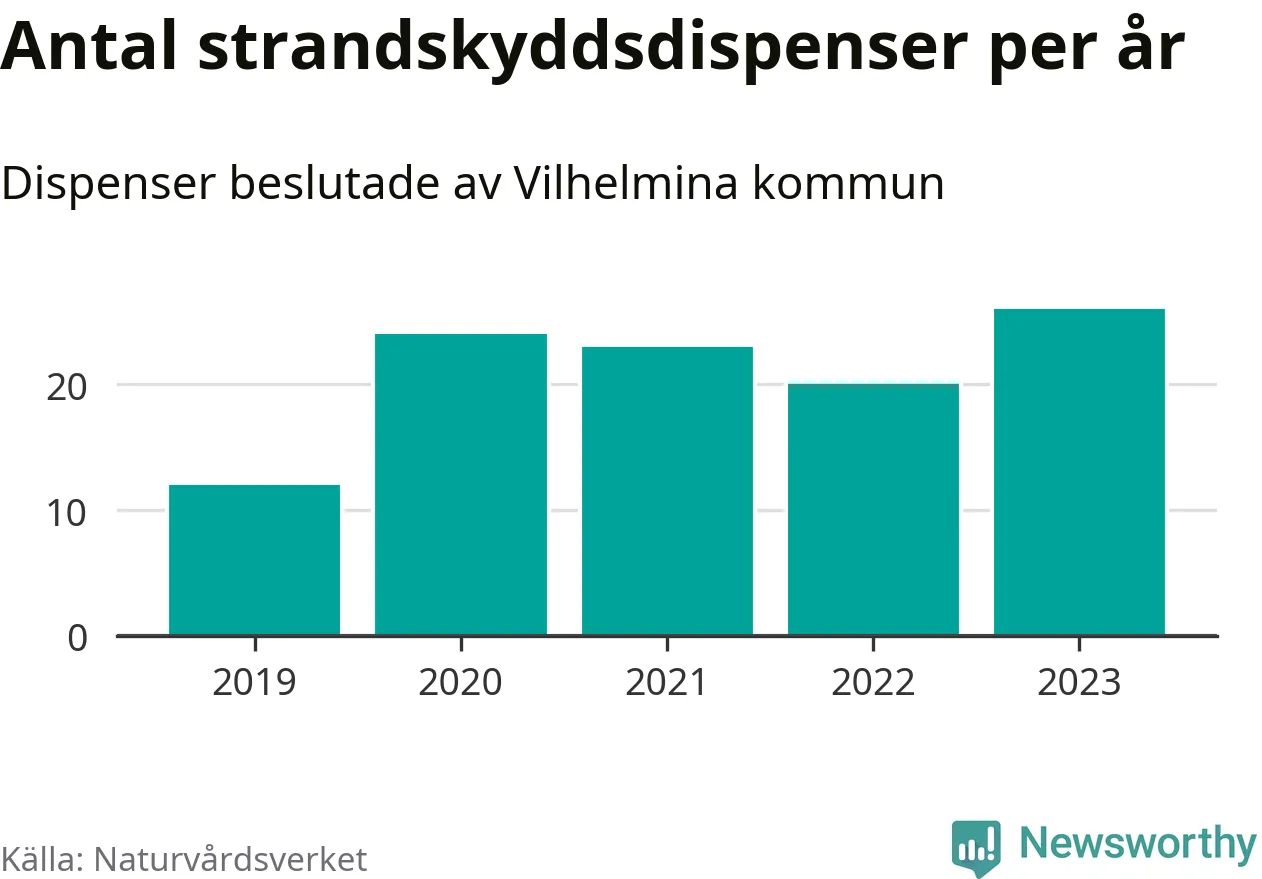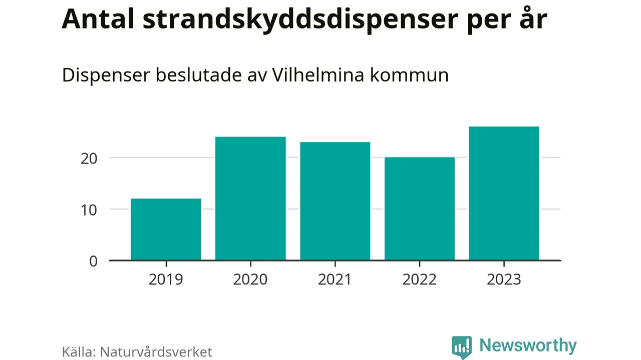 Den som vill bygga nära vatten behöver dispens från strandskyddet, lagstiftningen som ska säkra allmänhetens tillgång till stränderna och bevara livsvillkor för djur och växter. I de flesta fall är det kommunerna som godkänner dispenserna, och under de senaste fem åren har Vilhelmina kommun fattat 105 beslut för totalt 184 åtgärder inom strandskyddat område, enligt den sammanställning Naturvårdsverket varje år gör. Det är tredje flest av kommunerna i Västerbottens län. Flest dispenser i länet har godkänts i Skellefteå – 417 stycken.