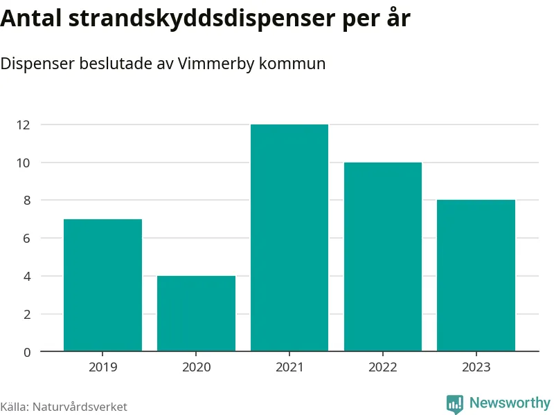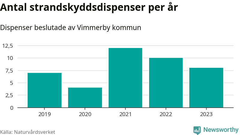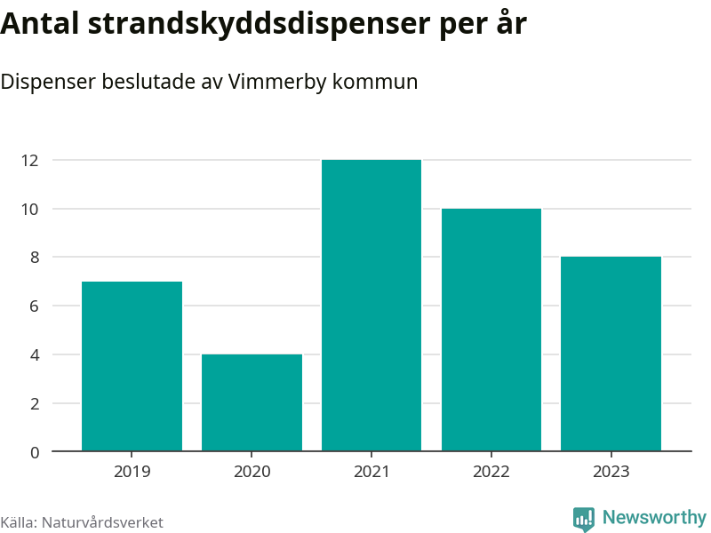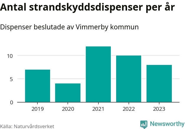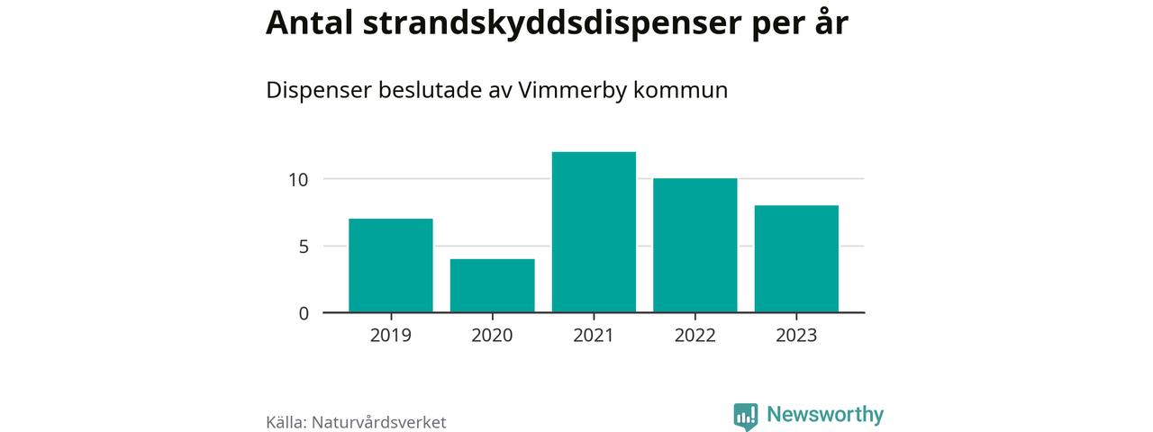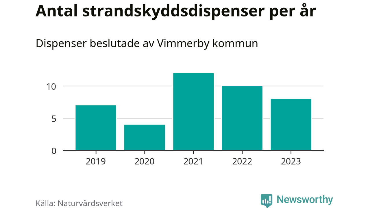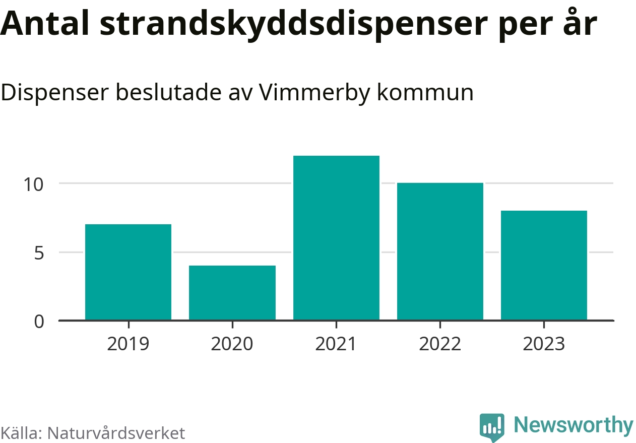 Den som vill bygga nära vatten behöver dispens från strandskyddet, lagstiftningen som ska säkra allmänhetens tillgång till stränderna och bevara livsvillkor för djur och växter. I de flesta fall är det kommunerna som godkänner dispenserna, och under de senaste fem åren har Vimmerby kommun fattat 41 beslut för totalt 48 åtgärder inom strandskyddat område, enligt den sammanställning Naturvårdsverket varje år gör. Det är inte en siffra som sticker ut särskilt jämfört med andra kommuner. Flest dispenser i Kalmar län har godkänts i Västervik – 178 stycken.