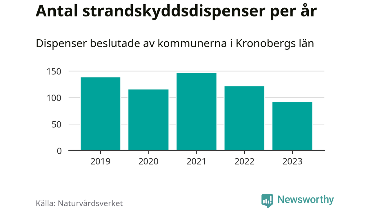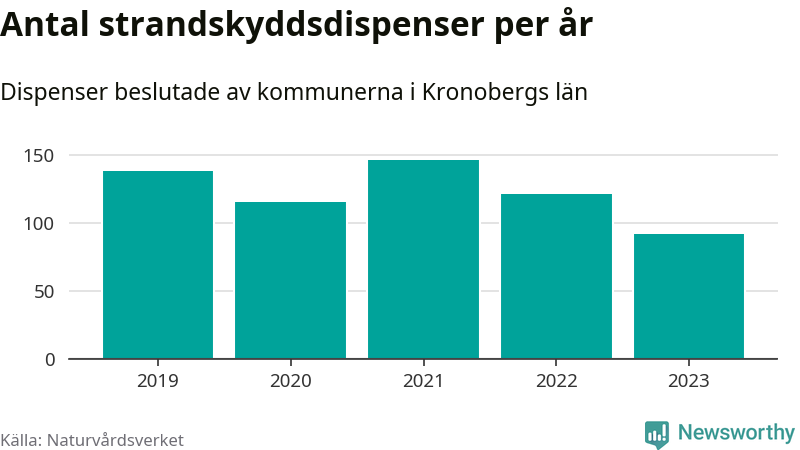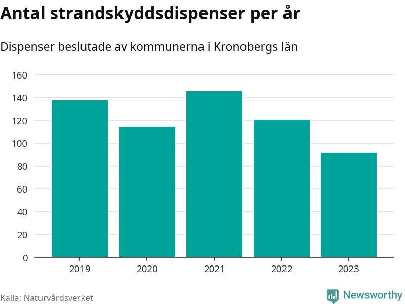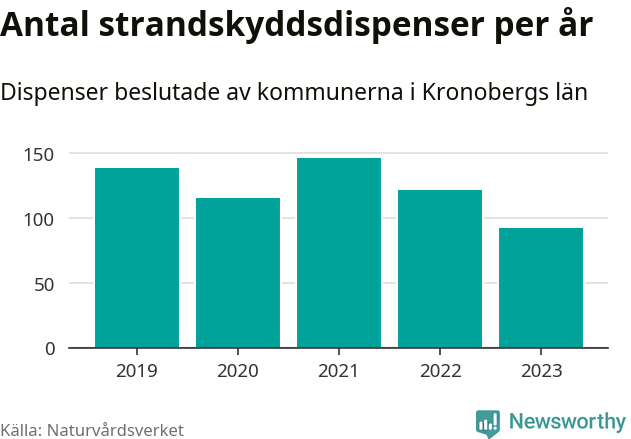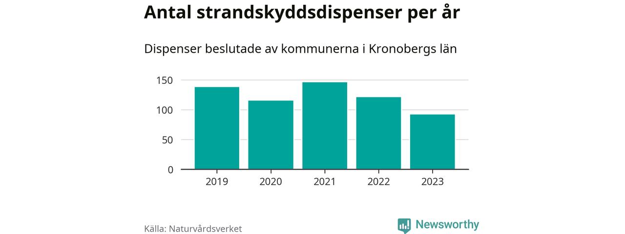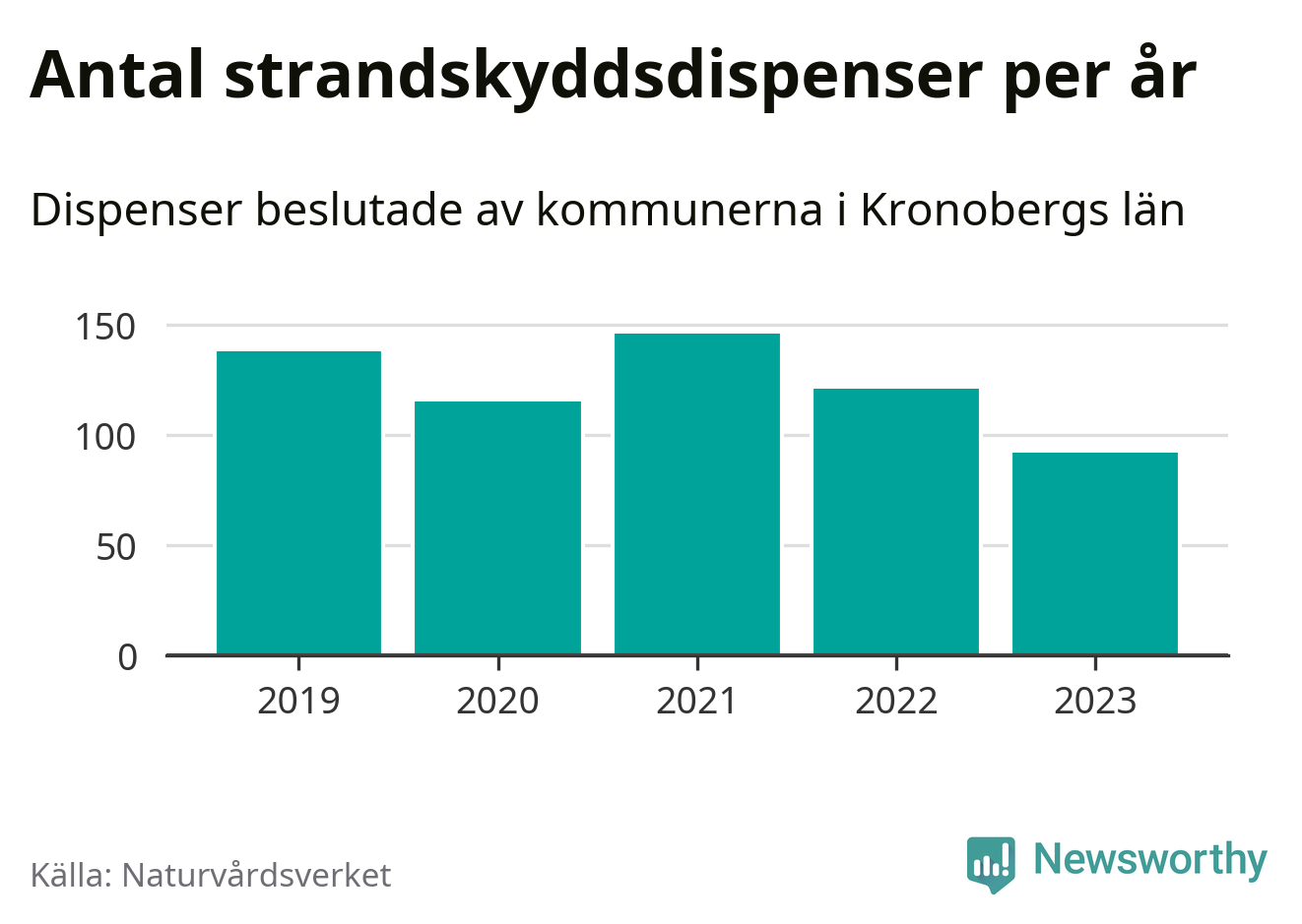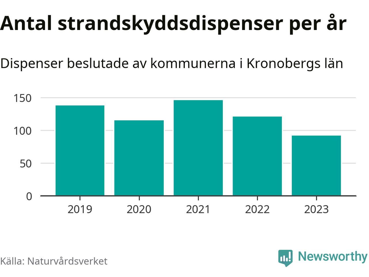 Strandskyddsdispenser per kommun 2019–2023 i Kronobergs län