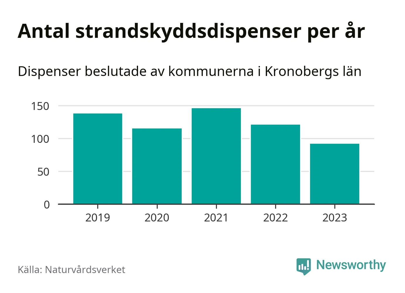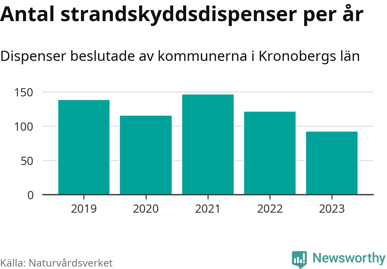 Den som vill bygga nära vatten behöver dispens från strandskyddet, lagstiftningen som ska säkra allmänhetens tillgång till stränderna och bevara livsvillkor för djur och växter. I de flesta fall är det kommunerna som godkänner dispenserna, och under de senaste fem åren har kommunerna i Kronobergs län fattat 612 beslut för totalt 823 åtgärder inom strandskyddat område, enligt den sammanställning Naturvårdsverket varje år gör.