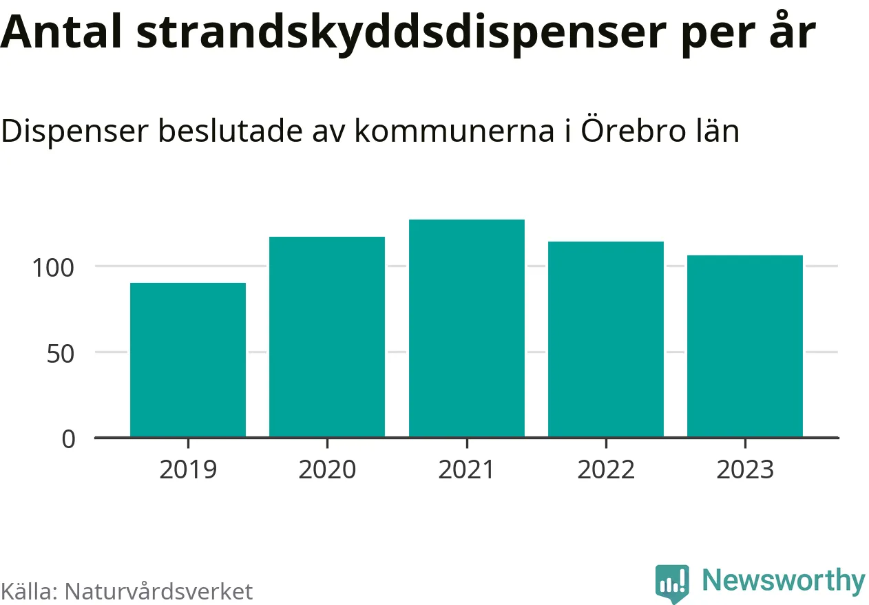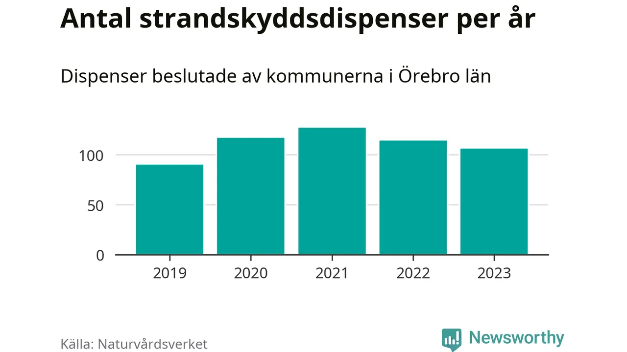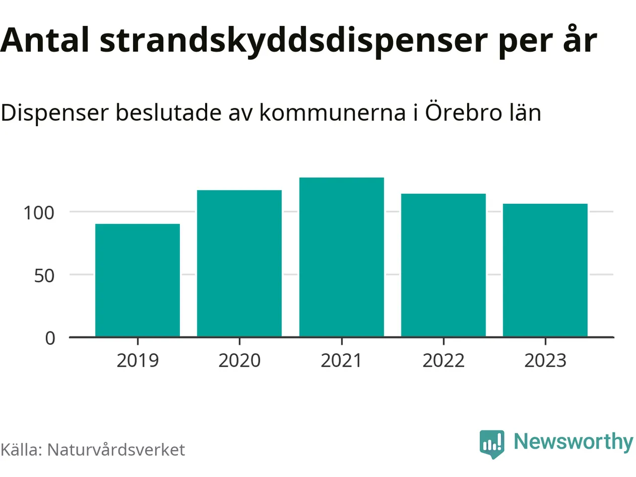 Den som vill bygga nära vatten behöver dispens från strandskyddet, lagstiftningen som ska säkra allmänhetens tillgång till stränderna och bevara livsvillkor för djur och växter. I de flesta fall är det kommunerna som godkänner dispenserna, och under de senaste fem åren har kommunerna i Örebro län fattat 554 beslut för totalt 771 åtgärder inom strandskyddat område, enligt den sammanställning Naturvårdsverket varje år gör.