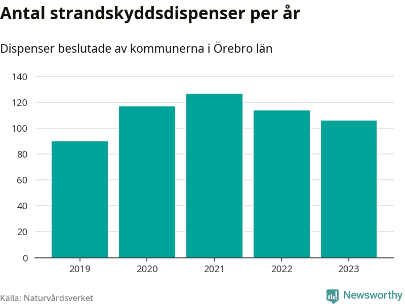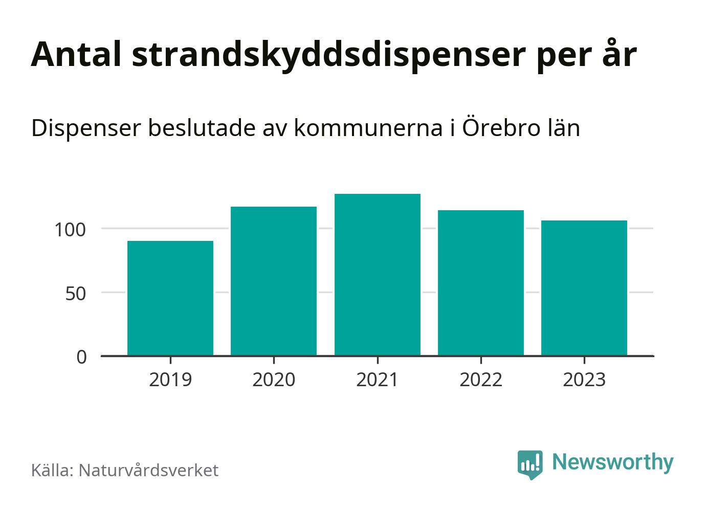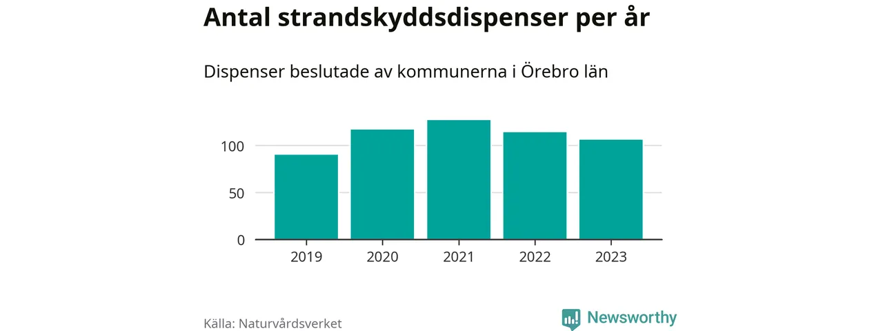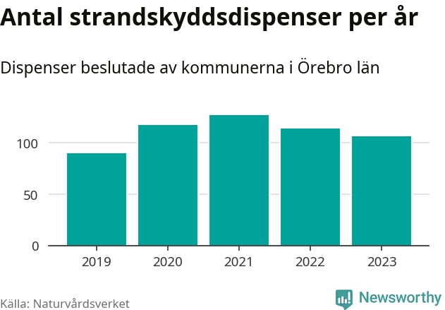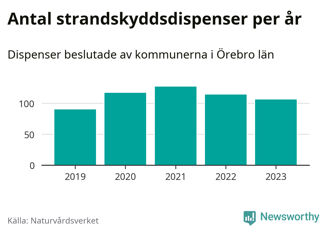 Den som vill bygga nära vatten behöver dispens från strandskyddet, lagstiftningen som ska säkra allmänhetens tillgång till stränderna och bevara livsvillkor för djur och växter. I de flesta fall är det kommunerna som godkänner dispenserna, och under de senaste fem åren har kommunerna i Örebro län fattat 554 beslut för totalt 771 åtgärder inom strandskyddat område, enligt den sammanställning Naturvårdsverket varje år gör.