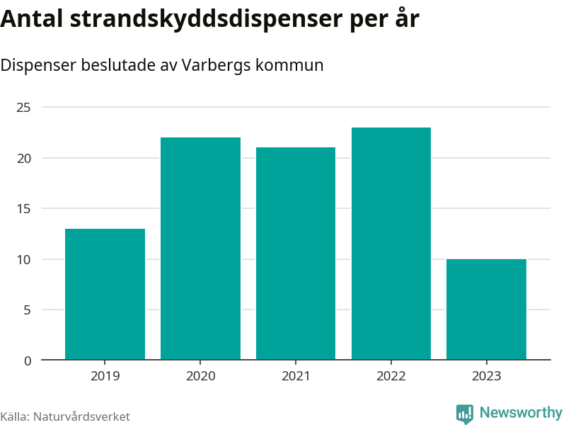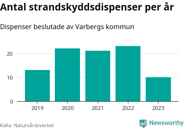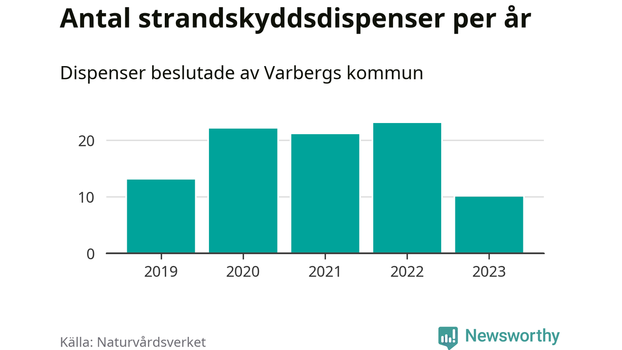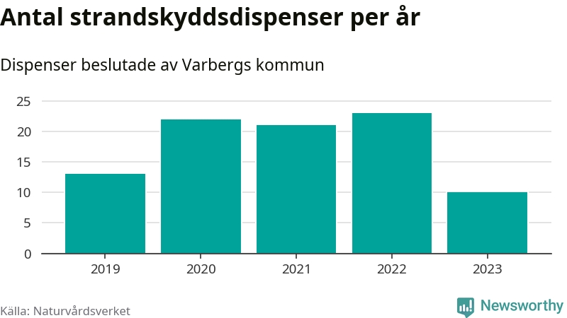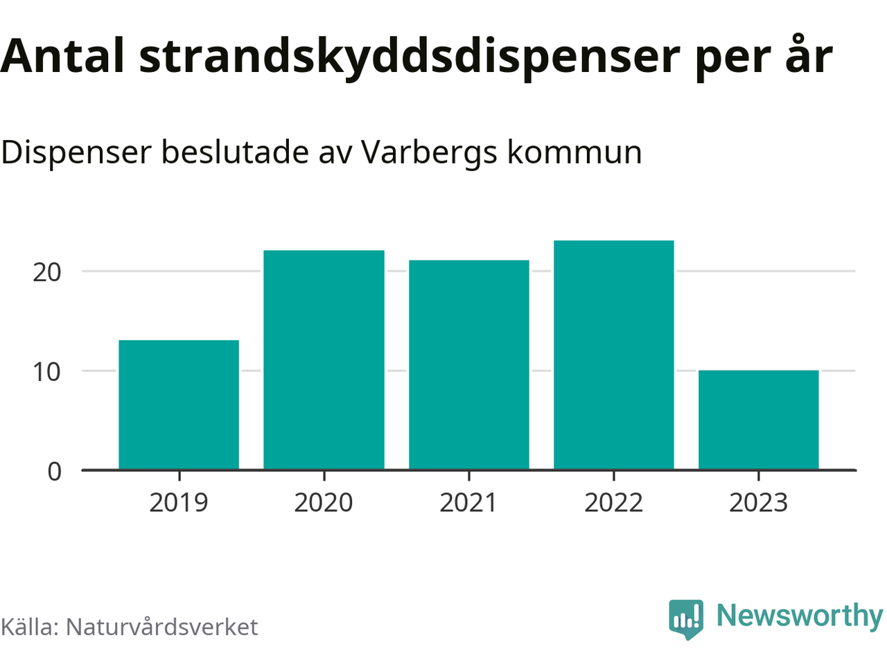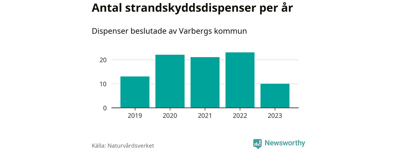 Den som vill bygga nära vatten behöver dispens från strandskyddet, lagstiftningen som ska säkra allmänhetens tillgång till stränderna och bevara livsvillkor för djur och växter. I de flesta fall är det kommunerna som godkänner dispenserna, och under de senaste fem åren har Varbergs kommun fattat 89 beslut för totalt 96 åtgärder inom strandskyddat område, enligt den sammanställning Naturvårdsverket varje år gör. Det är inte en siffra som sticker ut särskilt jämfört med andra kommuner. Flest dispenser i länet har godkänts i Kungsbacka – 211 stycken.