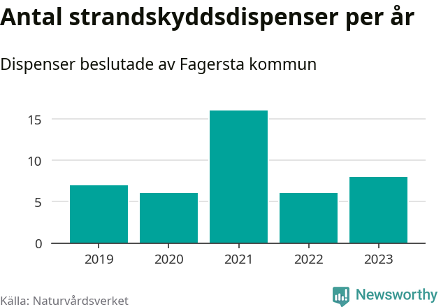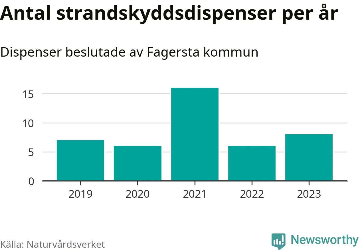 Den som vill bygga nära vatten behöver dispens från strandskyddet, lagstiftningen som ska säkra allmänhetens tillgång till stränderna och bevara livsvillkor för djur och växter. I de flesta fall är det kommunerna som godkänner dispenserna, och under de senaste fem åren har Fagersta kommun fattat 43 beslut för totalt 48 åtgärder inom strandskyddat område, enligt den sammanställning Naturvårdsverket varje år gör. Det är inte en siffra som sticker ut särskilt jämfört med andra kommuner. Flest dispenser i Västmanlands län har godkänts i Sala – 59 stycken.