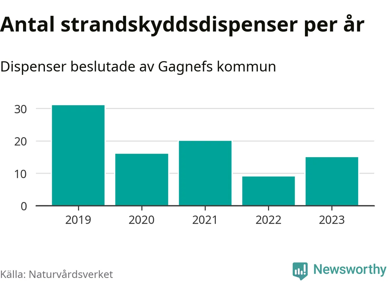 Den som vill bygga nära vatten behöver dispens från strandskyddet, lagstiftningen som ska säkra allmänhetens tillgång till stränderna och bevara livsvillkor för djur och växter. I de flesta fall är det kommunerna som godkänner dispenserna, och under de senaste fem åren har Gagnefs kommun fattat 91 beslut för totalt 123 åtgärder inom strandskyddat område, enligt den sammanställning Naturvårdsverket varje år gör. Det är inte en siffra som sticker ut särskilt jämfört med andra kommuner. Flest dispenser i Dalarnas län har godkänts i Falun – 323 stycken.