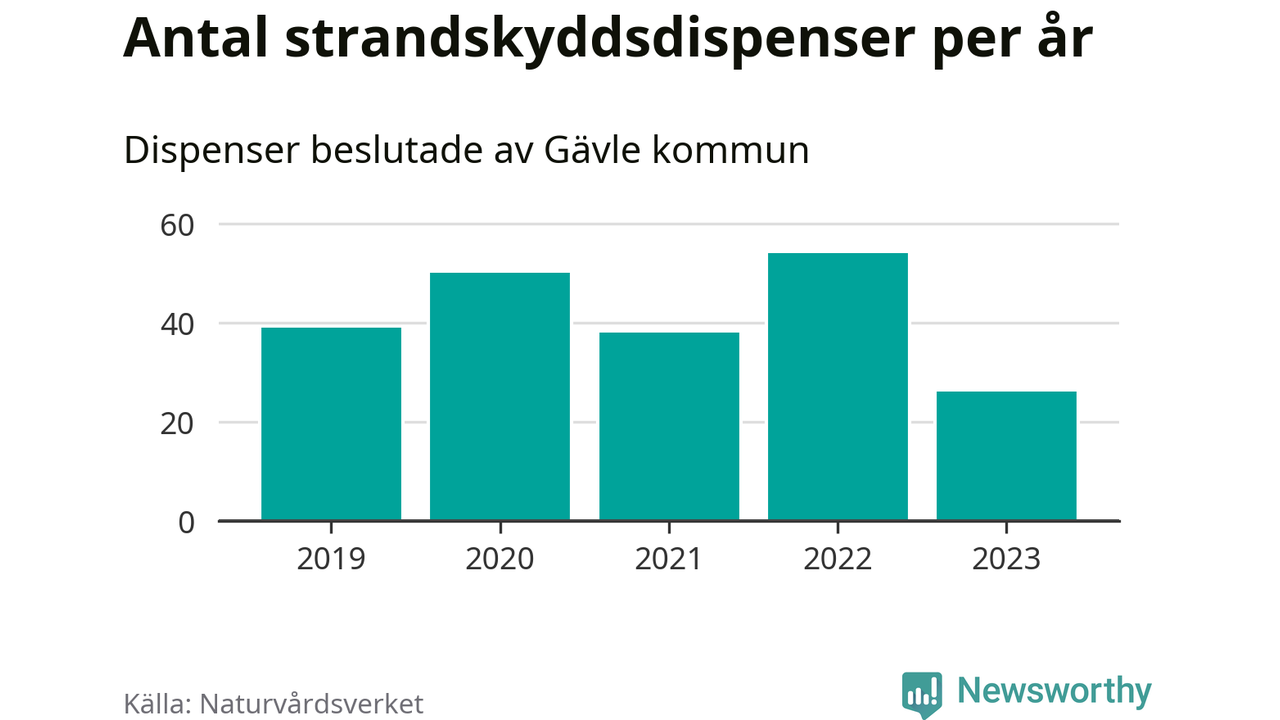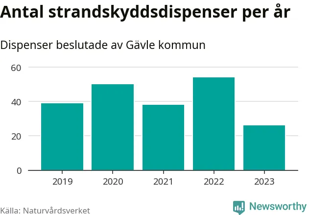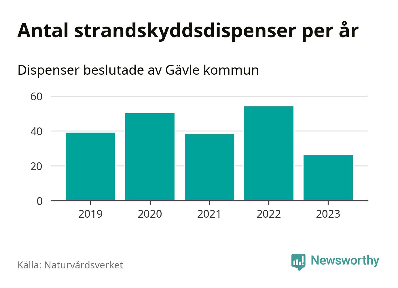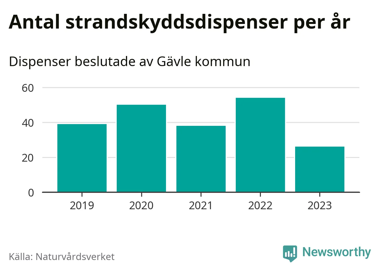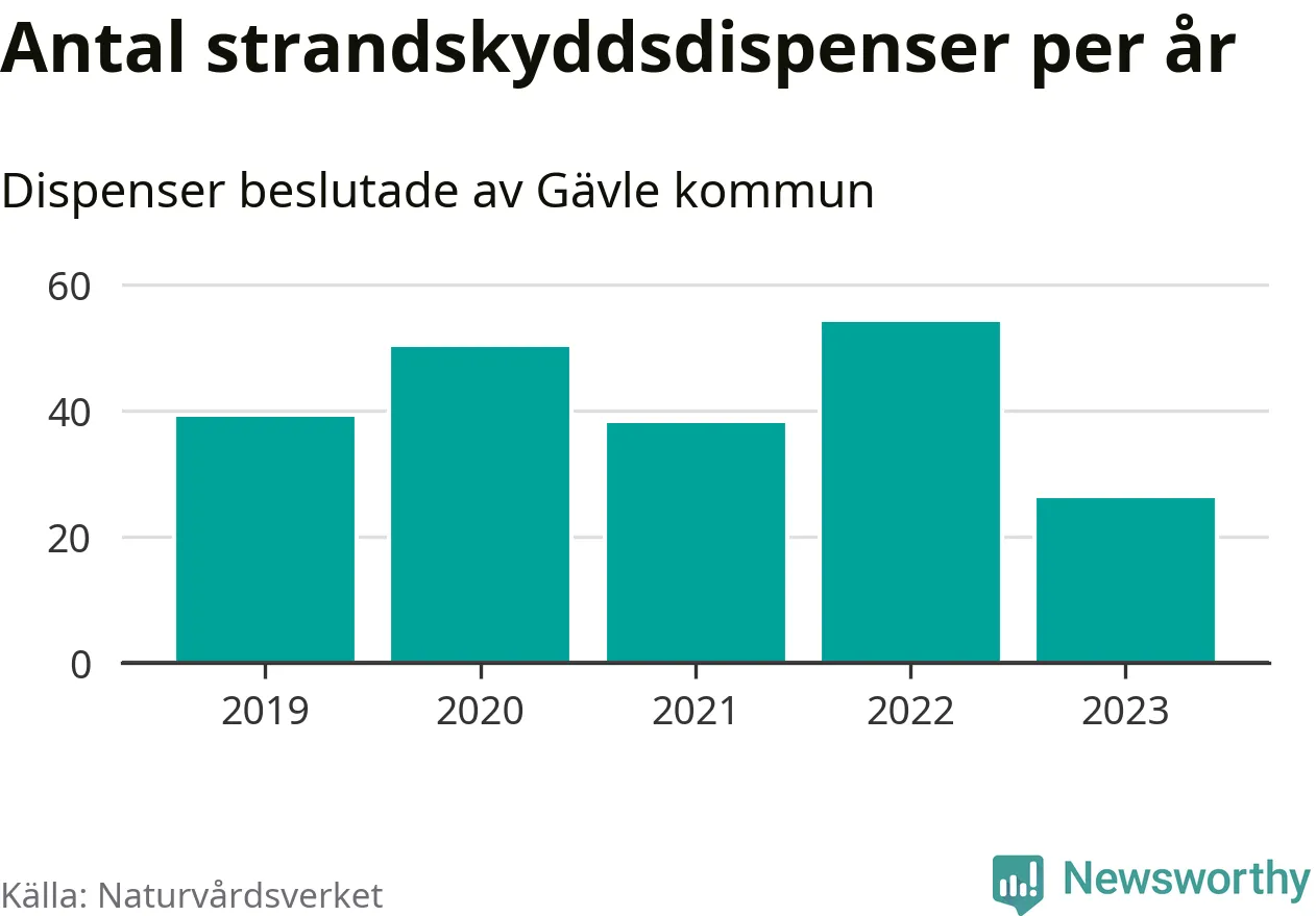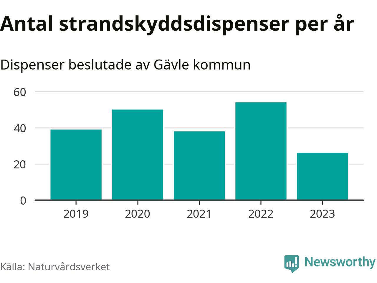 Den som vill bygga nära vatten behöver dispens från strandskyddet, lagstiftningen som ska säkra allmänhetens tillgång till stränderna och bevara livsvillkor för djur och växter. I de flesta fall är det kommunerna som godkänner dispenserna, och under de senaste fem åren har Gävle kommun fattat 207 beslut för totalt 331 åtgärder inom strandskyddat område, enligt den sammanställning Naturvårdsverket varje år gör. Det gör kommunen till en av de mest generösa i landet. Flest dispenser i länet har godkänts i Hudiksvall – 526 stycken.