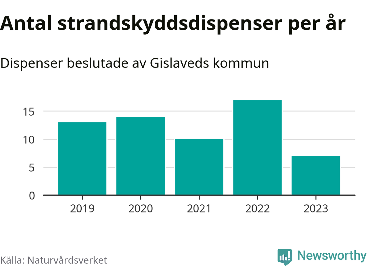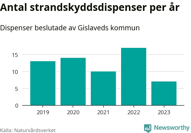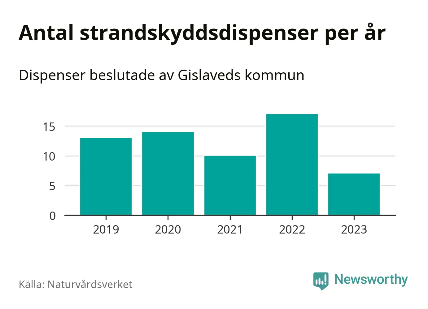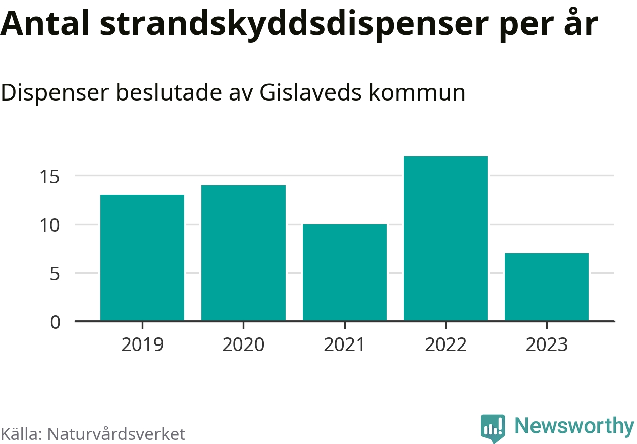 Den som vill bygga nära vatten behöver dispens från strandskyddet, lagstiftningen som ska säkra allmänhetens tillgång till stränderna och bevara livsvillkor för djur och växter. I de flesta fall är det kommunerna som godkänner dispenserna, och under de senaste fem åren har Gislaveds kommun fattat 61 beslut för totalt 64 åtgärder inom strandskyddat område, enligt den sammanställning Naturvårdsverket varje år gör. Det är inte en siffra som sticker ut särskilt jämfört med andra kommuner. Flest dispenser i Jönköpings län har godkänts i Jönköping – 157 stycken.