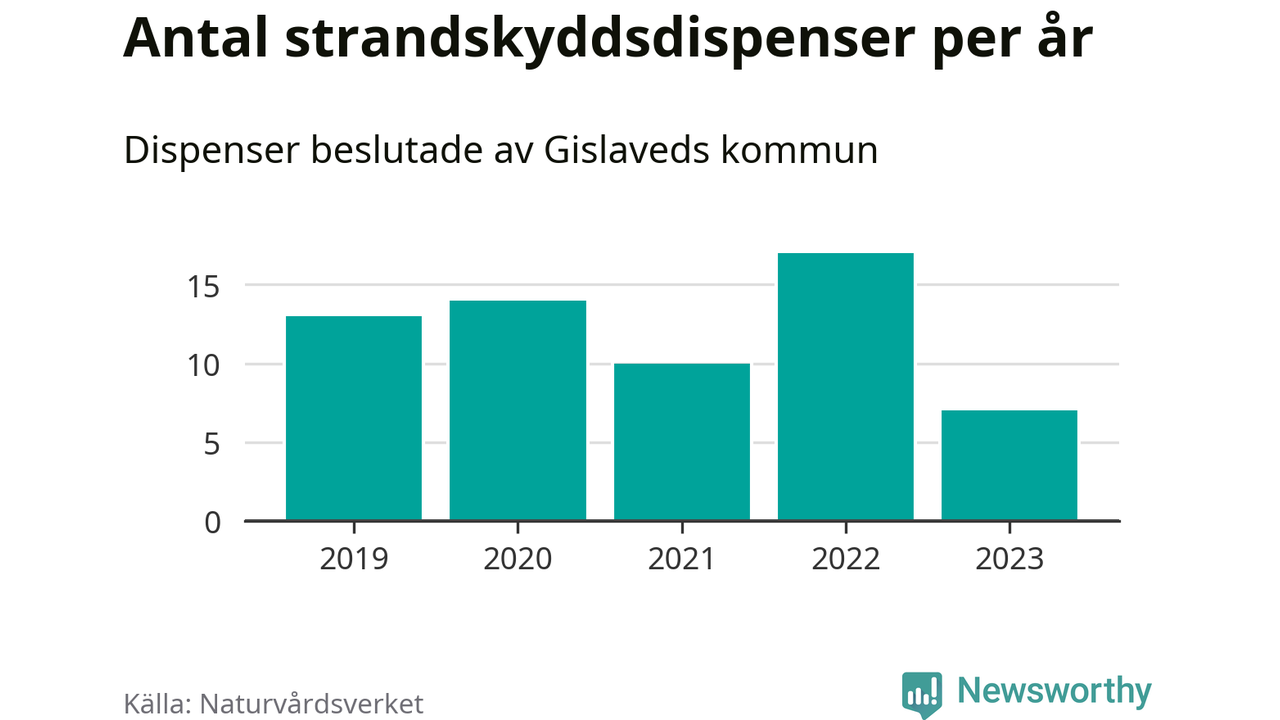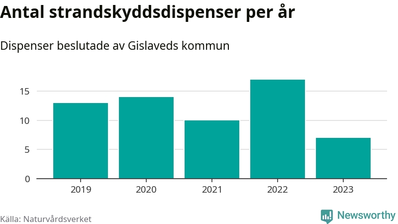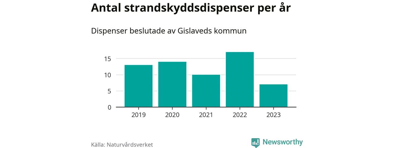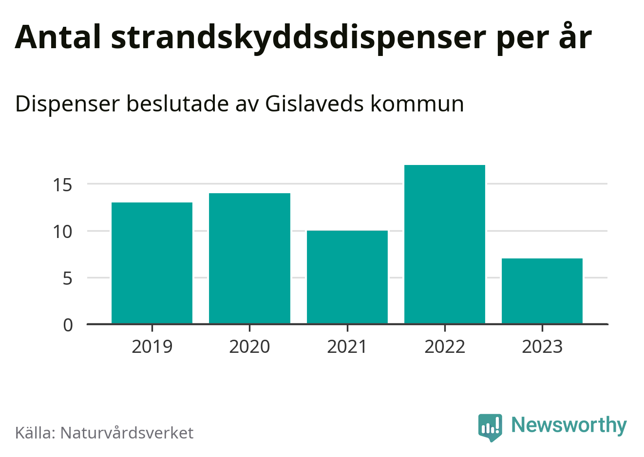 Den som vill bygga nära vatten behöver dispens från strandskyddet, lagstiftningen som ska säkra allmänhetens tillgång till stränderna och bevara livsvillkor för djur och växter. I de flesta fall är det kommunerna som godkänner dispenserna, och under de senaste fem åren har Gislaveds kommun fattat 61 beslut för totalt 64 åtgärder inom strandskyddat område, enligt den sammanställning Naturvårdsverket varje år gör. Det är inte en siffra som sticker ut särskilt jämfört med andra kommuner. Flest dispenser i Jönköpings län har godkänts i Jönköping – 157 stycken.