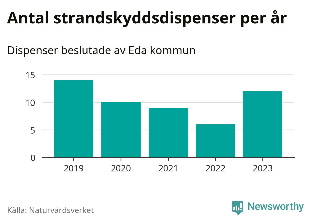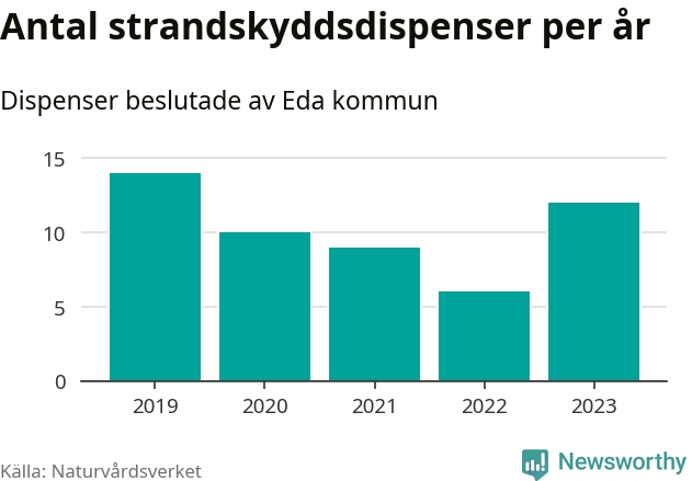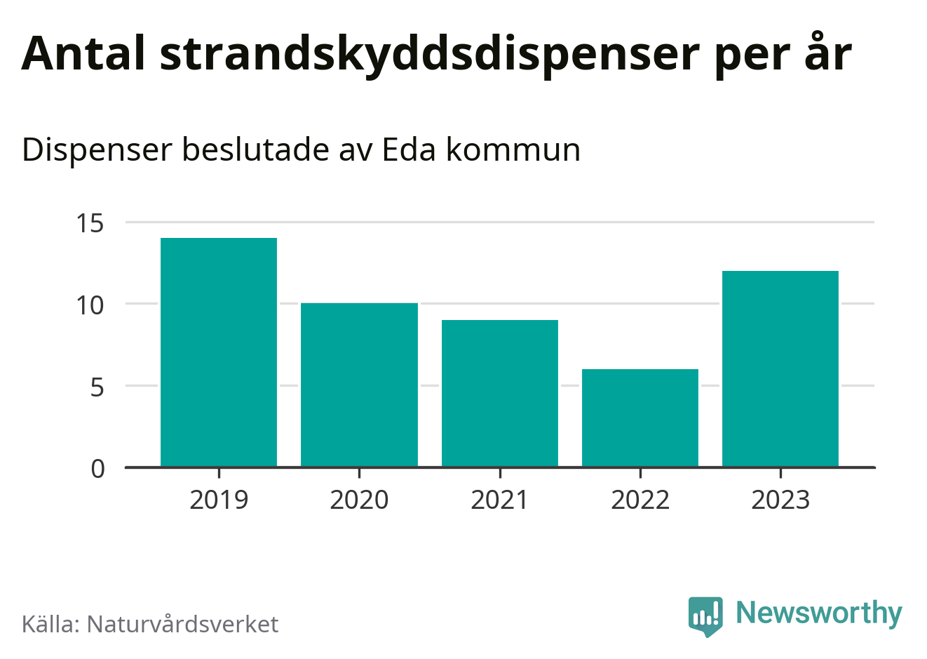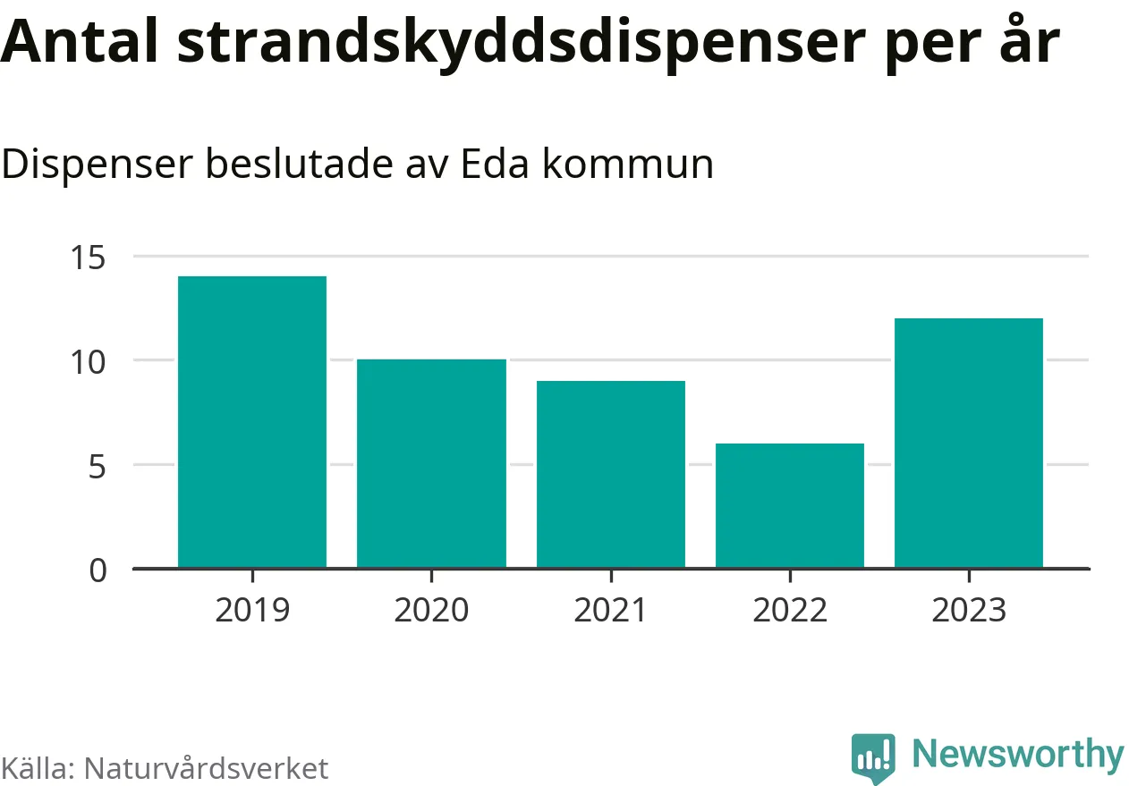 Den som vill bygga nära vatten behöver dispens från strandskyddet, lagstiftningen som ska säkra allmänhetens tillgång till stränderna och bevara livsvillkor för djur och växter. I de flesta fall är det kommunerna som godkänner dispenserna, och under de senaste fem åren har Eda kommun fattat 51 beslut för totalt 63 åtgärder inom strandskyddat område, enligt den sammanställning Naturvårdsverket varje år gör. Det är inte en siffra som sticker ut särskilt jämfört med andra kommuner. Flest dispenser i Värmlands län har godkänts i Arvika – 137 stycken.