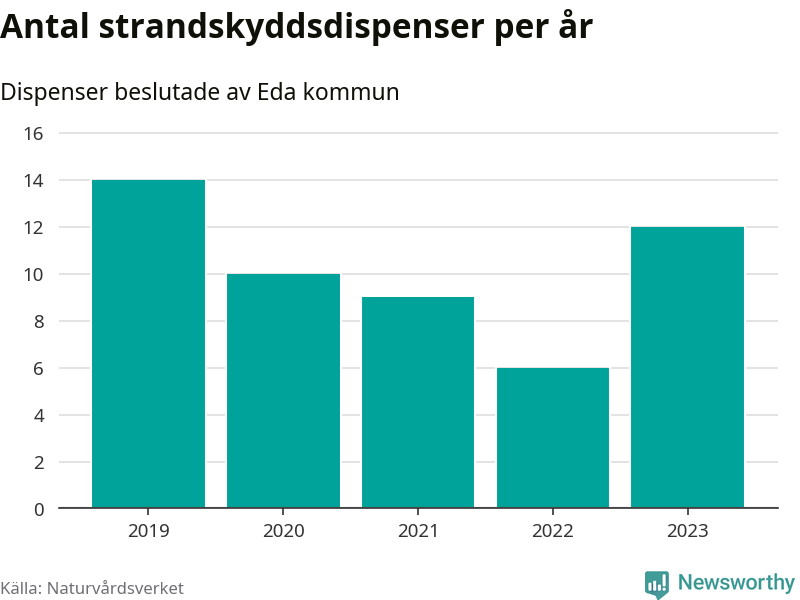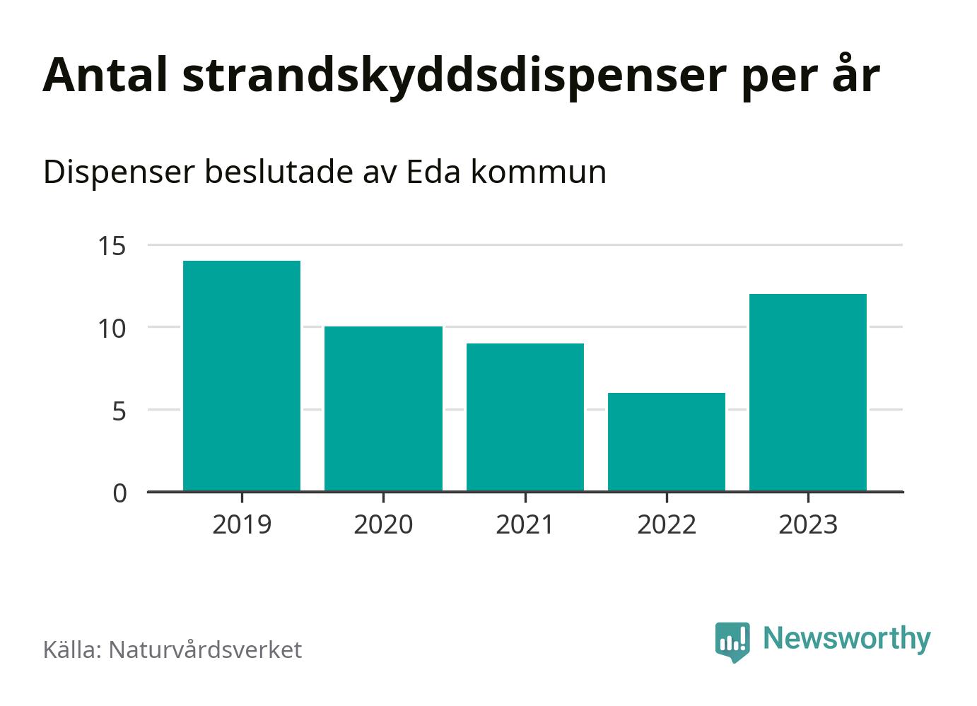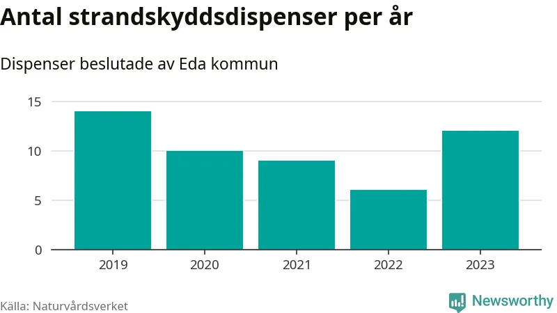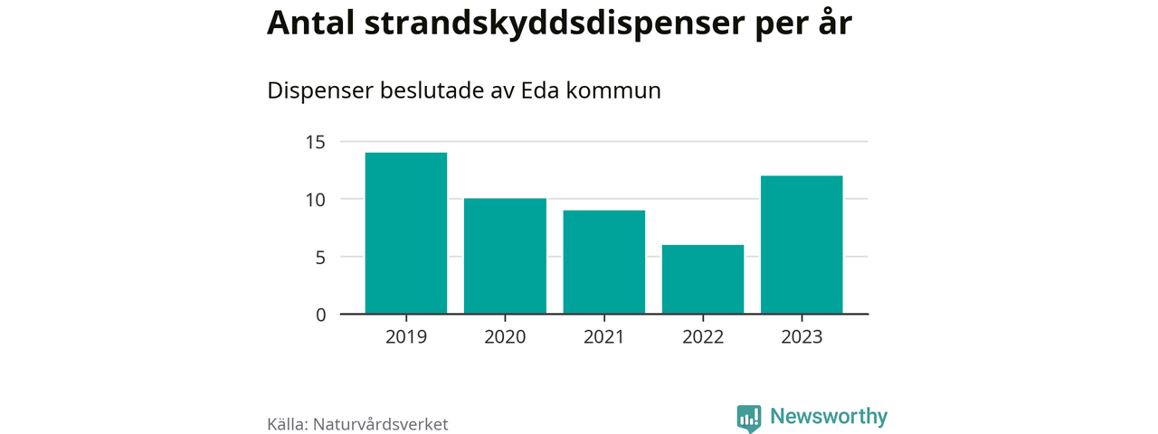 Den som vill bygga nära vatten behöver dispens från strandskyddet, lagstiftningen som ska säkra allmänhetens tillgång till stränderna och bevara livsvillkor för djur och växter. I de flesta fall är det kommunerna som godkänner dispenserna, och under de senaste fem åren har Eda kommun fattat 51 beslut för totalt 63 åtgärder inom strandskyddat område, enligt den sammanställning Naturvårdsverket varje år gör. Det är inte en siffra som sticker ut särskilt jämfört med andra kommuner. Flest dispenser i Värmlands län har godkänts i Arvika – 137 stycken.