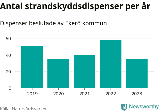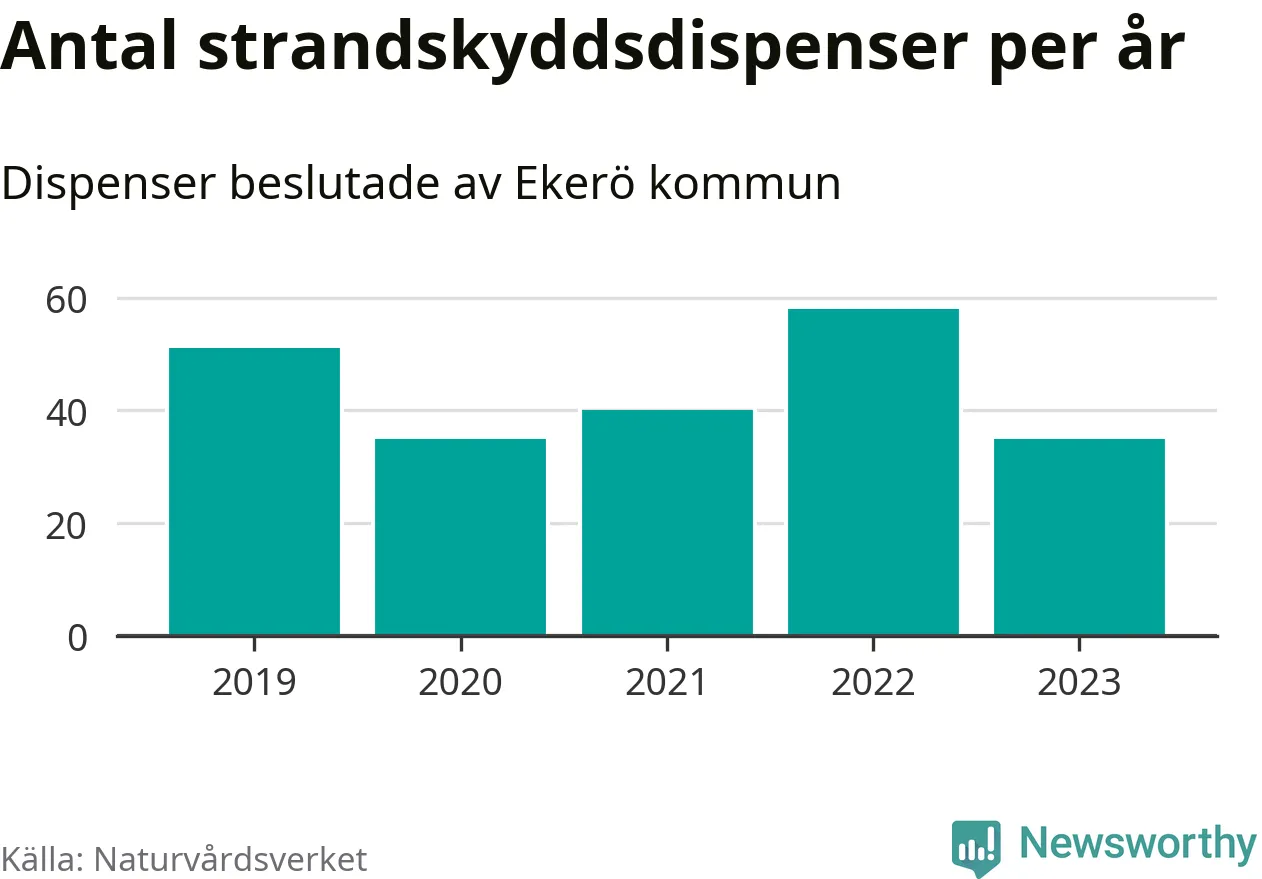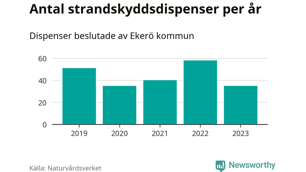 Den som vill bygga nära vatten behöver dispens från strandskyddet, lagstiftningen som ska säkra allmänhetens tillgång till stränderna och bevara livsvillkor för djur och växter. I de flesta fall är det kommunerna som godkänner dispenserna, och under de senaste fem åren har Ekerö kommun fattat 219 beslut för totalt 272 åtgärder inom strandskyddat område, enligt den sammanställning Naturvårdsverket varje år gör. Det gör kommunen till en av de mest generösa i landet. Flest dispenser i Stockholms län har godkänts i Värmdö – 1 571 stycken.