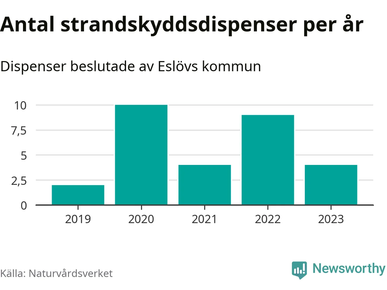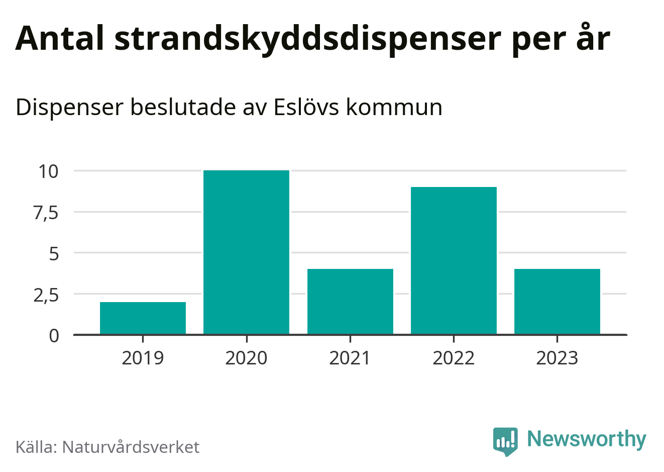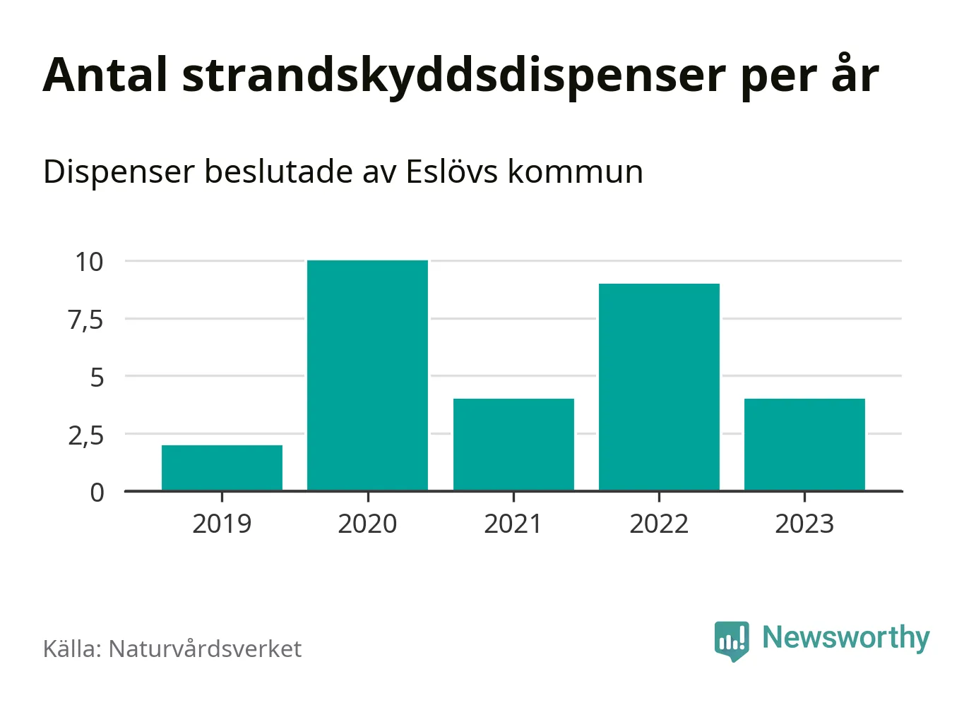 Den som vill bygga nära vatten behöver dispens från strandskyddet, lagstiftningen som ska säkra allmänhetens tillgång till stränderna och bevara livsvillkor för djur och växter. I de flesta fall är det kommunerna som godkänner dispenserna, och under de senaste fem åren har Eslövs kommun fattat 29 beslut för totalt 45 åtgärder inom strandskyddat område, enligt den sammanställning Naturvårdsverket varje år gör. Det är färre än i de flesta kommuner i landet. Flest dispenser i Skåne län har godkänts i Kristianstad – 111 stycken.