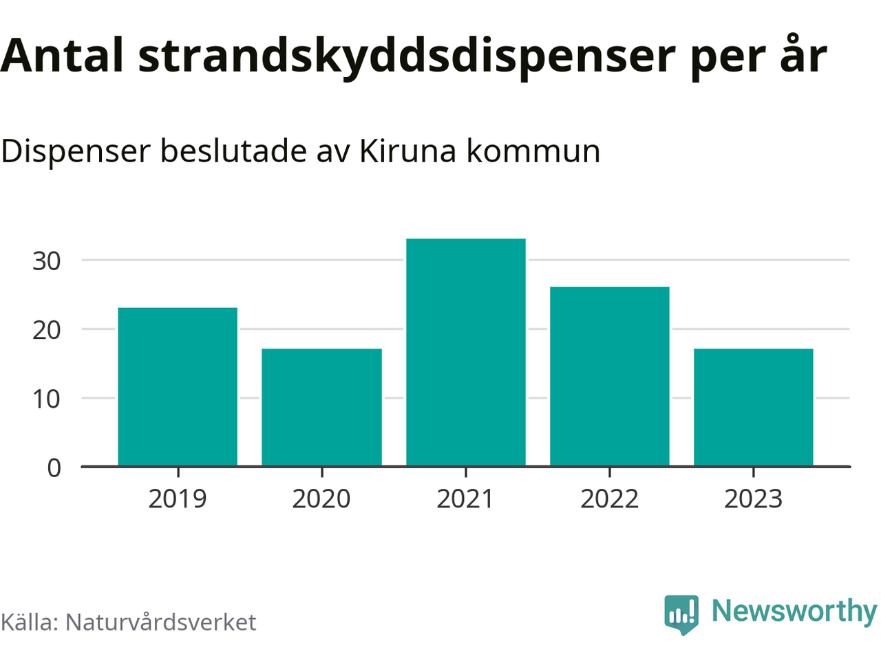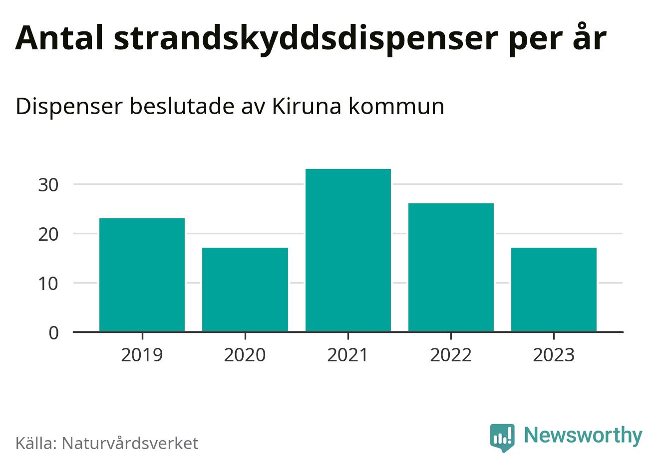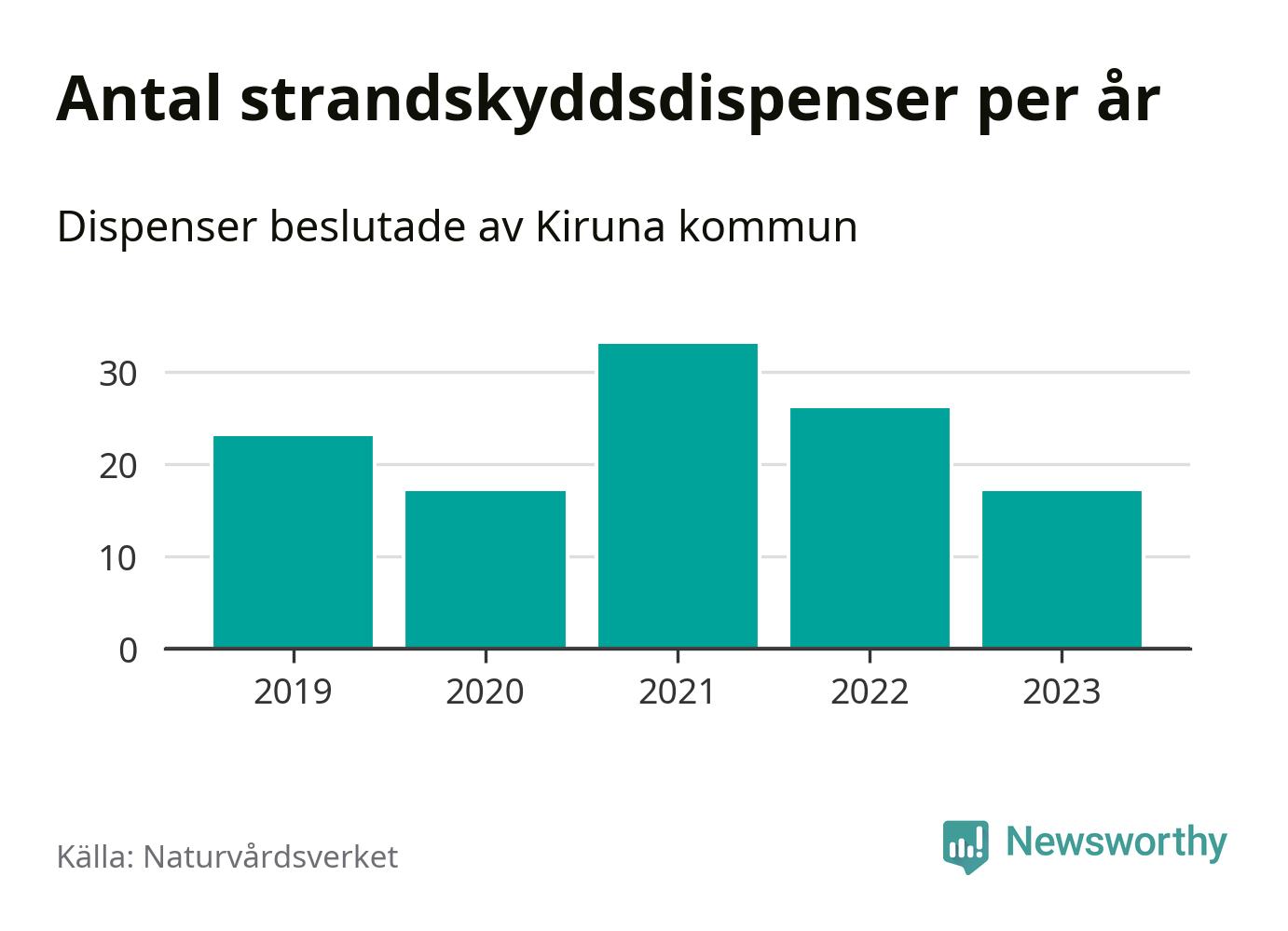 Den som vill bygga nära vatten behöver dispens från strandskyddet, lagstiftningen som ska säkra allmänhetens tillgång till stränderna och bevara livsvillkor för djur och växter. I de flesta fall är det kommunerna som godkänner dispenserna, och under de senaste fem åren har Kiruna kommun fattat 116 beslut för totalt 178 åtgärder inom strandskyddat område, enligt den sammanställning Naturvårdsverket varje år gör. Det är fler än i de flesta kommuner i landet. Flest dispenser i Norrbottens län har godkänts i Luleå – 199 stycken.