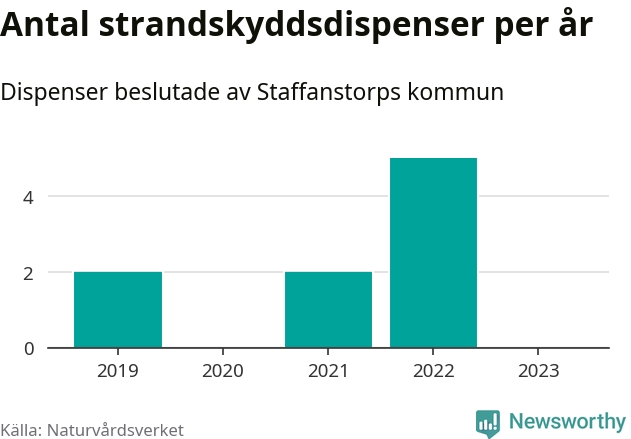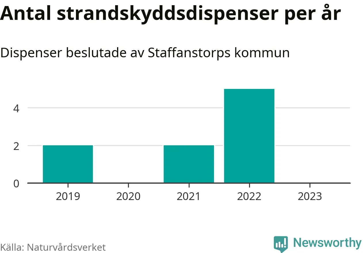 Den som vill bygga nära vatten behöver dispens från strandskyddet, lagstiftningen som ska säkra allmänhetens tillgång till stränderna och bevara livsvillkor för djur och växter. I de flesta fall är det kommunerna som godkänner dispenserna, och under de senaste fem åren har Staffanstorps kommun fattat nio beslut för totalt 13 åtgärder inom strandskyddat område, enligt den sammanställning Naturvårdsverket varje år gör. Det är färre än i de flesta kommuner i landet. Flest dispenser i Skåne län har godkänts i Kristianstad – 111 stycken.