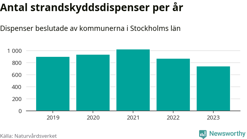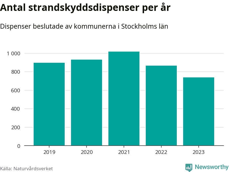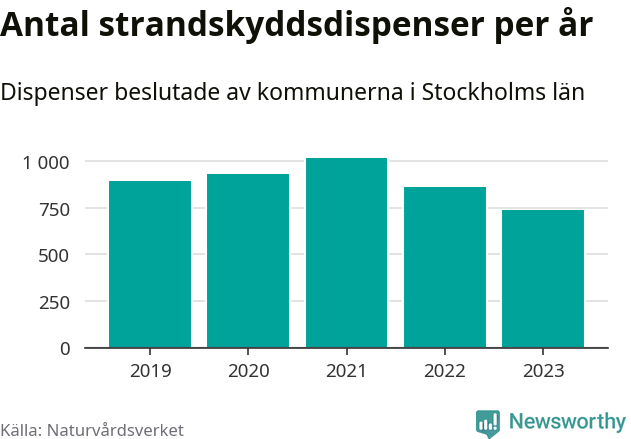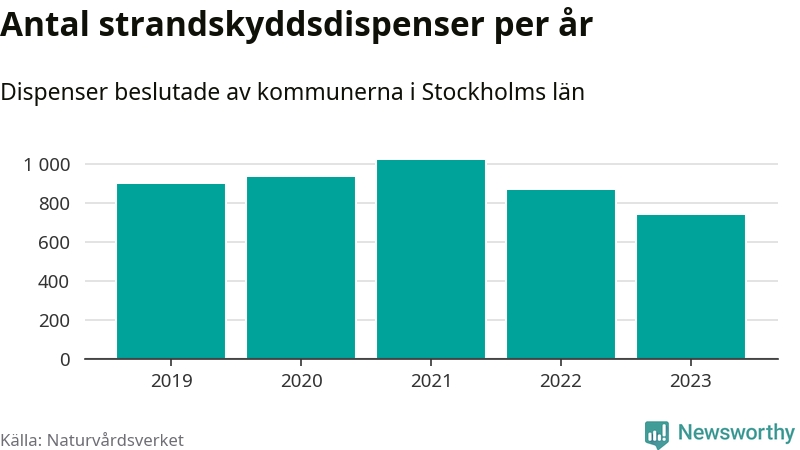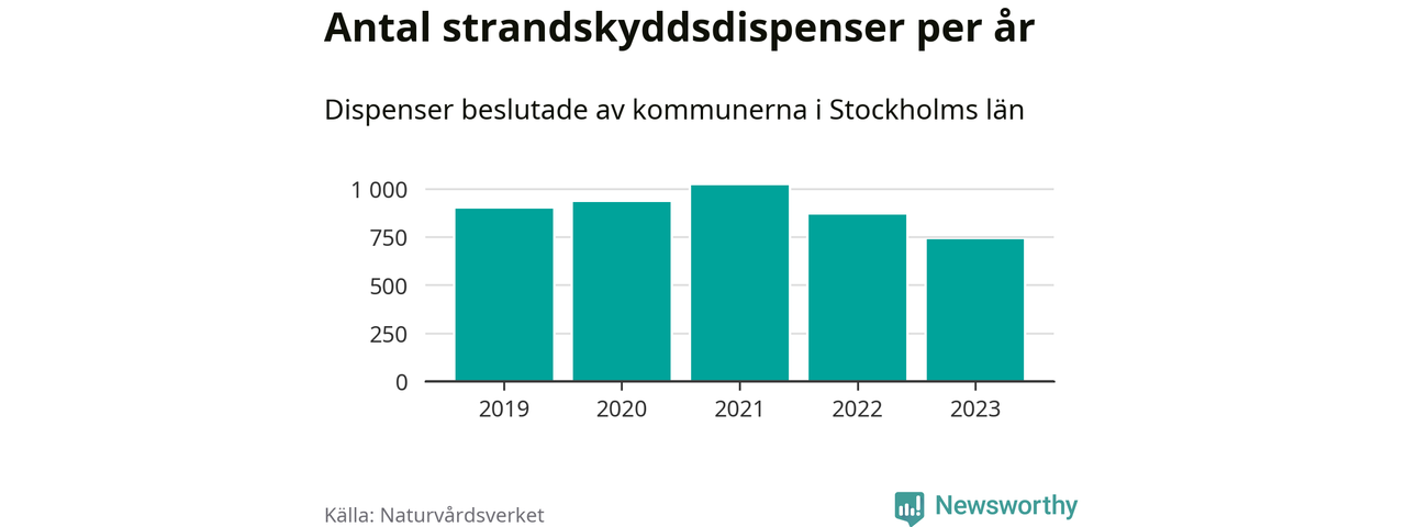 Strandskyddsdispenser per kommun 2019–2023 i Stockholms län
