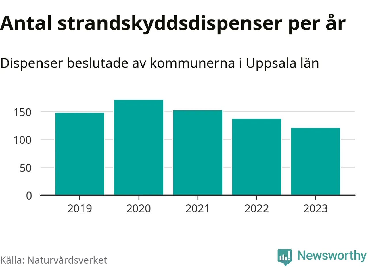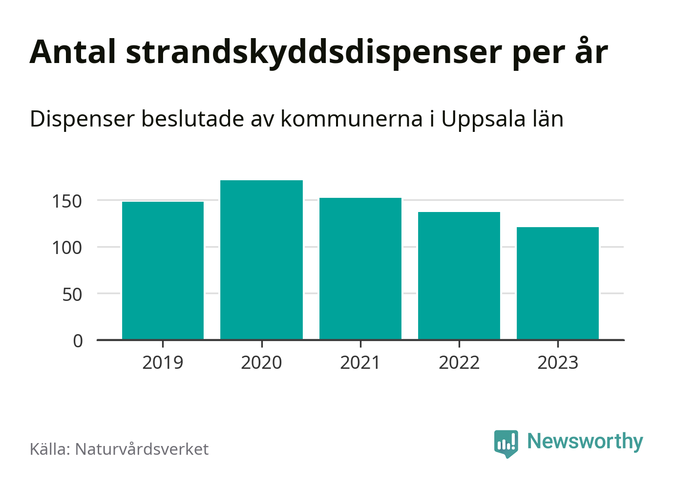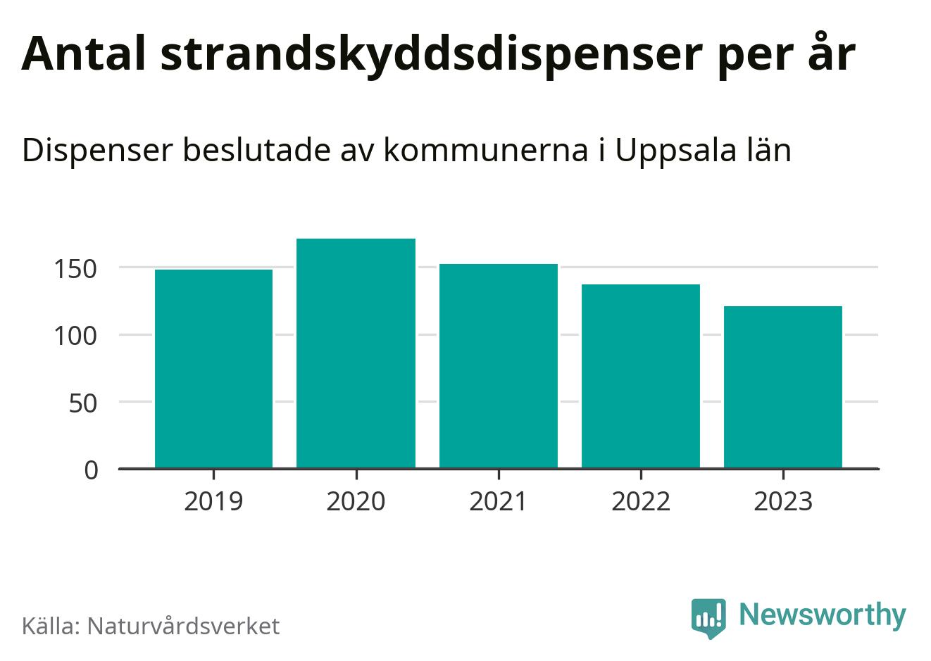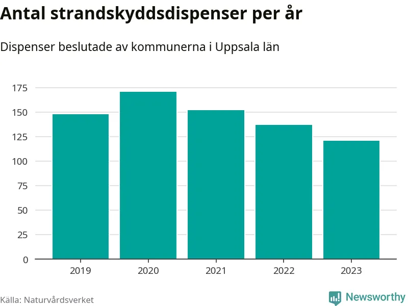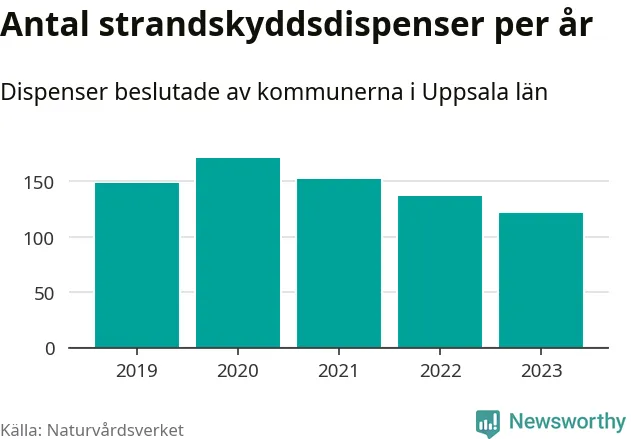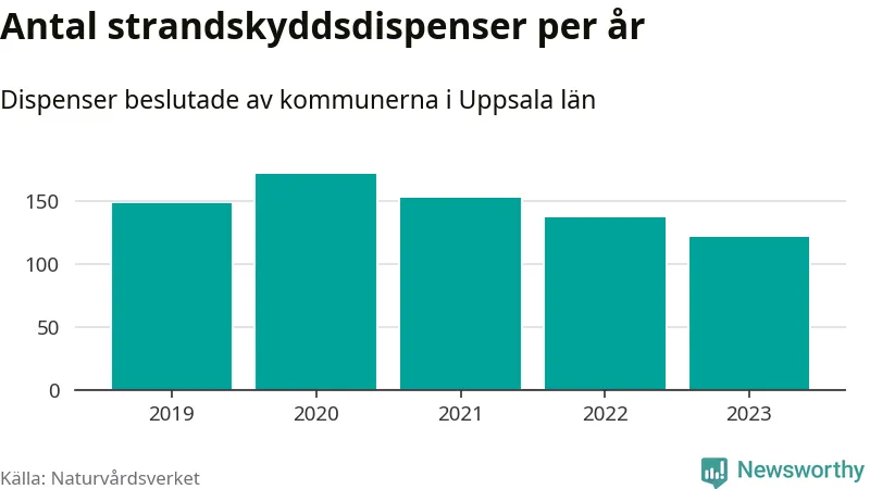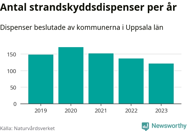 Strandskyddsdispenser per kommun 2019–2023 i Uppsala län