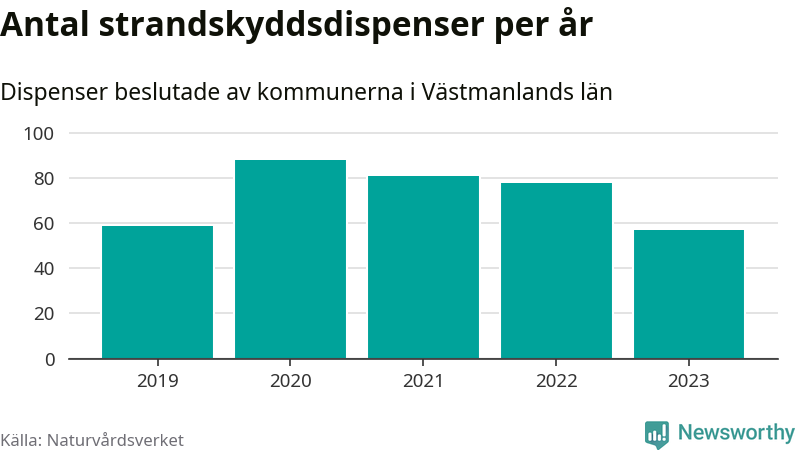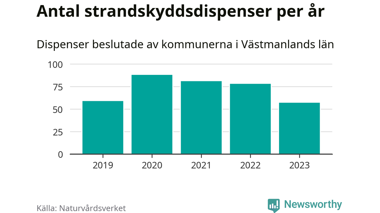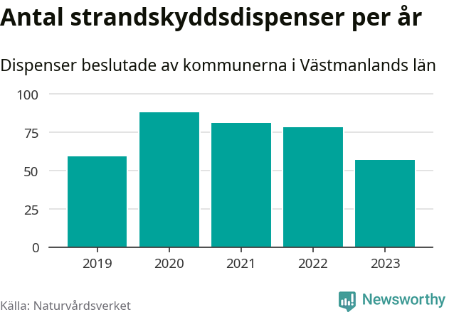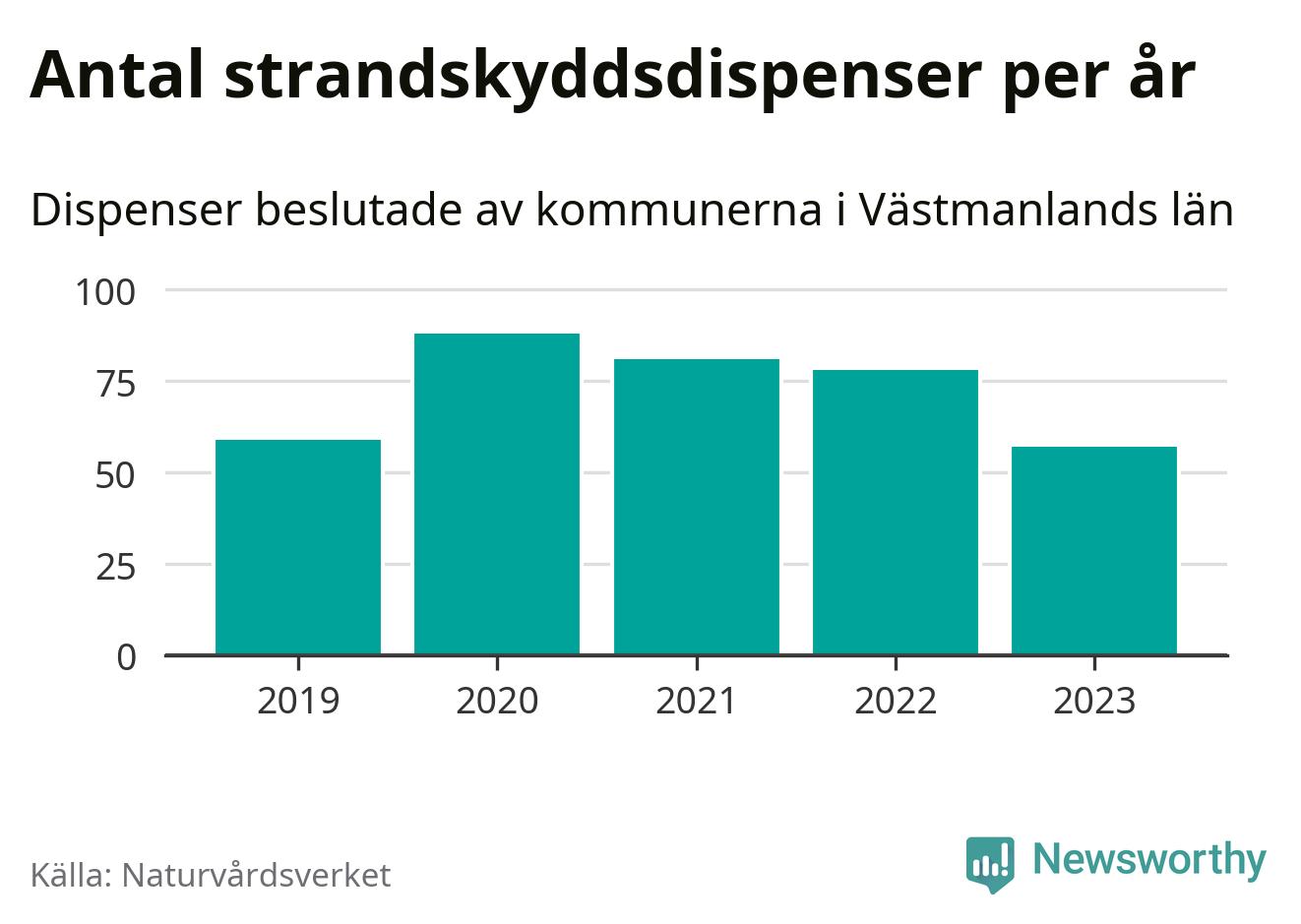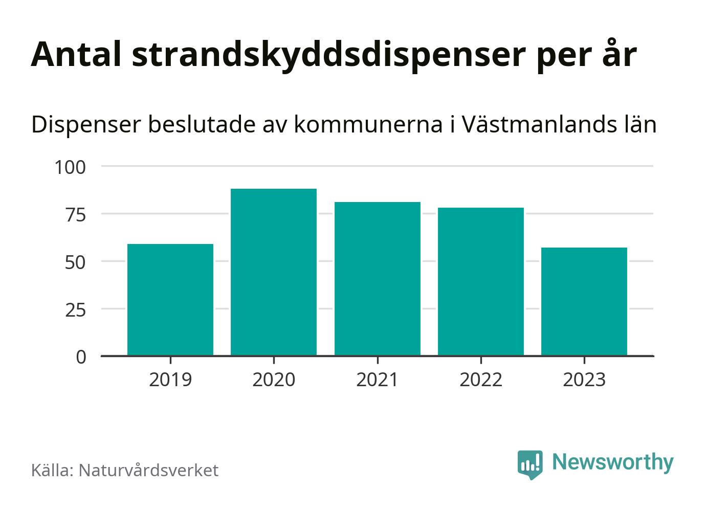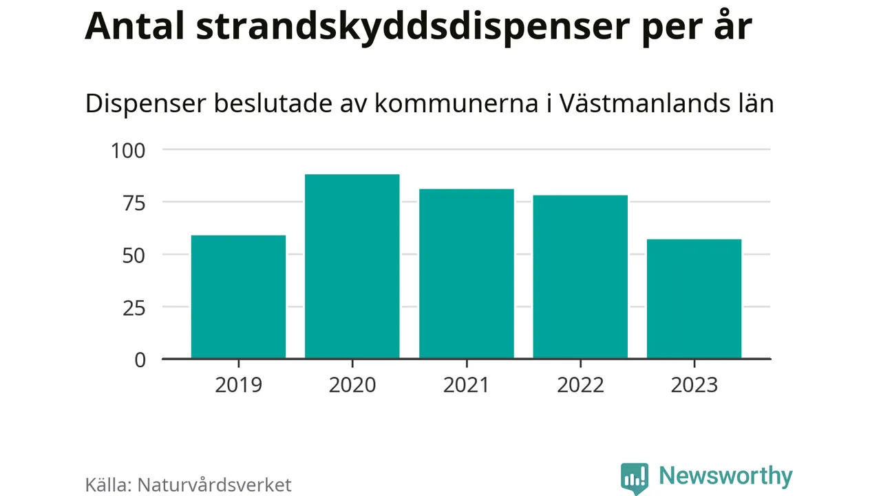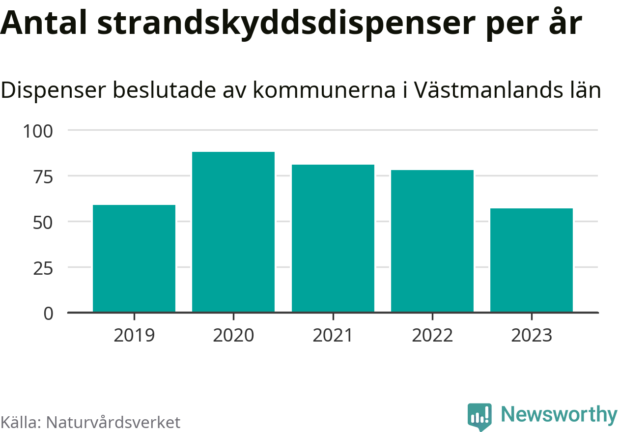 Den som vill bygga nära vatten behöver dispens från strandskyddet, lagstiftningen som ska säkra allmänhetens tillgång till stränderna och bevara livsvillkor för djur och växter. I de flesta fall är det kommunerna som godkänner dispenserna, och under de senaste fem åren har kommunerna i Västmanlands län fattat 363 beslut för totalt 500 åtgärder inom strandskyddat område, enligt den sammanställning Naturvårdsverket varje år gör.