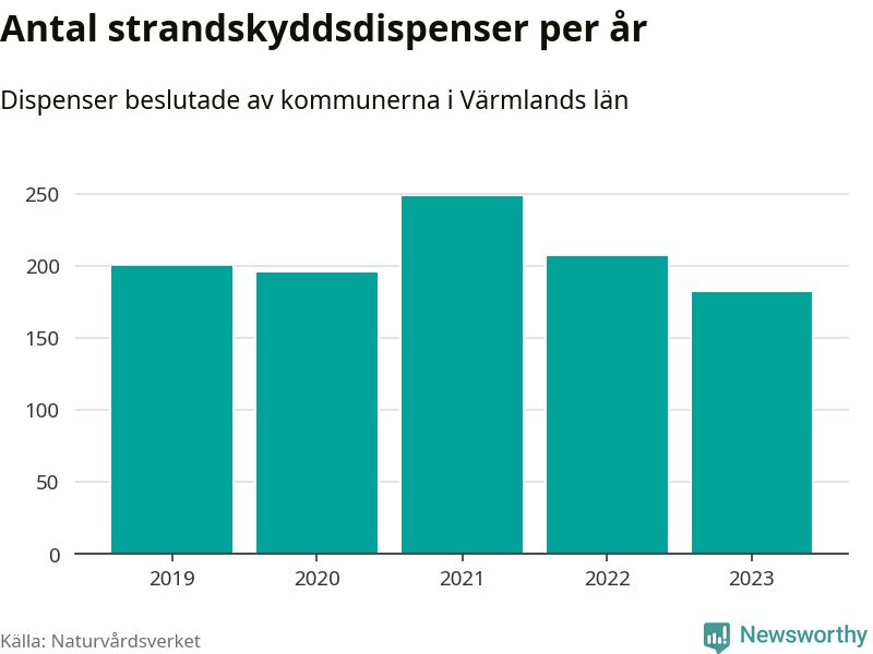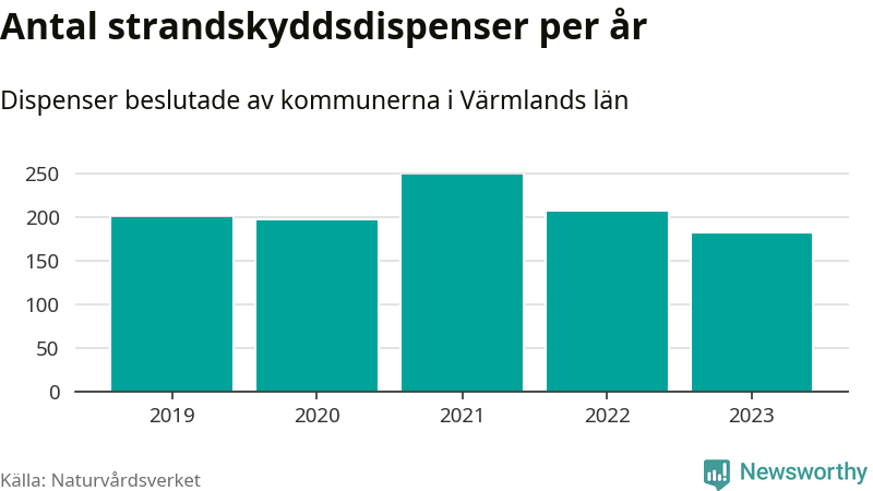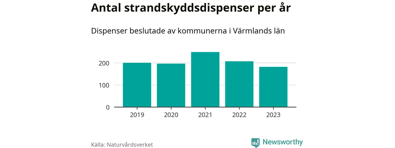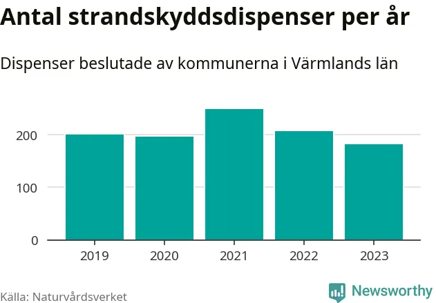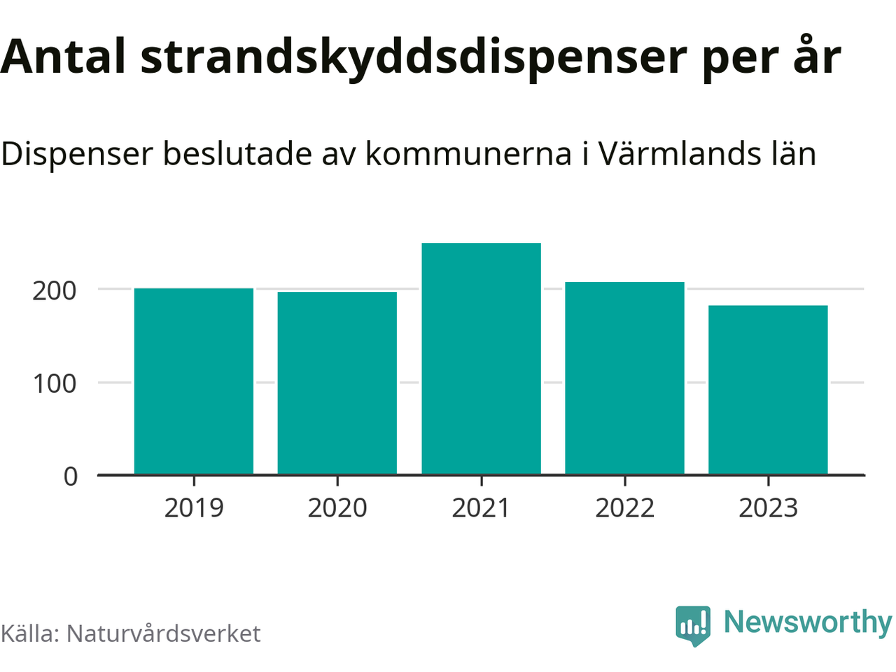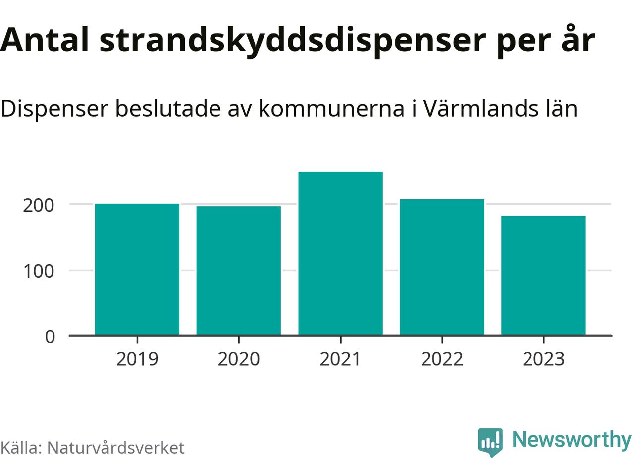 Den som vill bygga nära vatten behöver dispens från strandskyddet, lagstiftningen som ska säkra allmänhetens tillgång till stränderna och bevara livsvillkor för djur och växter. I de flesta fall är det kommunerna som godkänner dispenserna, och under de senaste fem åren har kommunerna i Värmlands län fattat 1 034 beslut för totalt 1 360 åtgärder inom strandskyddat område, enligt den sammanställning Naturvårdsverket varje år gör.