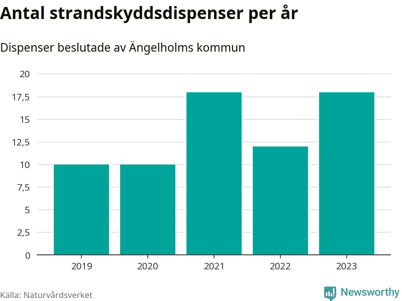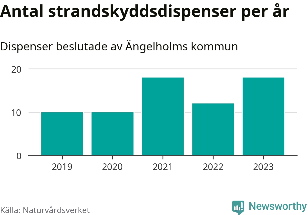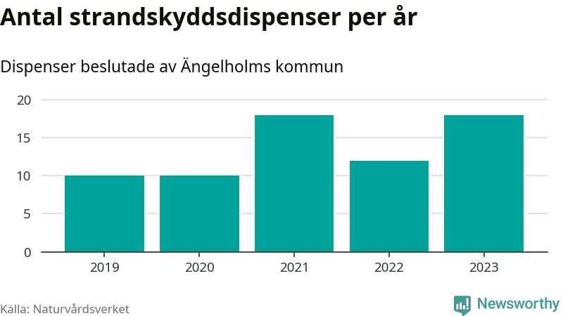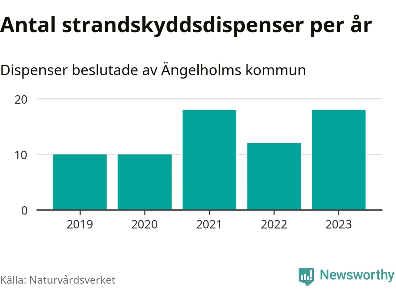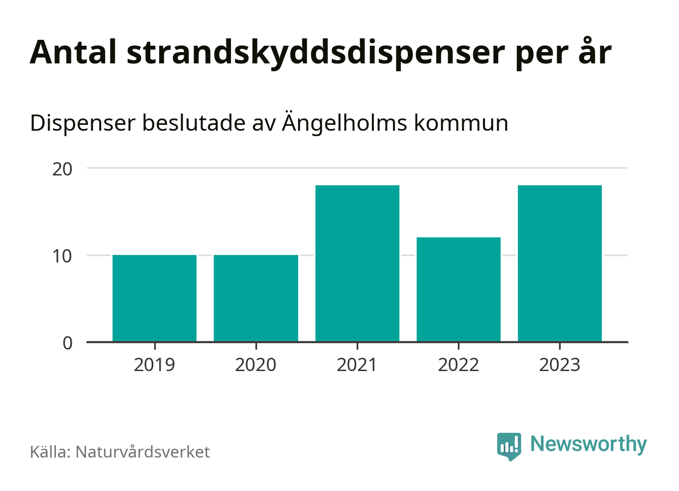 Den som vill bygga nära vatten behöver dispens från strandskyddet, lagstiftningen som ska säkra allmänhetens tillgång till stränderna och bevara livsvillkor för djur och växter. I de flesta fall är det kommunerna som godkänner dispenserna, och under de senaste fem åren har Ängelholms kommun fattat 68 beslut för totalt 94 åtgärder inom strandskyddat område, enligt den sammanställning Naturvårdsverket varje år gör. Det är näst flest av kommunerna i Skåne län. Flest dispenser i länet har godkänts i Kristianstad – 111 stycken.