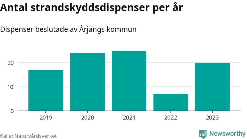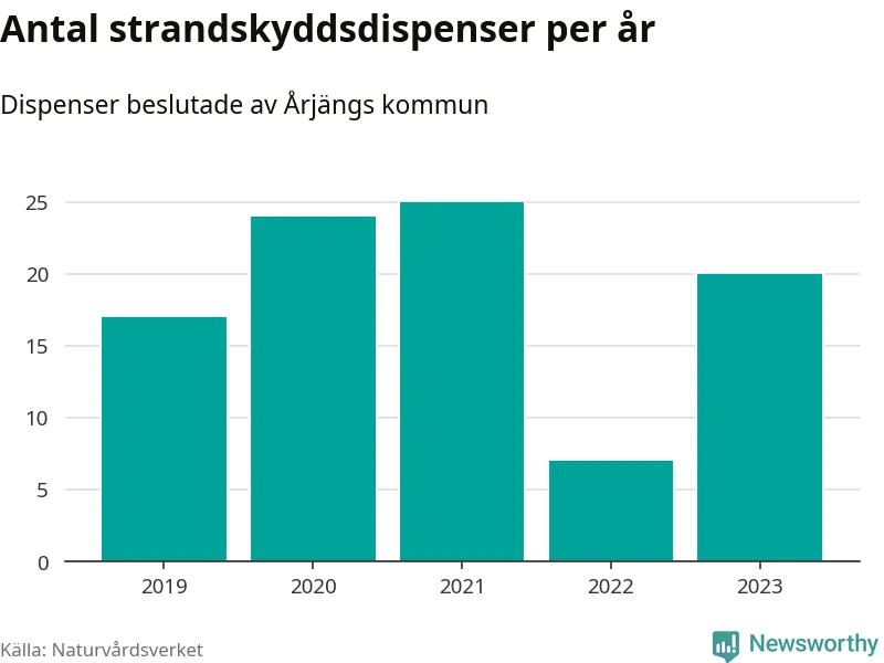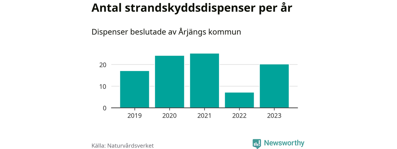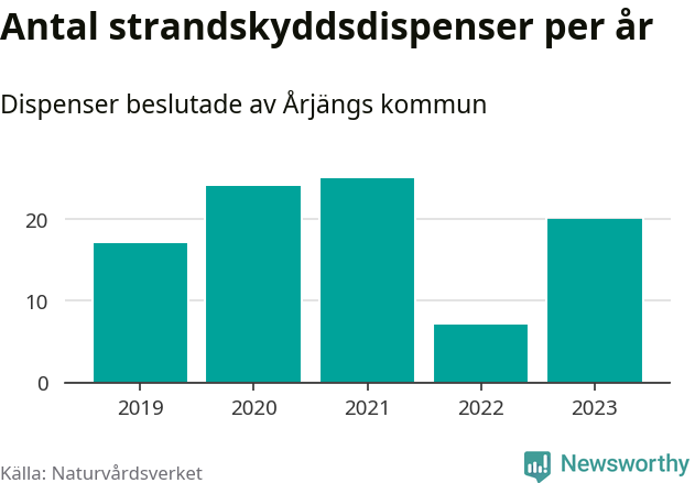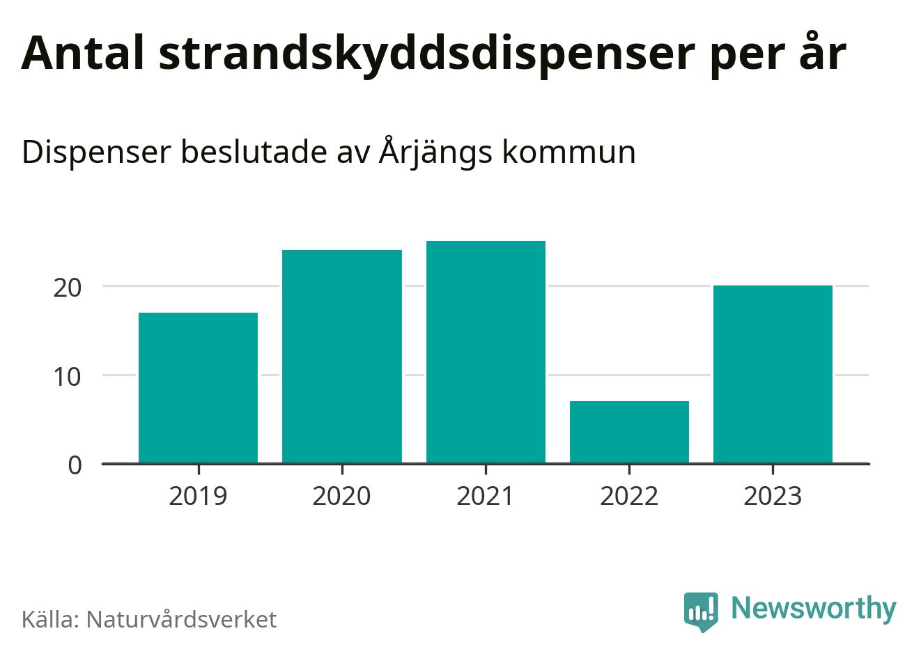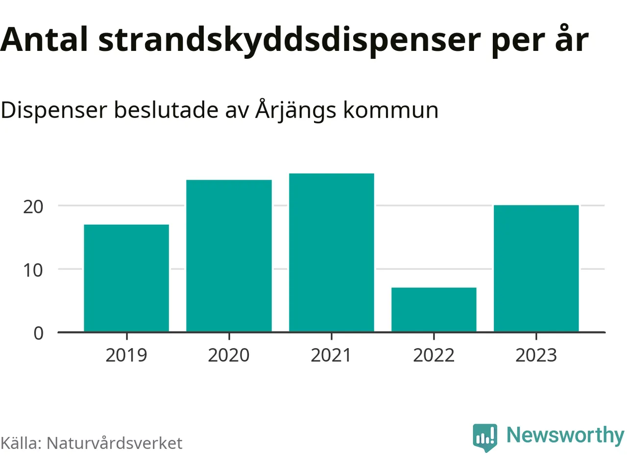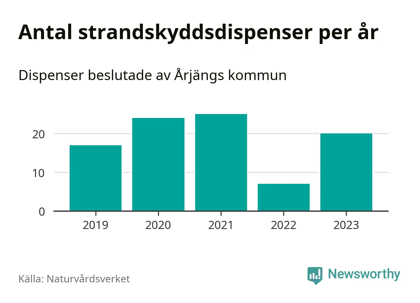 Den som vill bygga nära vatten behöver dispens från strandskyddet, lagstiftningen som ska säkra allmänhetens tillgång till stränderna och bevara livsvillkor för djur och växter. I de flesta fall är det kommunerna som godkänner dispenserna, och under de senaste fem åren har Årjängs kommun fattat 93 beslut för totalt 149 åtgärder inom strandskyddat område, enligt den sammanställning Naturvårdsverket varje år gör. Det är inte en siffra som sticker ut särskilt jämfört med andra kommuner. Flest dispenser i Värmlands län har godkänts i Arvika – 137 stycken.