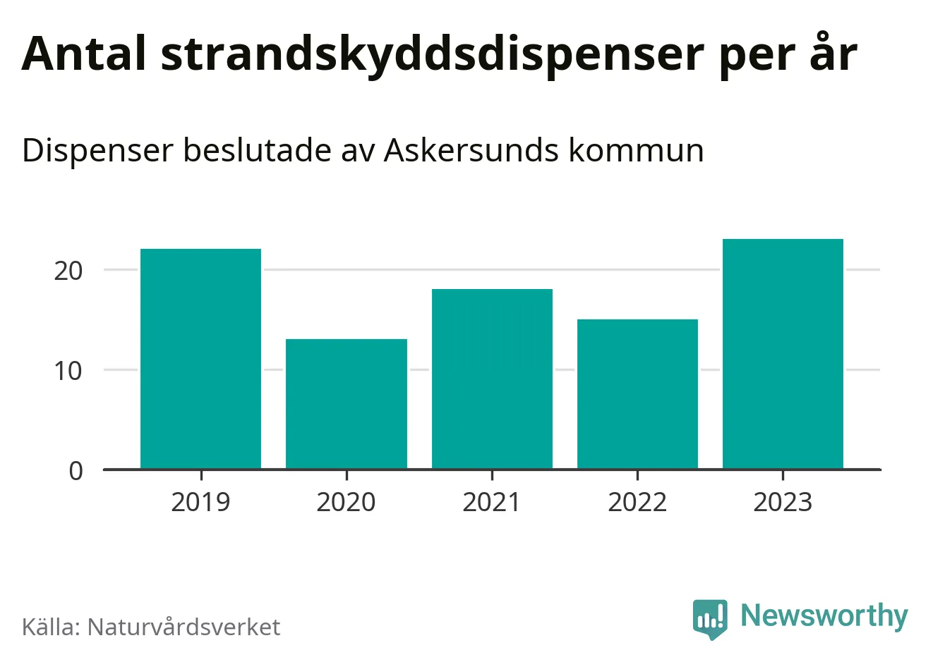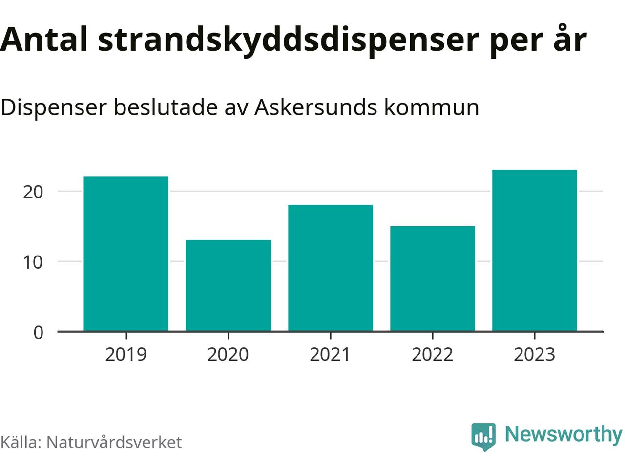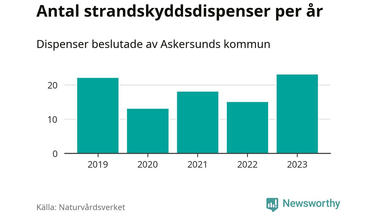 Den som vill bygga nära vatten behöver dispens från strandskyddet, lagstiftningen som ska säkra allmänhetens tillgång till stränderna och bevara livsvillkor för djur och växter. I de flesta fall är det kommunerna som godkänner dispenserna, och under de senaste fem åren har Askersunds kommun fattat 91 beslut för totalt 101 åtgärder inom strandskyddat område, enligt den sammanställning Naturvårdsverket varje år gör. Det är flest av kommunerna i Örebro län.