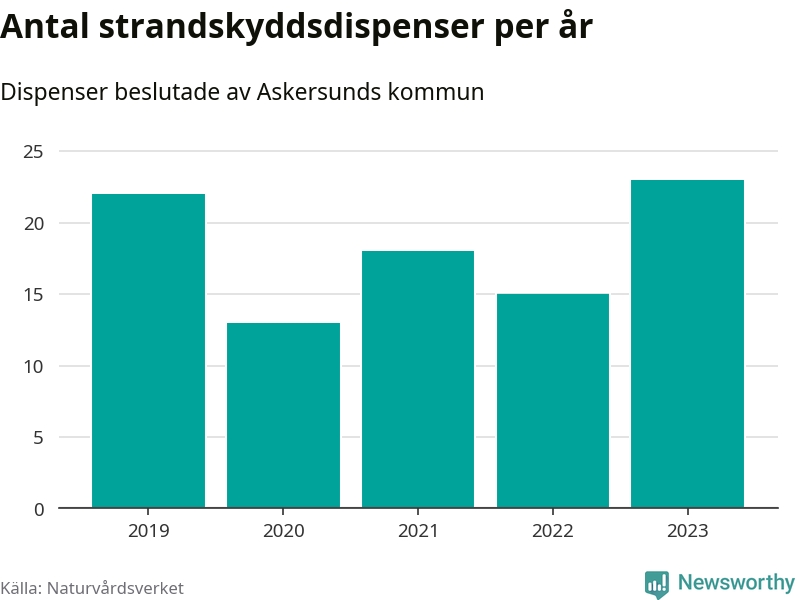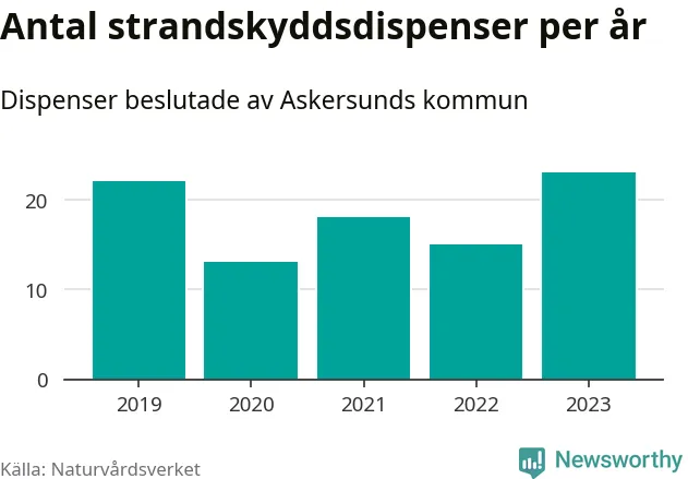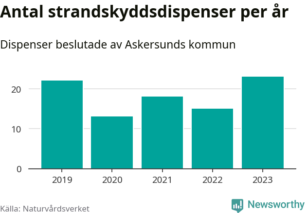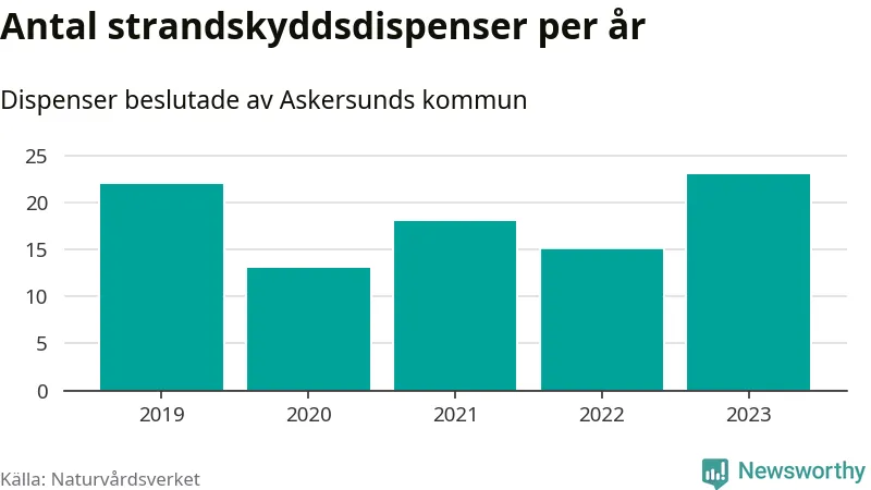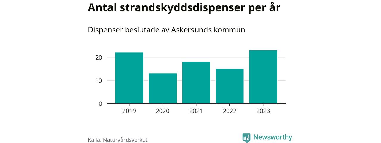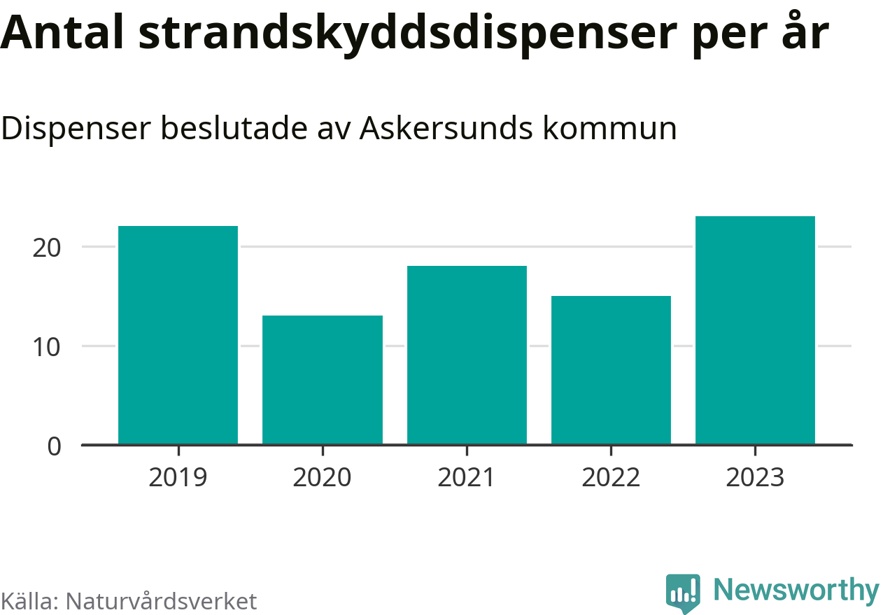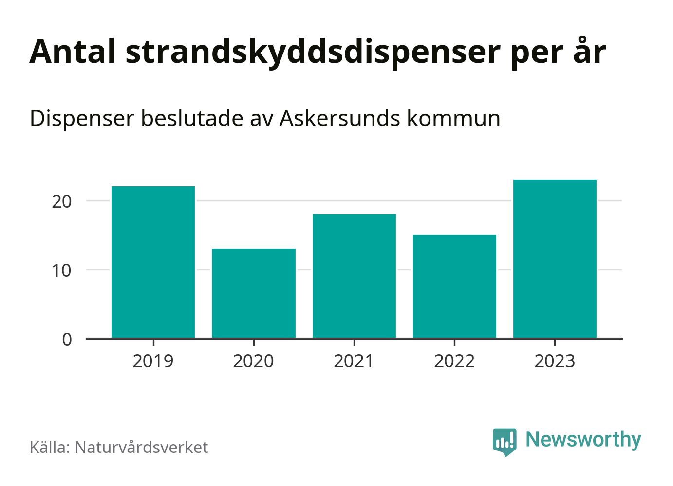 Den som vill bygga nära vatten behöver dispens från strandskyddet, lagstiftningen som ska säkra allmänhetens tillgång till stränderna och bevara livsvillkor för djur och växter. I de flesta fall är det kommunerna som godkänner dispenserna, och under de senaste fem åren har Askersunds kommun fattat 91 beslut för totalt 101 åtgärder inom strandskyddat område, enligt den sammanställning Naturvårdsverket varje år gör. Det är flest av kommunerna i Örebro län.