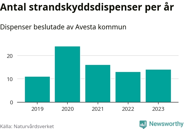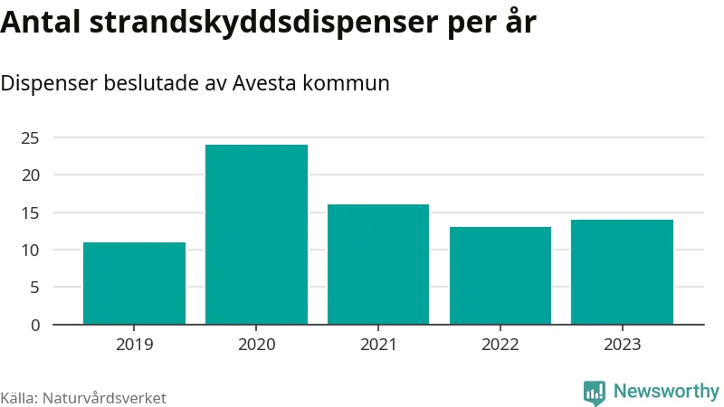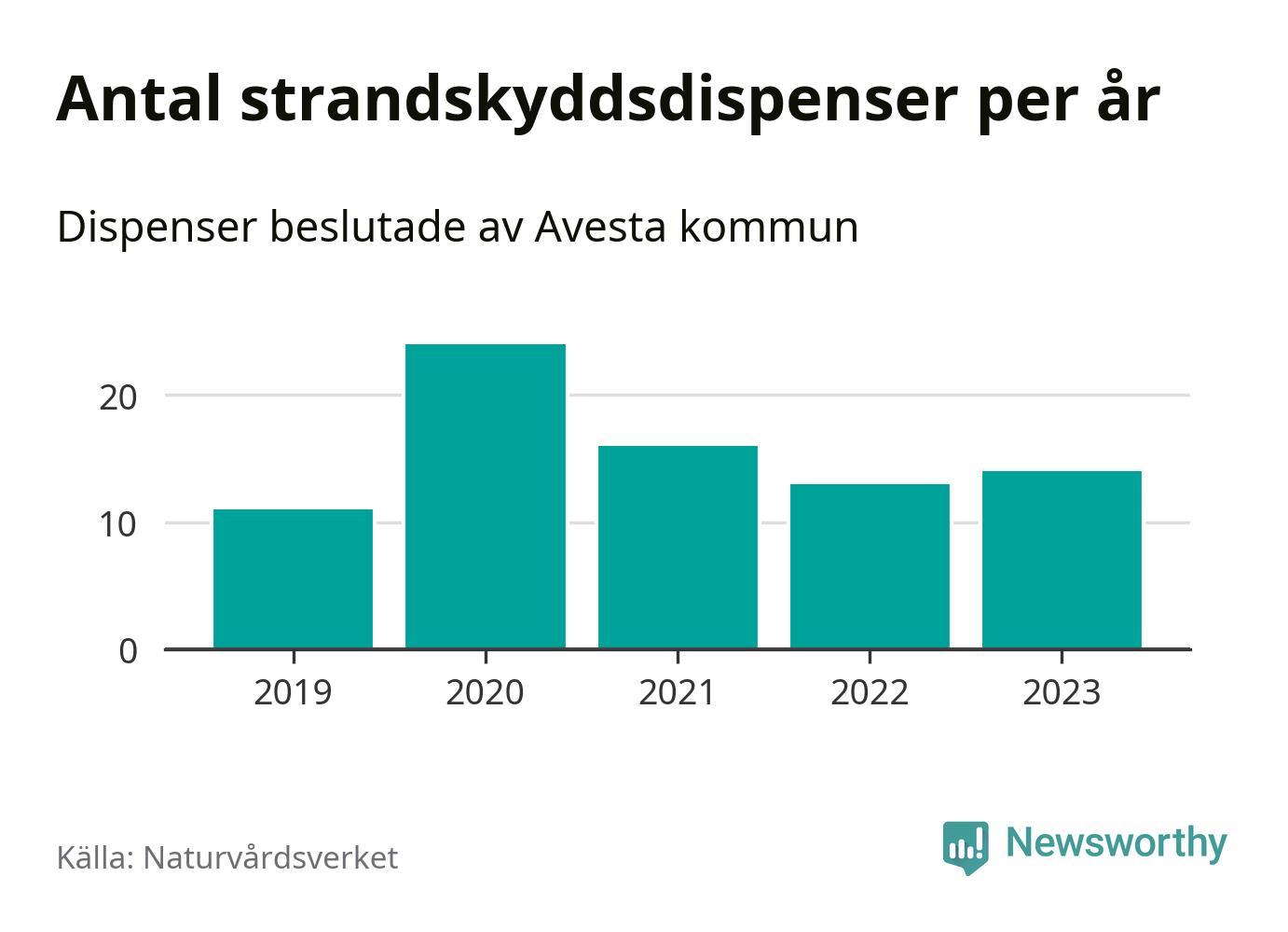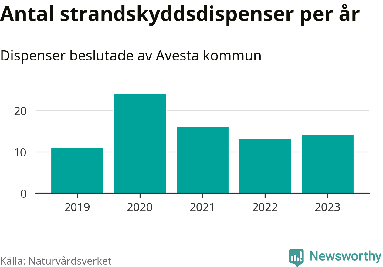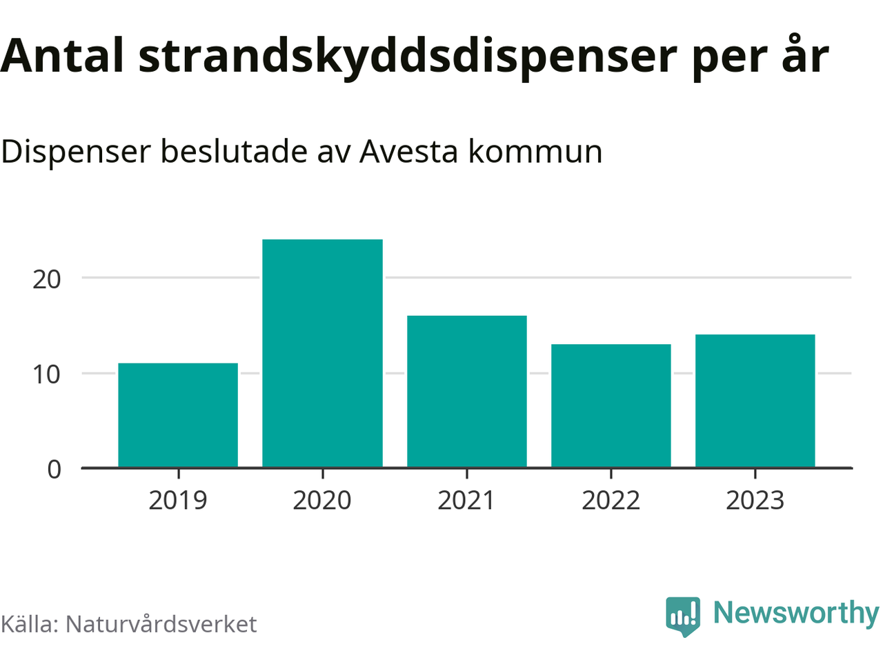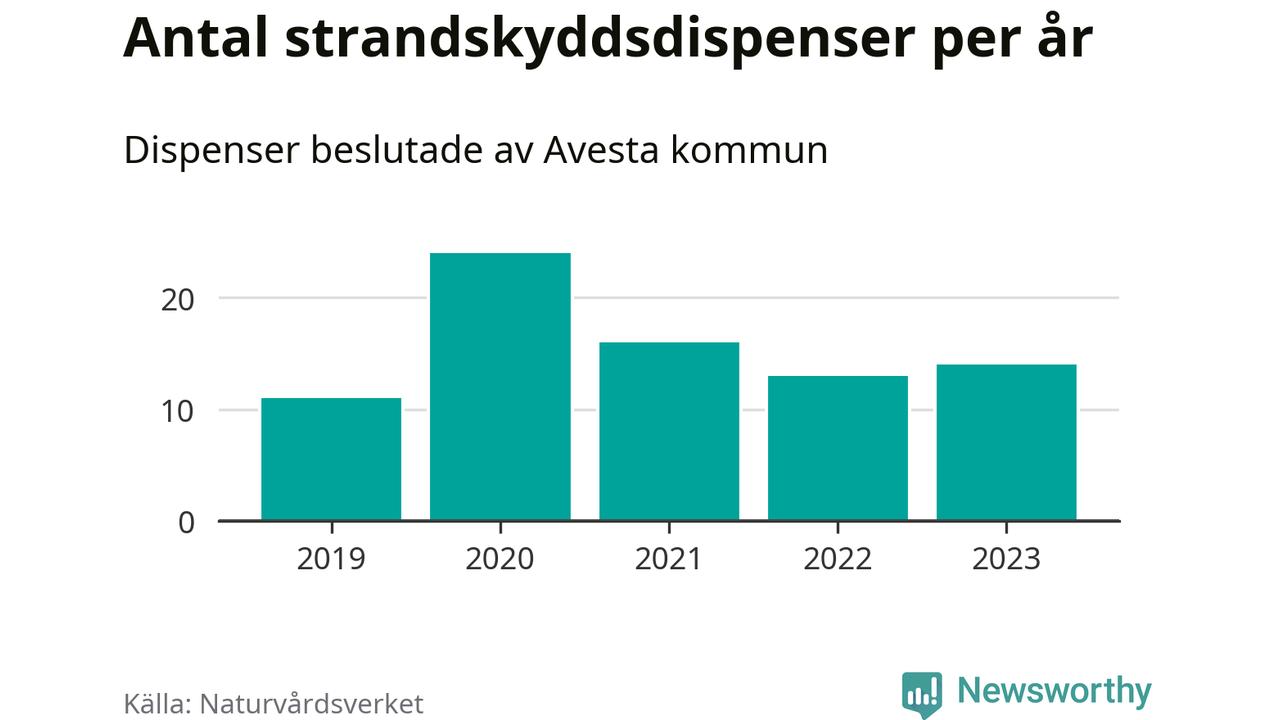 Den som vill bygga nära vatten behöver dispens från strandskyddet, lagstiftningen som ska säkra allmänhetens tillgång till stränderna och bevara livsvillkor för djur och växter. I de flesta fall är det kommunerna som godkänner dispenserna, och under de senaste fem åren har Avesta kommun fattat 78 beslut för totalt 106 åtgärder inom strandskyddat område, enligt den sammanställning Naturvårdsverket varje år gör. Det är inte en siffra som sticker ut särskilt jämfört med andra kommuner. Flest dispenser i Dalarnas län har godkänts i Falun – 323 stycken.