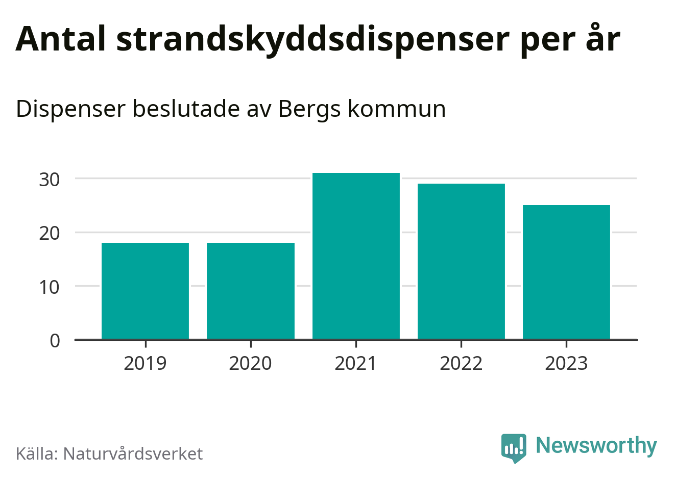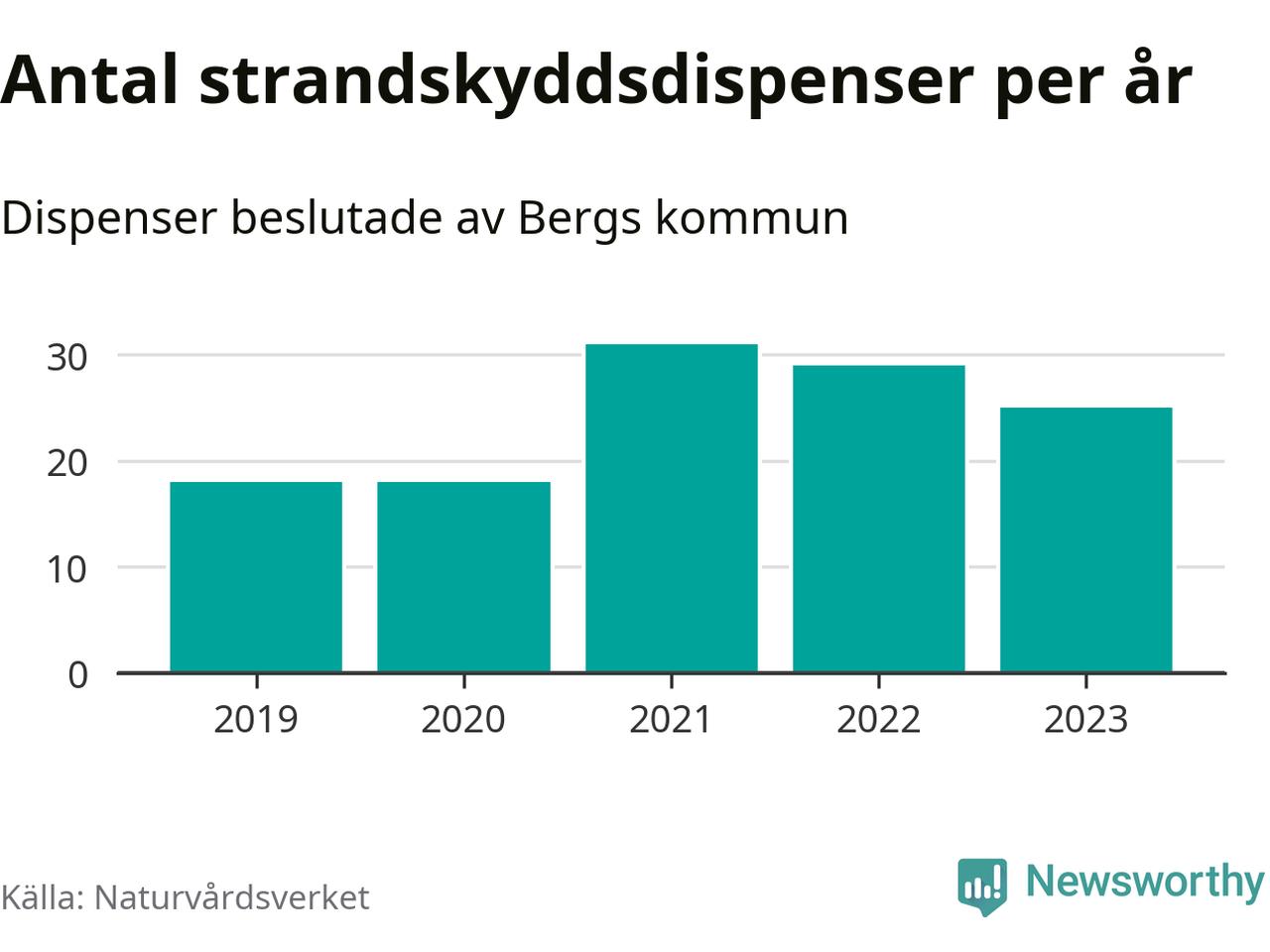 Strandskyddsdispenser per kommun 2019–2023 i Jämtlands län
