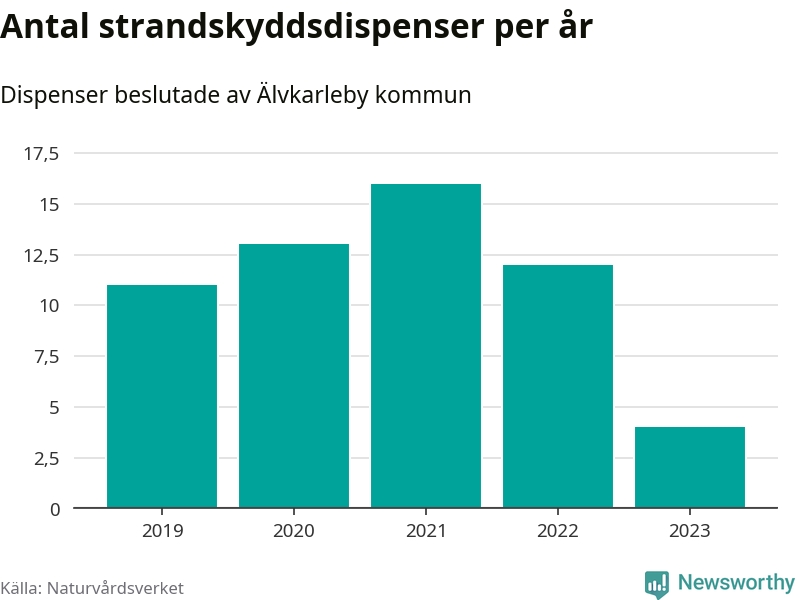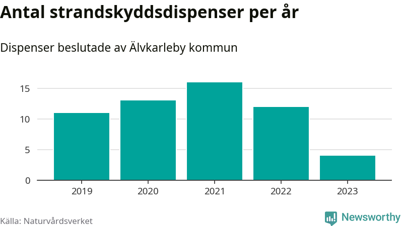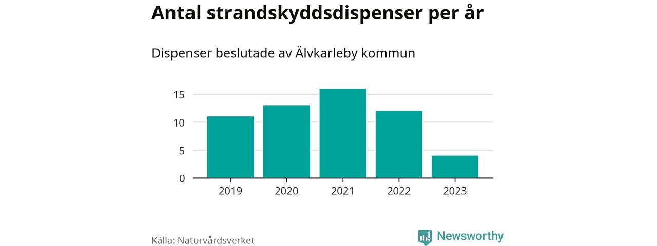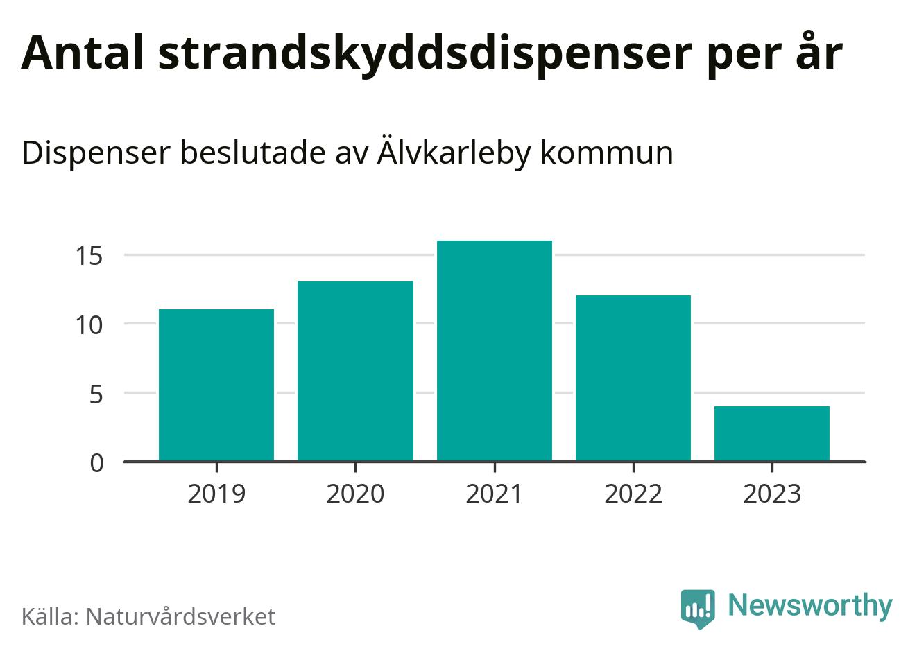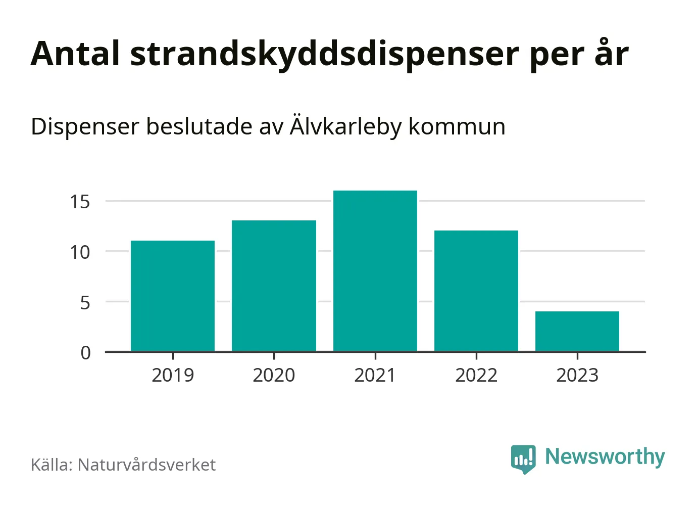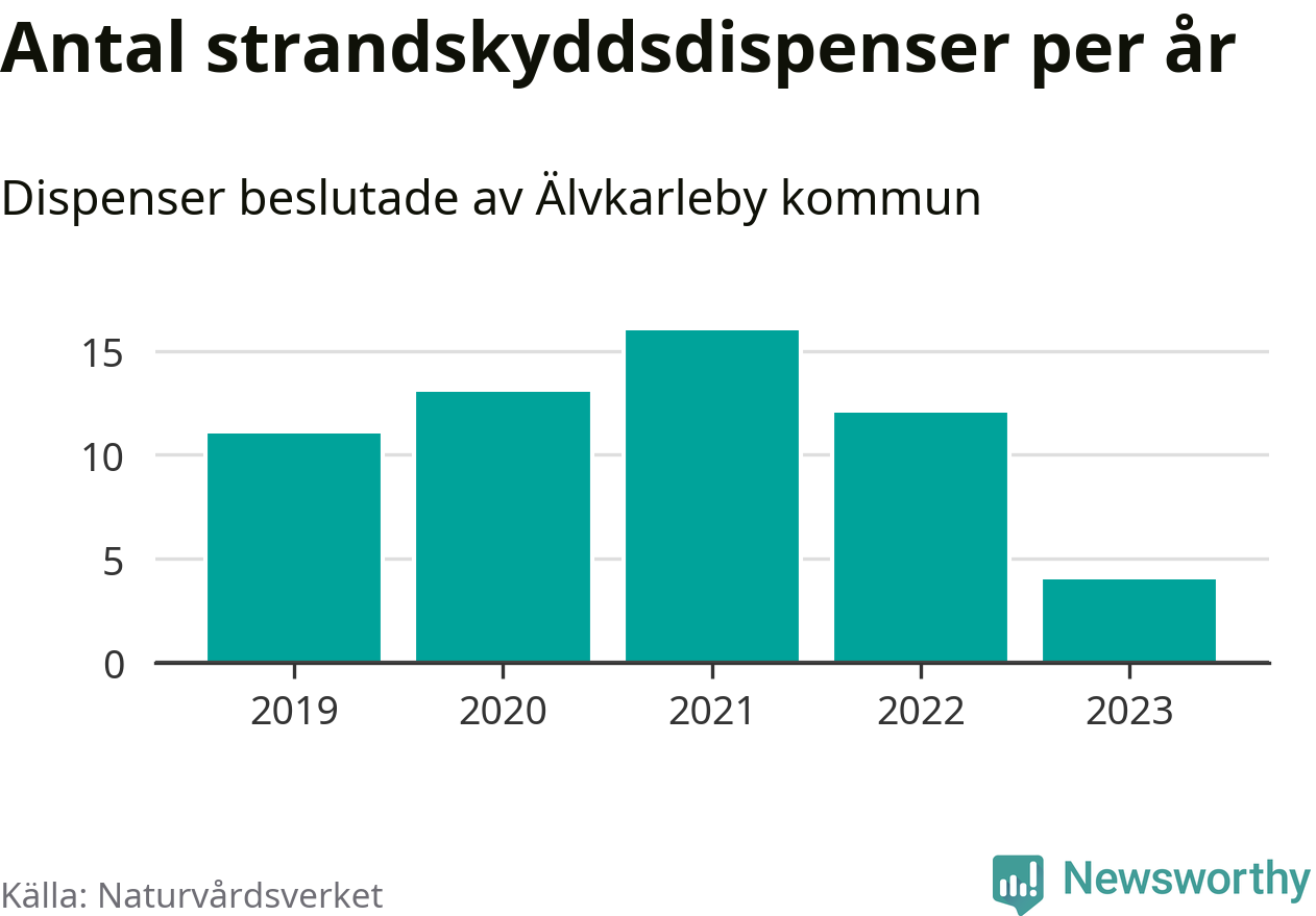 Den som vill bygga nära vatten behöver dispens från strandskyddet, lagstiftningen som ska säkra allmänhetens tillgång till stränderna och bevara livsvillkor för djur och växter. I de flesta fall är det kommunerna som godkänner dispenserna, och under de senaste fem åren har Älvkarleby kommun fattat 56 beslut för totalt 78 åtgärder inom strandskyddat område, enligt den sammanställning Naturvårdsverket varje år gör. Det är inte en siffra som sticker ut särskilt jämfört med andra kommuner. Flest dispenser i Uppsala län har godkänts i Östhammar – 153 stycken.