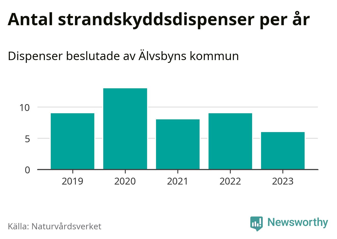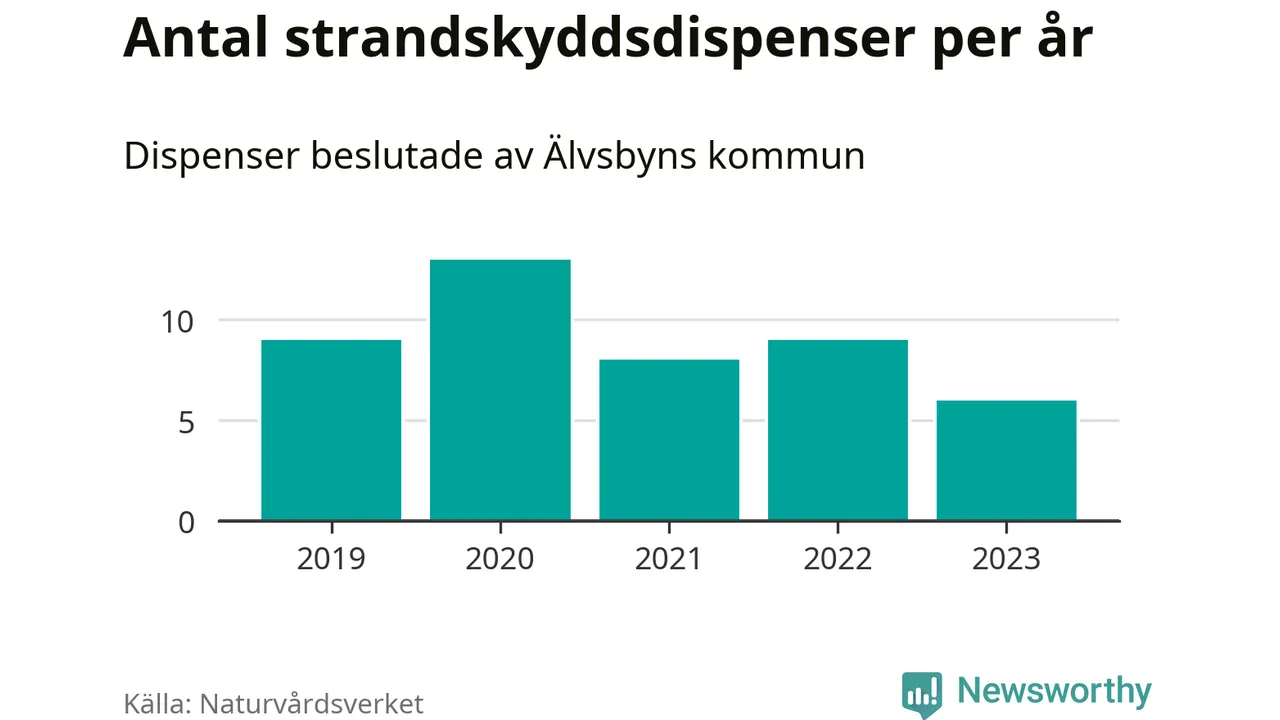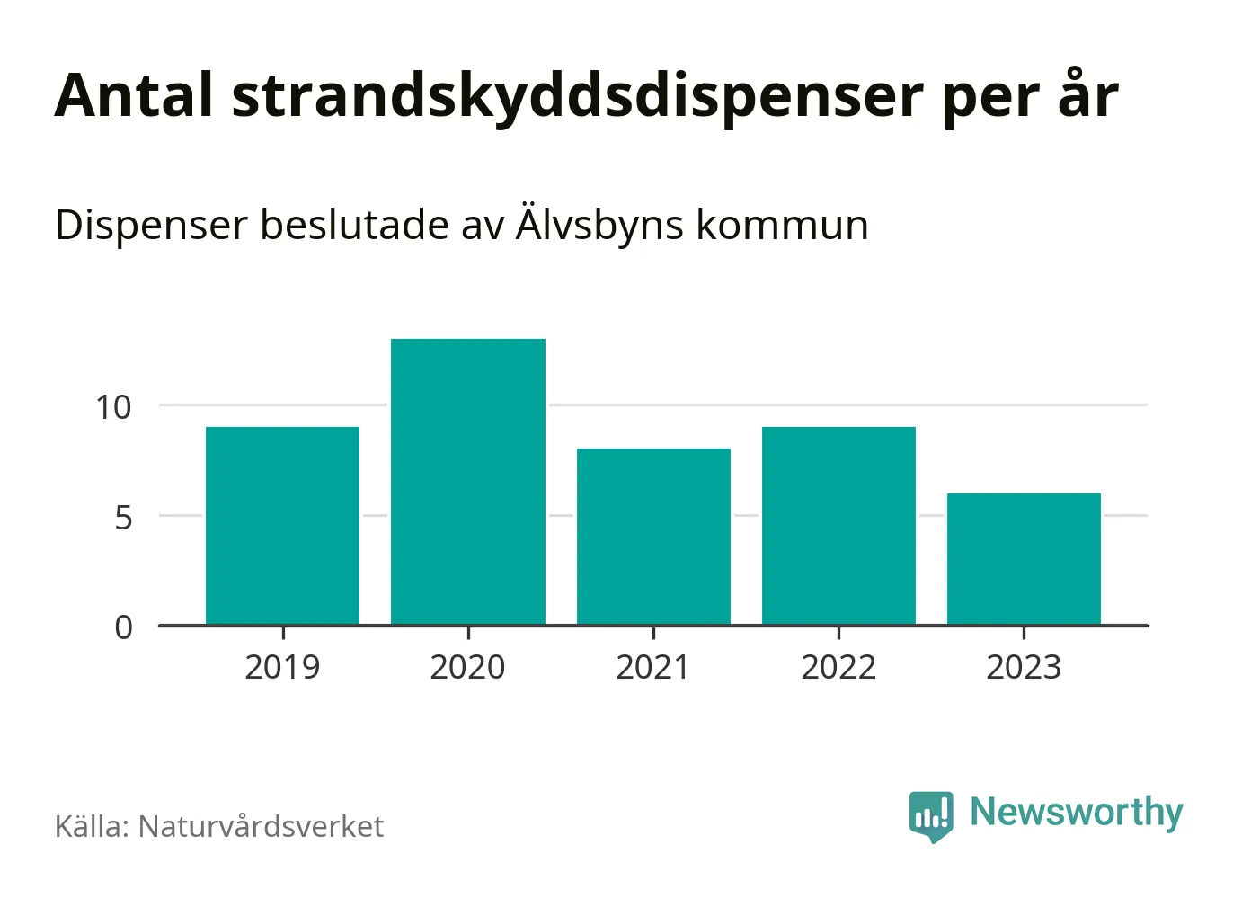 Den som vill bygga nära vatten behöver dispens från strandskyddet, lagstiftningen som ska säkra allmänhetens tillgång till stränderna och bevara livsvillkor för djur och växter. I de flesta fall är det kommunerna som godkänner dispenserna, och under de senaste fem åren har Älvsbyns kommun fattat 45 beslut för totalt 69 åtgärder inom strandskyddat område, enligt den sammanställning Naturvårdsverket varje år gör. Det är inte en siffra som sticker ut särskilt jämfört med andra kommuner. Flest dispenser i Norrbottens län har godkänts i Luleå – 199 stycken.