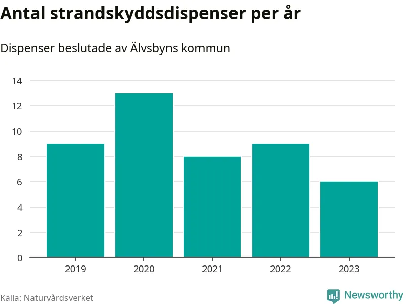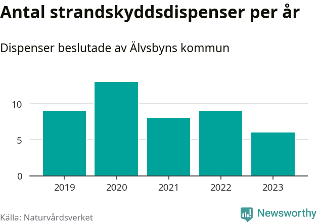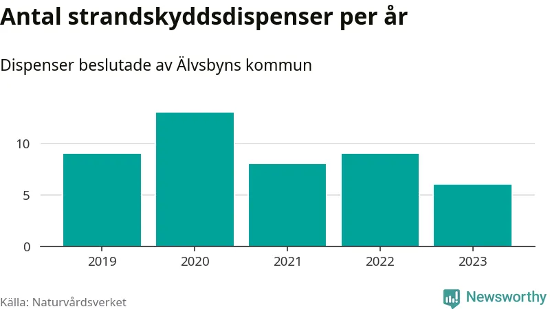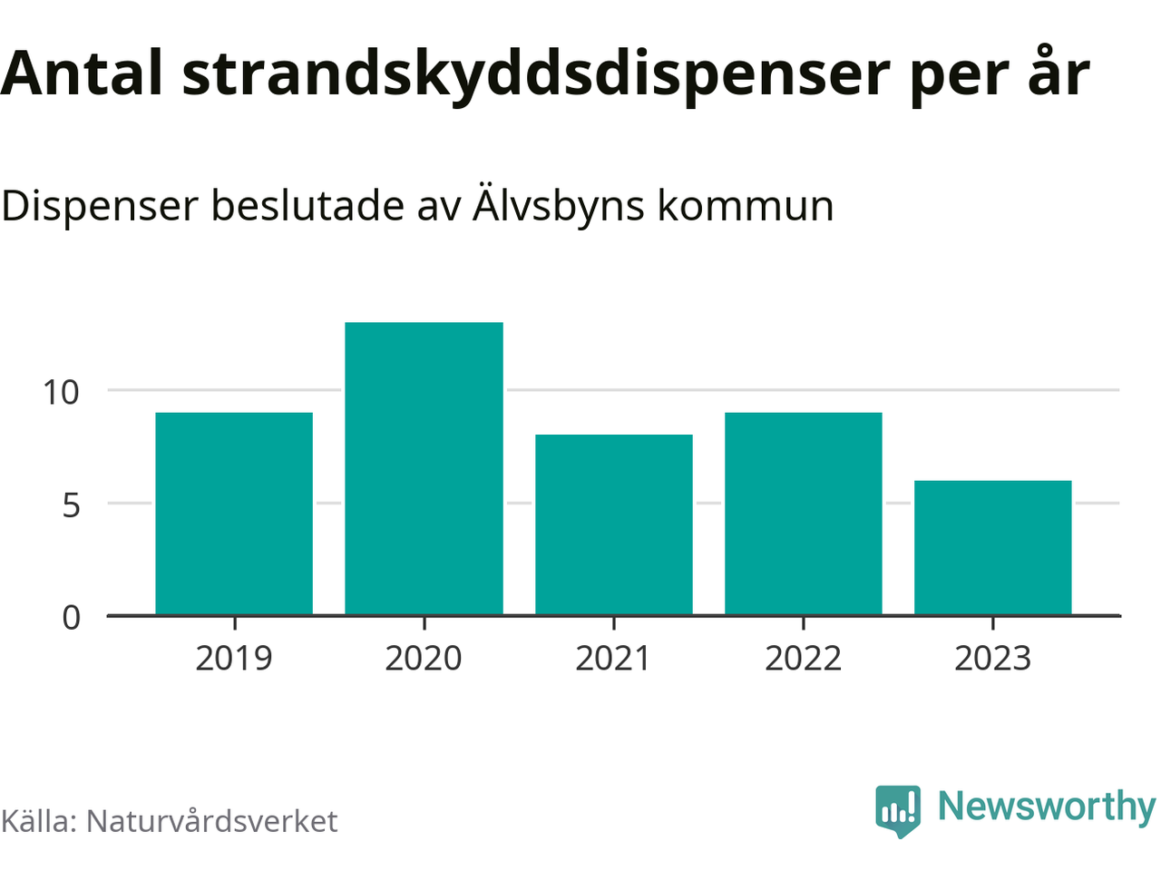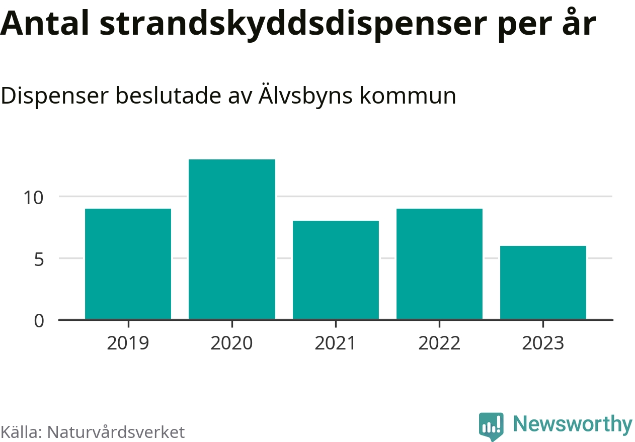 Den som vill bygga nära vatten behöver dispens från strandskyddet, lagstiftningen som ska säkra allmänhetens tillgång till stränderna och bevara livsvillkor för djur och växter. I de flesta fall är det kommunerna som godkänner dispenserna, och under de senaste fem åren har Älvsbyns kommun fattat 45 beslut för totalt 69 åtgärder inom strandskyddat område, enligt den sammanställning Naturvårdsverket varje år gör. Det är inte en siffra som sticker ut särskilt jämfört med andra kommuner. Flest dispenser i Norrbottens län har godkänts i Luleå – 199 stycken.