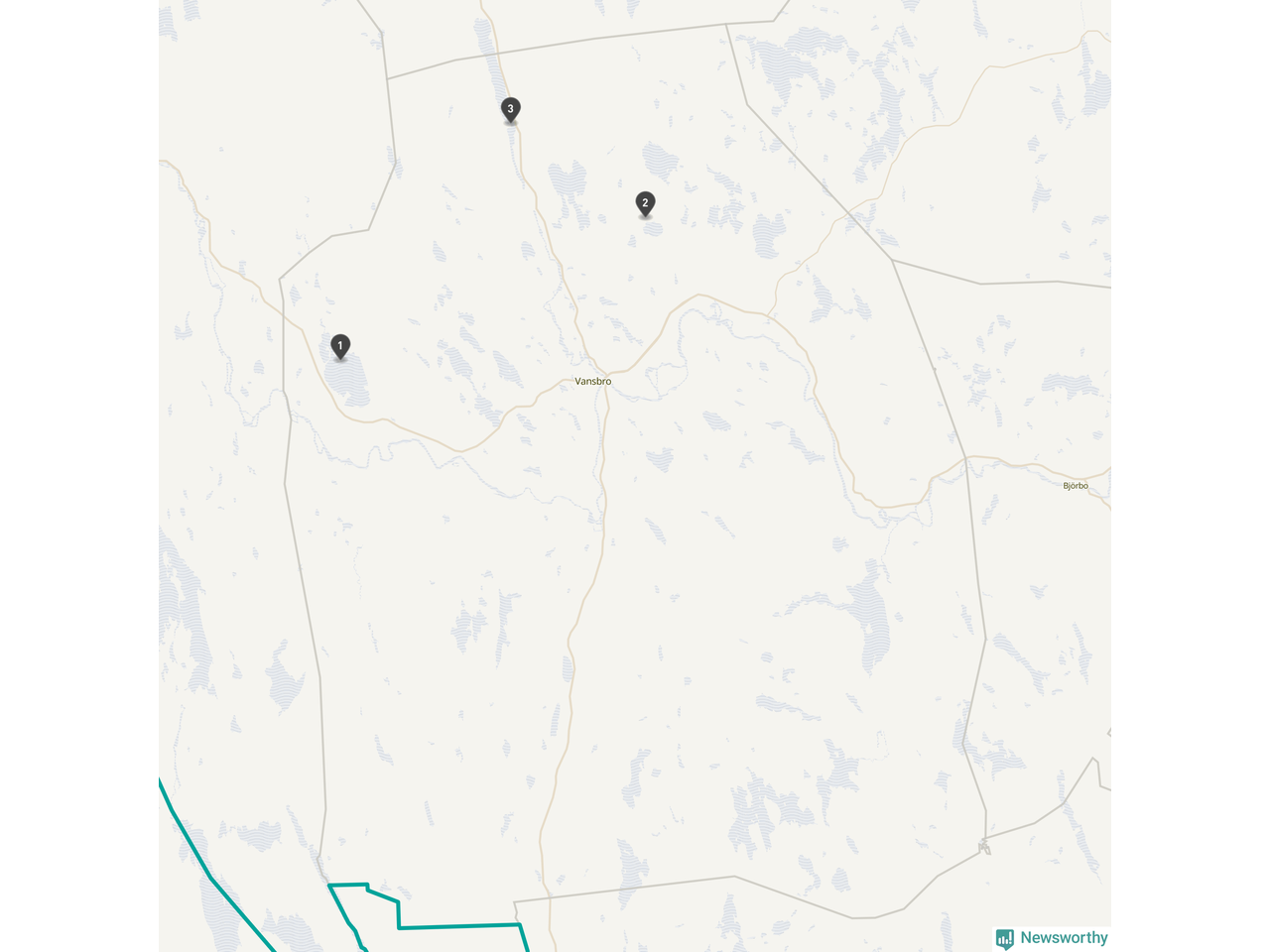 Varje punkt representerar ett gravfält. Om gravfälten är färre än 15 stycken har vi numrerat dem. Om ett eller flera gravfält ligger nära varandra kommer de att grupperas på kartan.