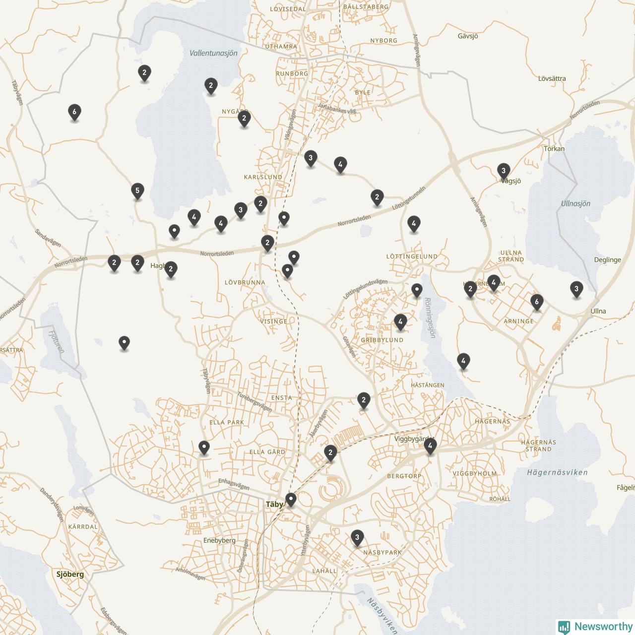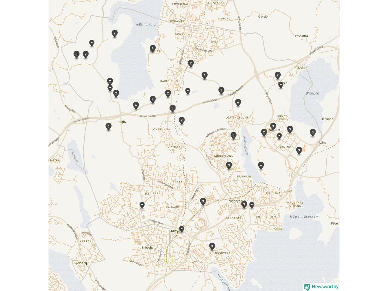 Flest registrerade öde begravningsplatser i hela landet finns i Kristianstads kommun, hela 35 stycken. Flest i Stockholms län, tolv stycken, finns Haninge och Stockholms kommuner. Det ska dock poängteras att det kan finnas fler på andra platser. Databasen bygger på vad som rapporterats in, och det är inte alltid som invånarna rapporterar även om platsen är vida känd, menar Ny Björn Gustafsson.
