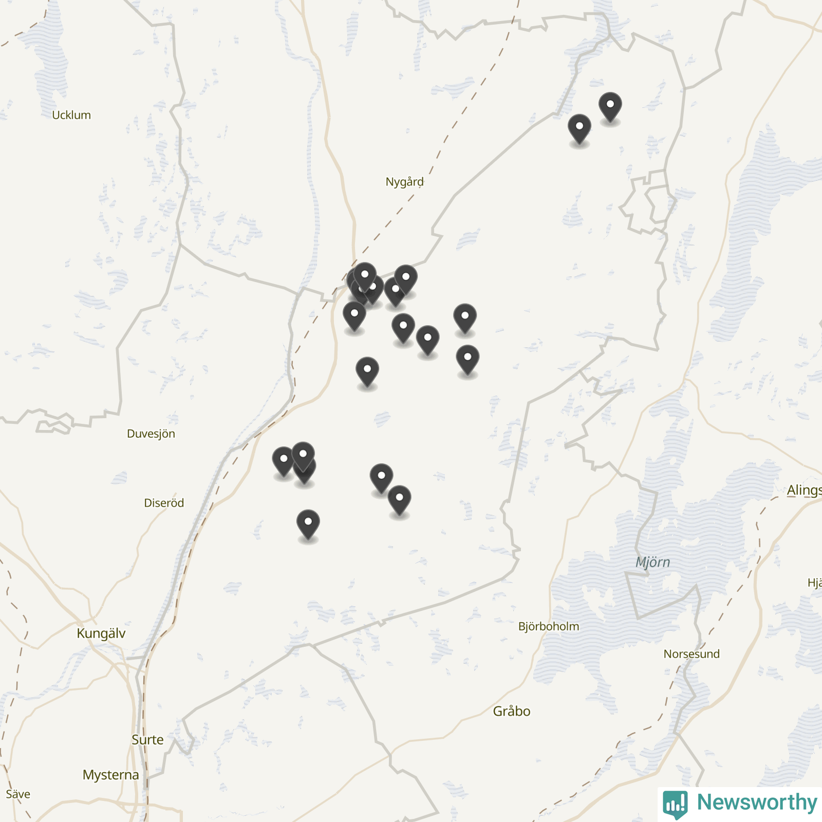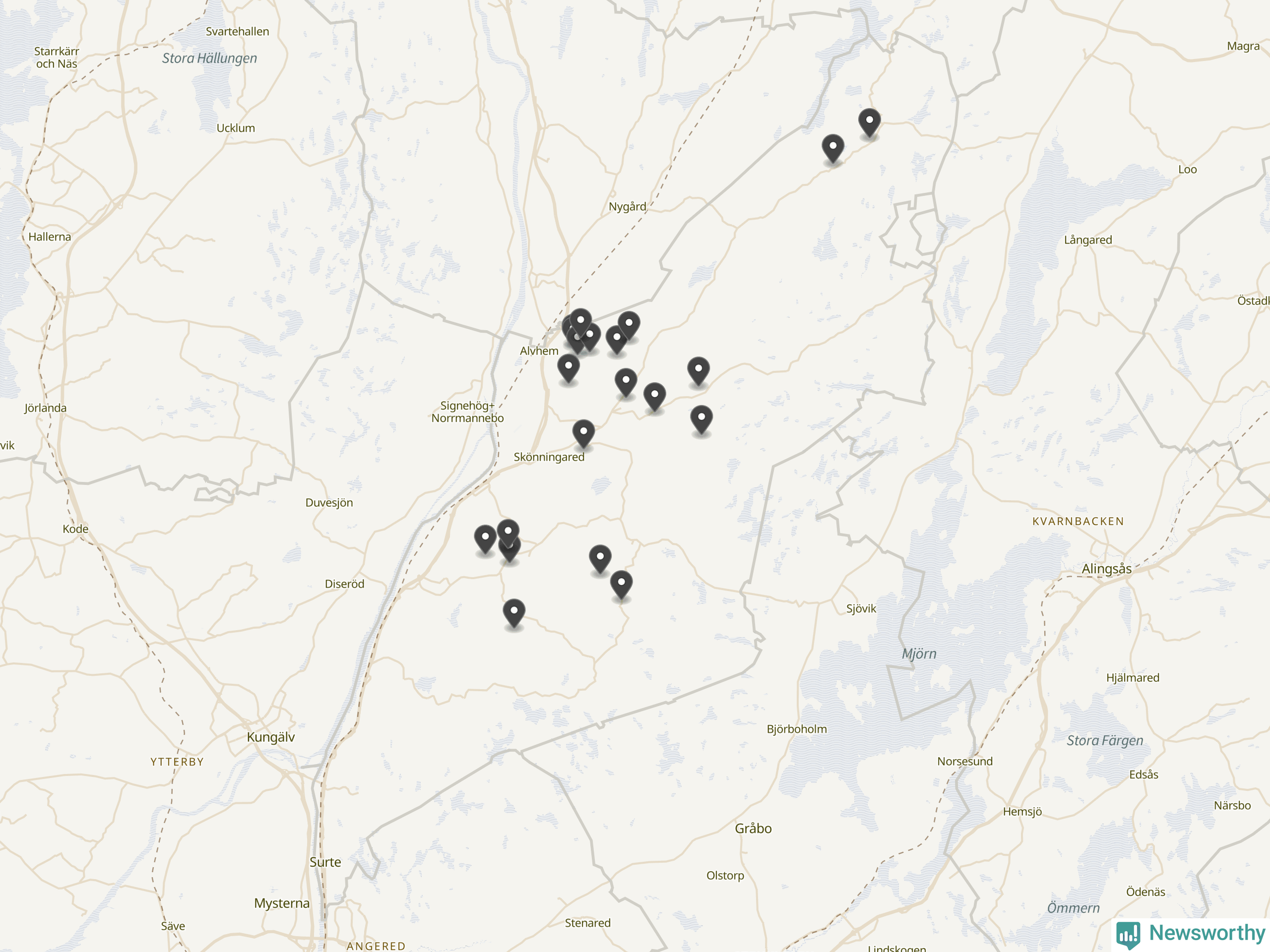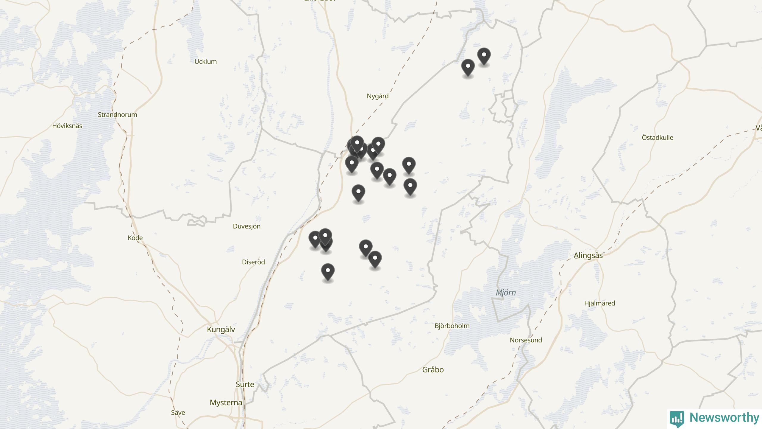 | Vänersborg | 6 | Ödekyrkogård | 39 |