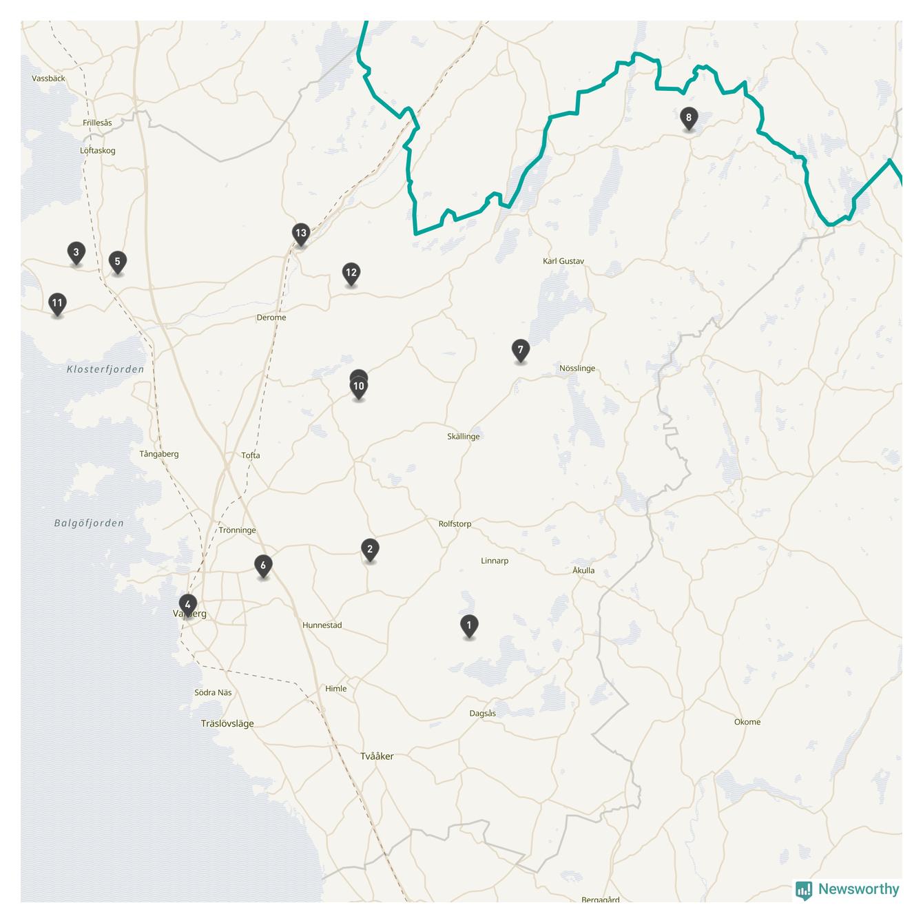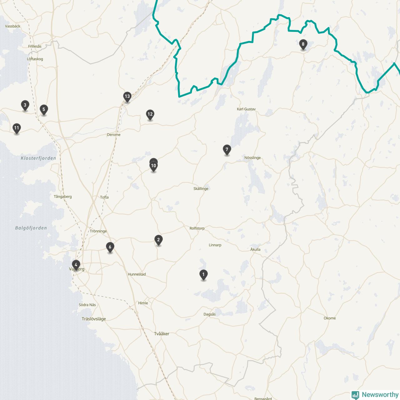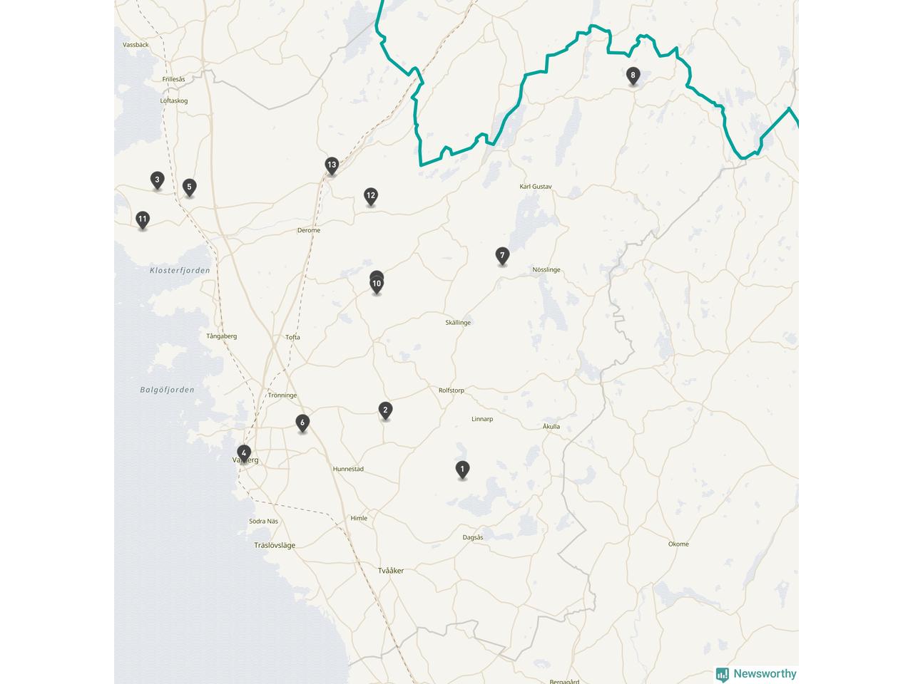 Flest registrerade öde begravningsplatser i hela landet finns i Kristianstads kommun, hela 35 stycken. Flest i Halland, 13 stycken, finns i Varbergs kommun. Det ska dock poängteras att det kan finnas fler på andra platser. Databasen bygger på vad som rapporterats in, och det är inte alltid som invånarna rapporterar även om platsen är vida känd, menar Ny Björn Gustafsson.