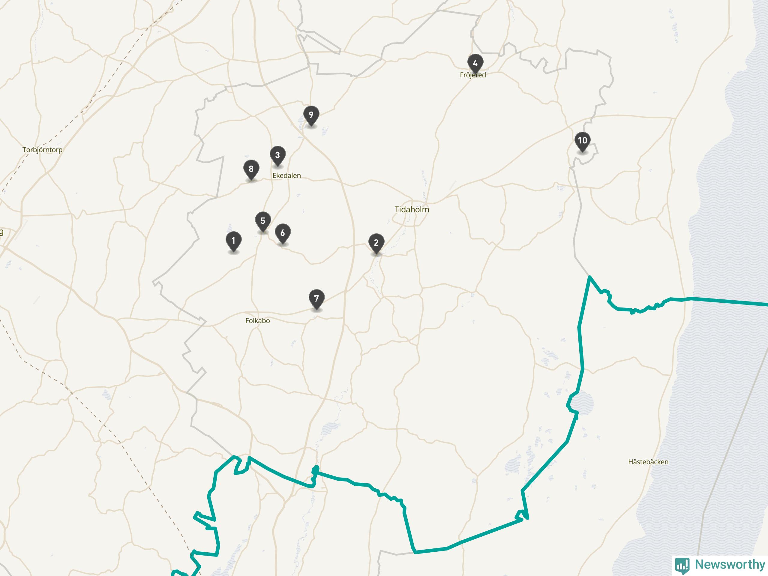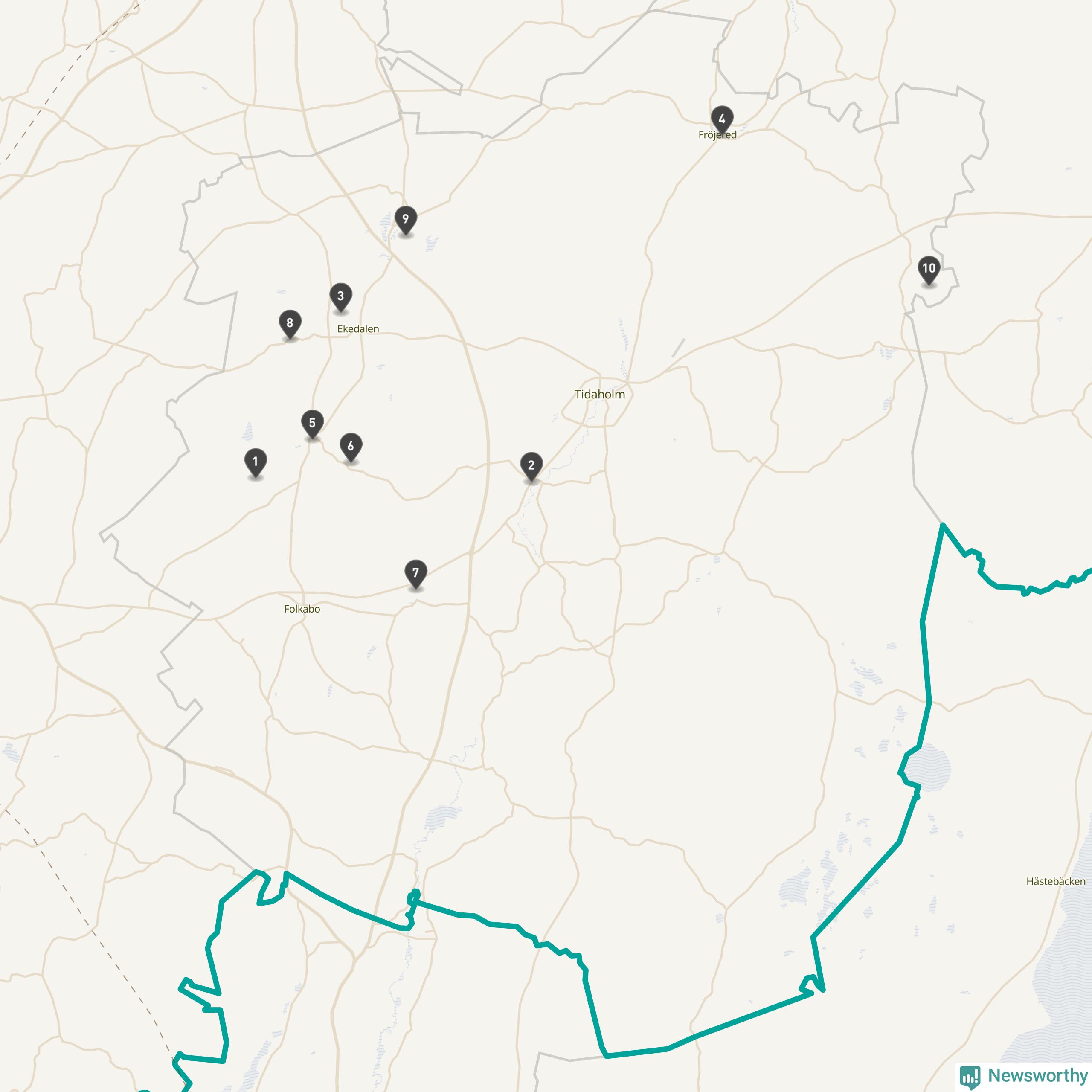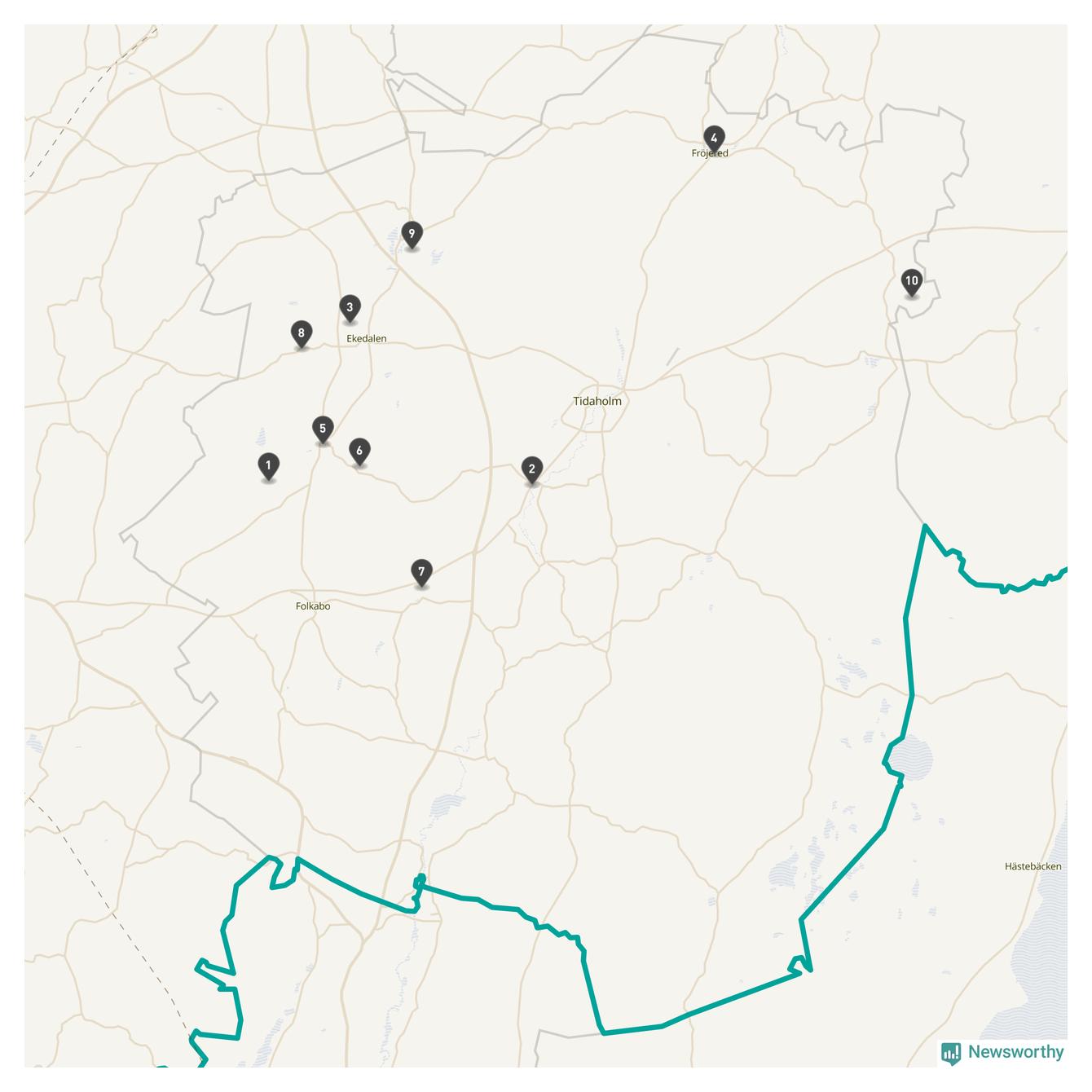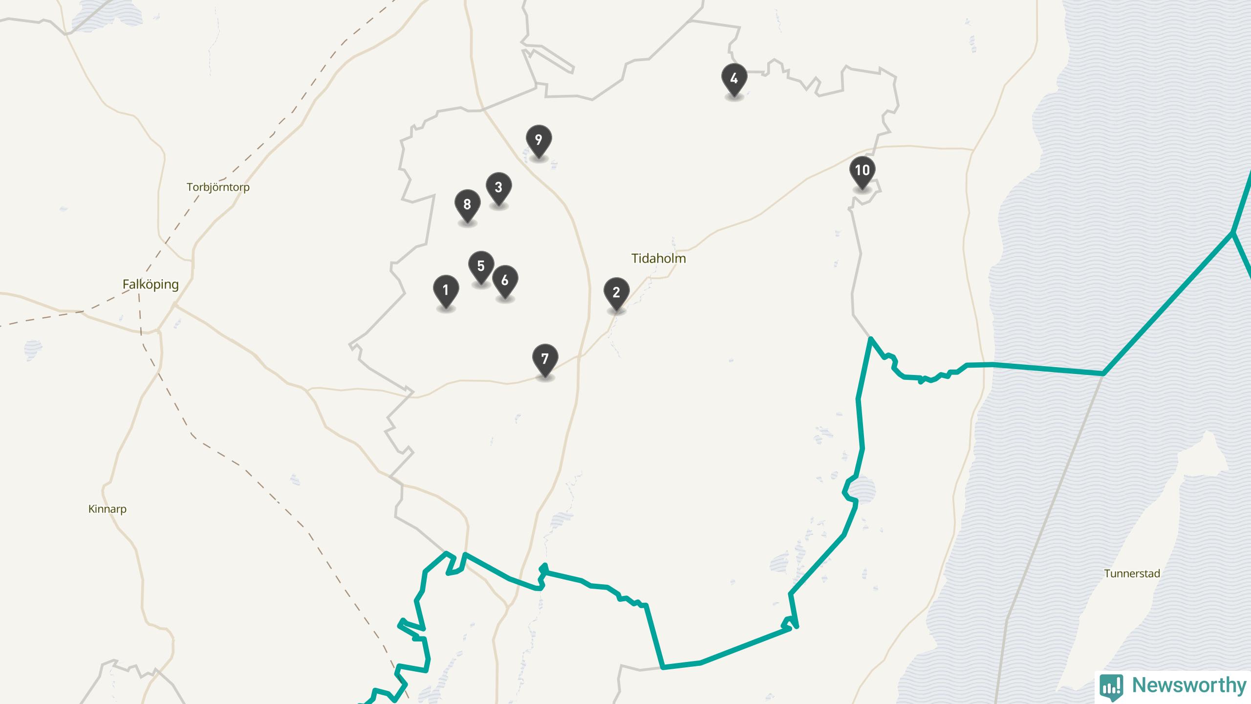 | Tidaholm | 10 | Ödekyrkogård | 41 |