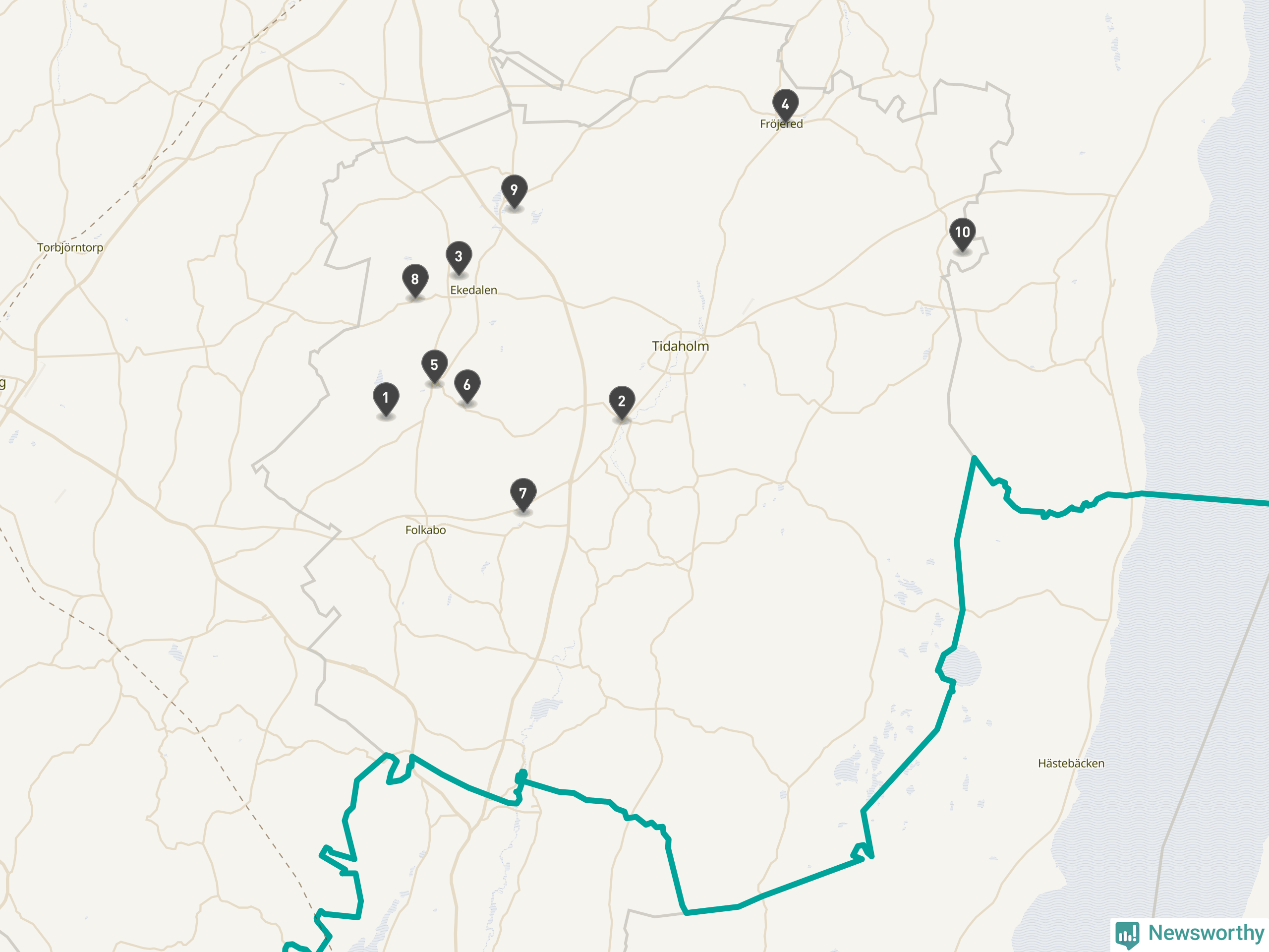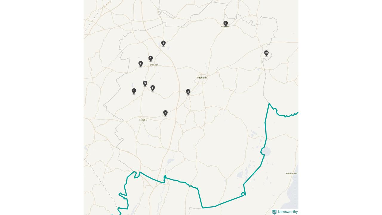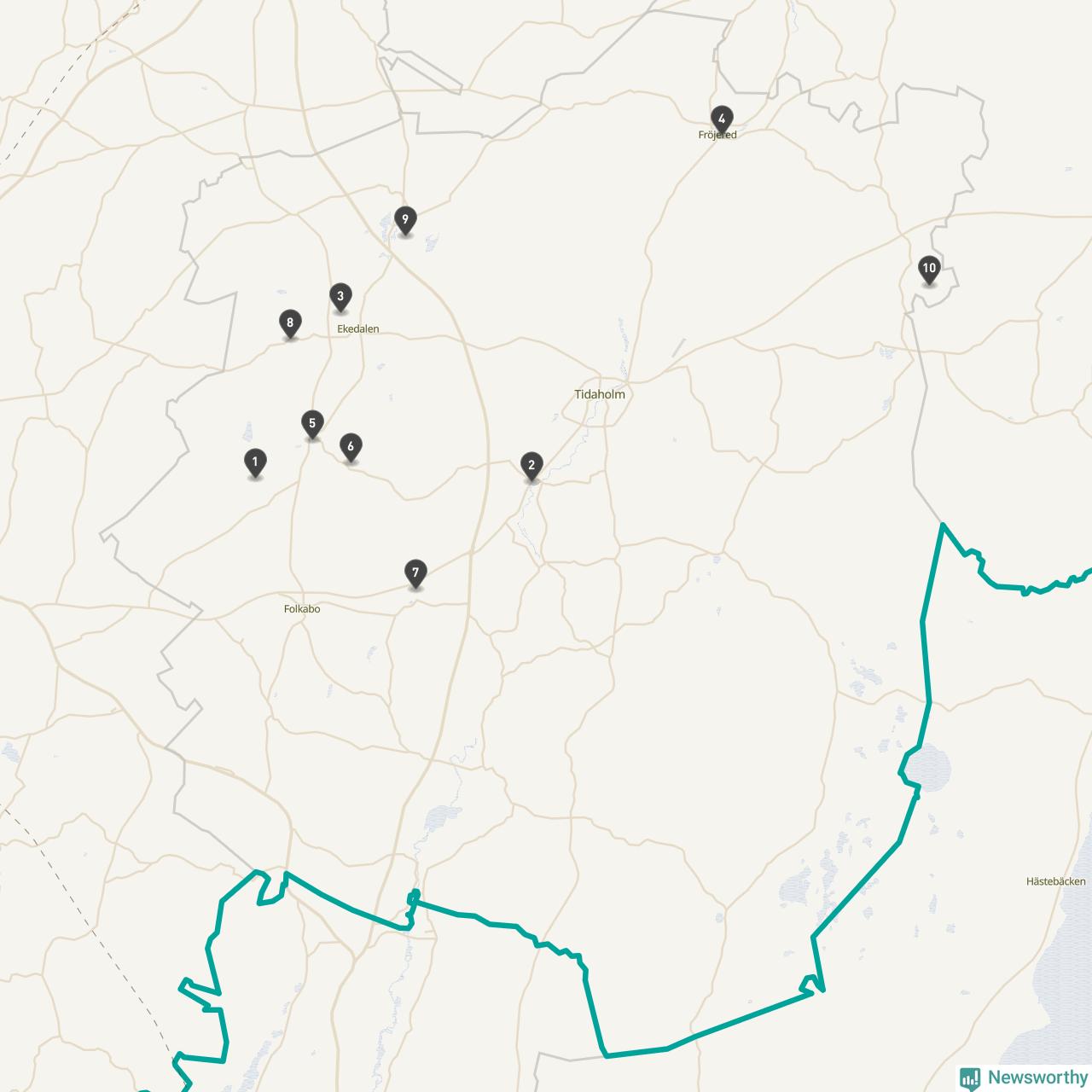 | Tidaholm | 10 | Ödekyrkogård | 41 |