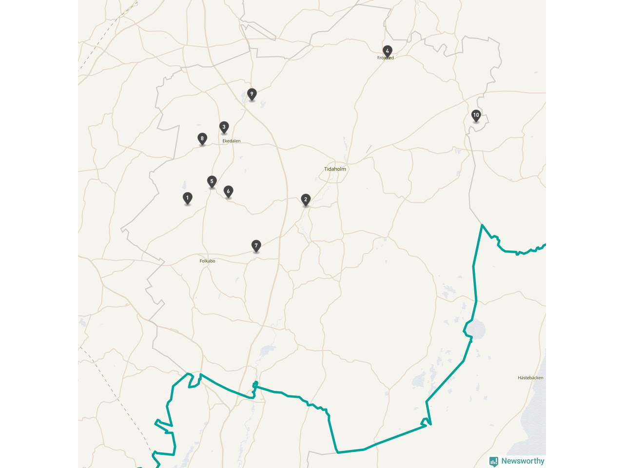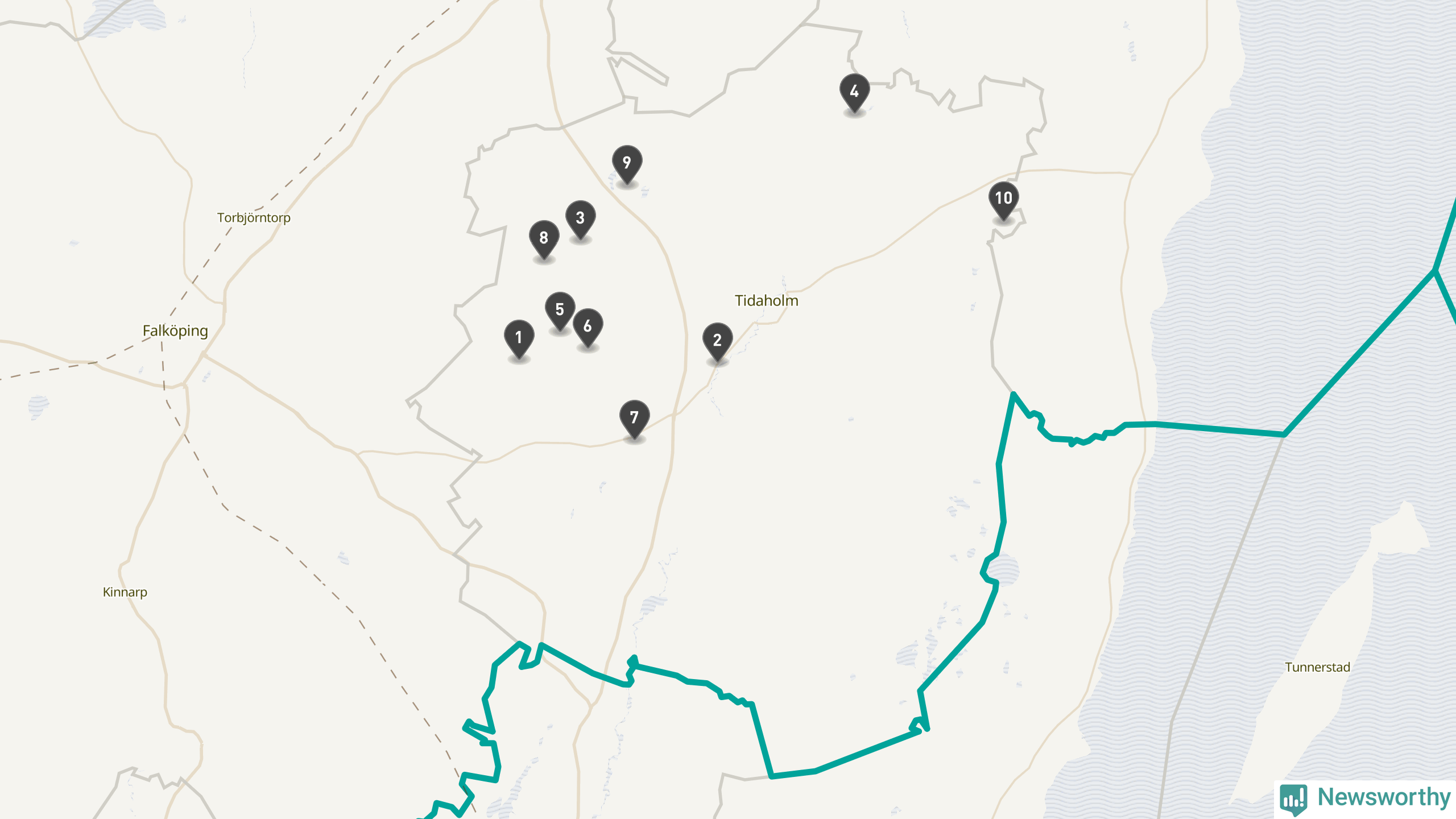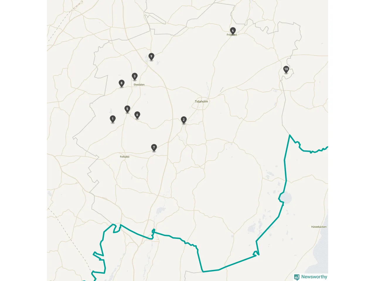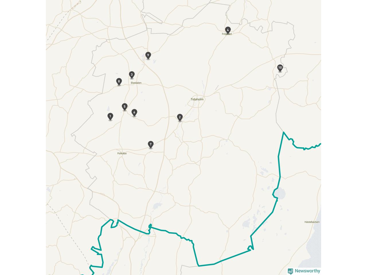 | Tidaholm | 10 | Ödekyrkogård | 41 |