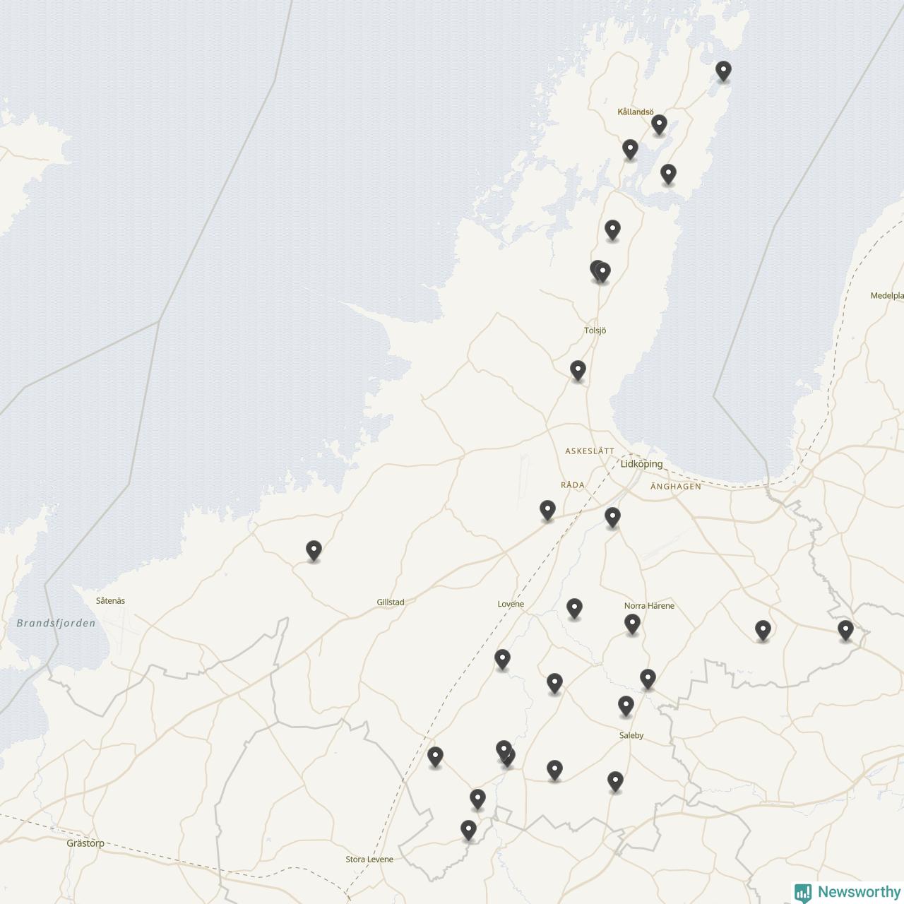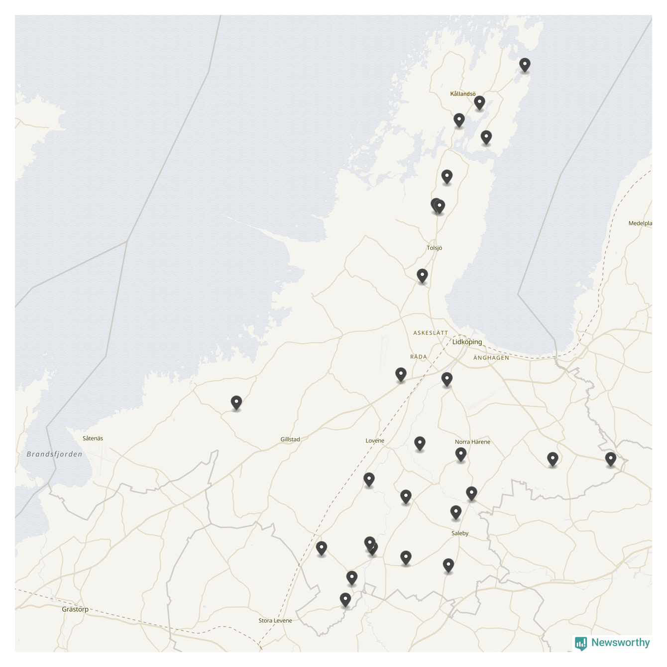 | Tidaholm | 10 | Ödekyrkogård | 41 |