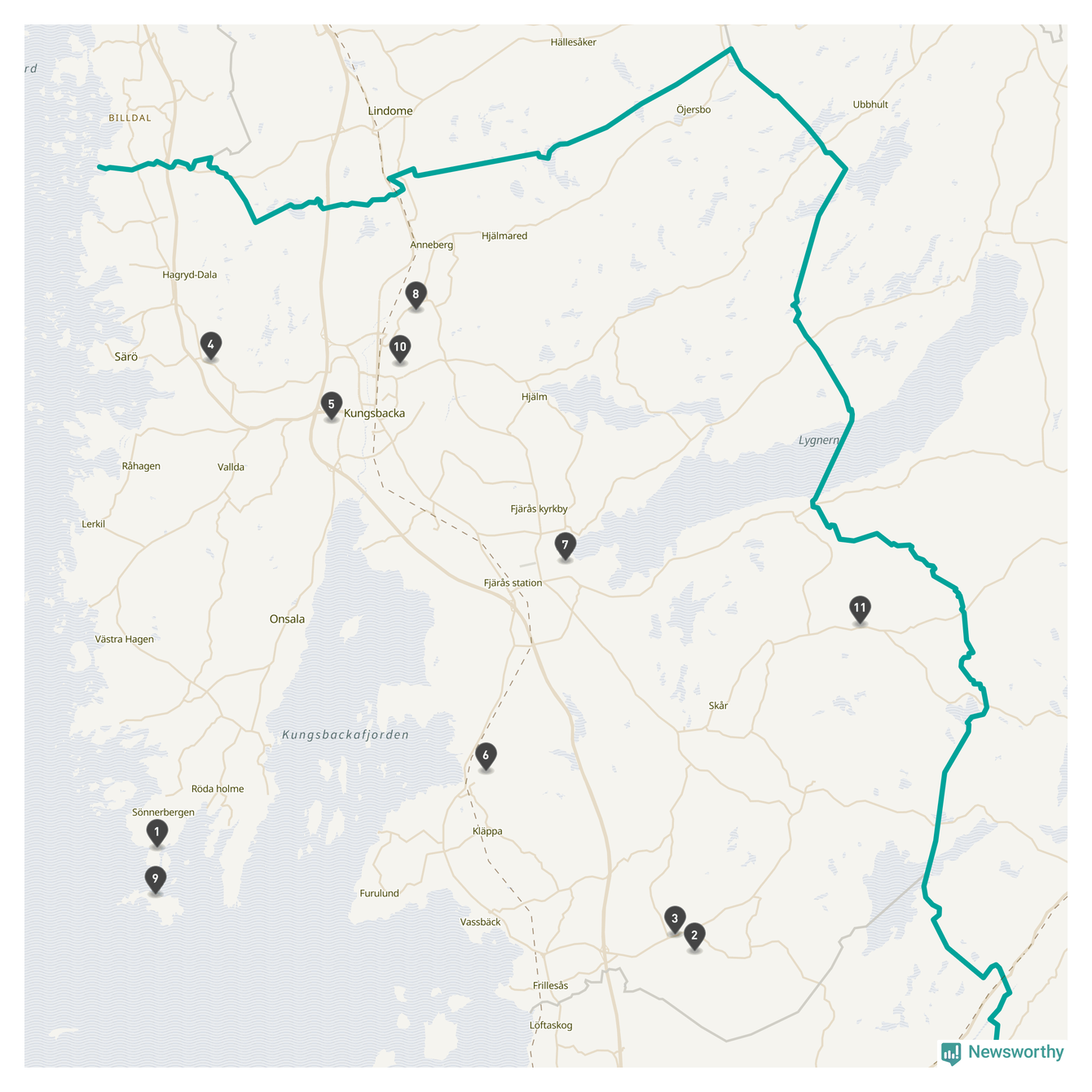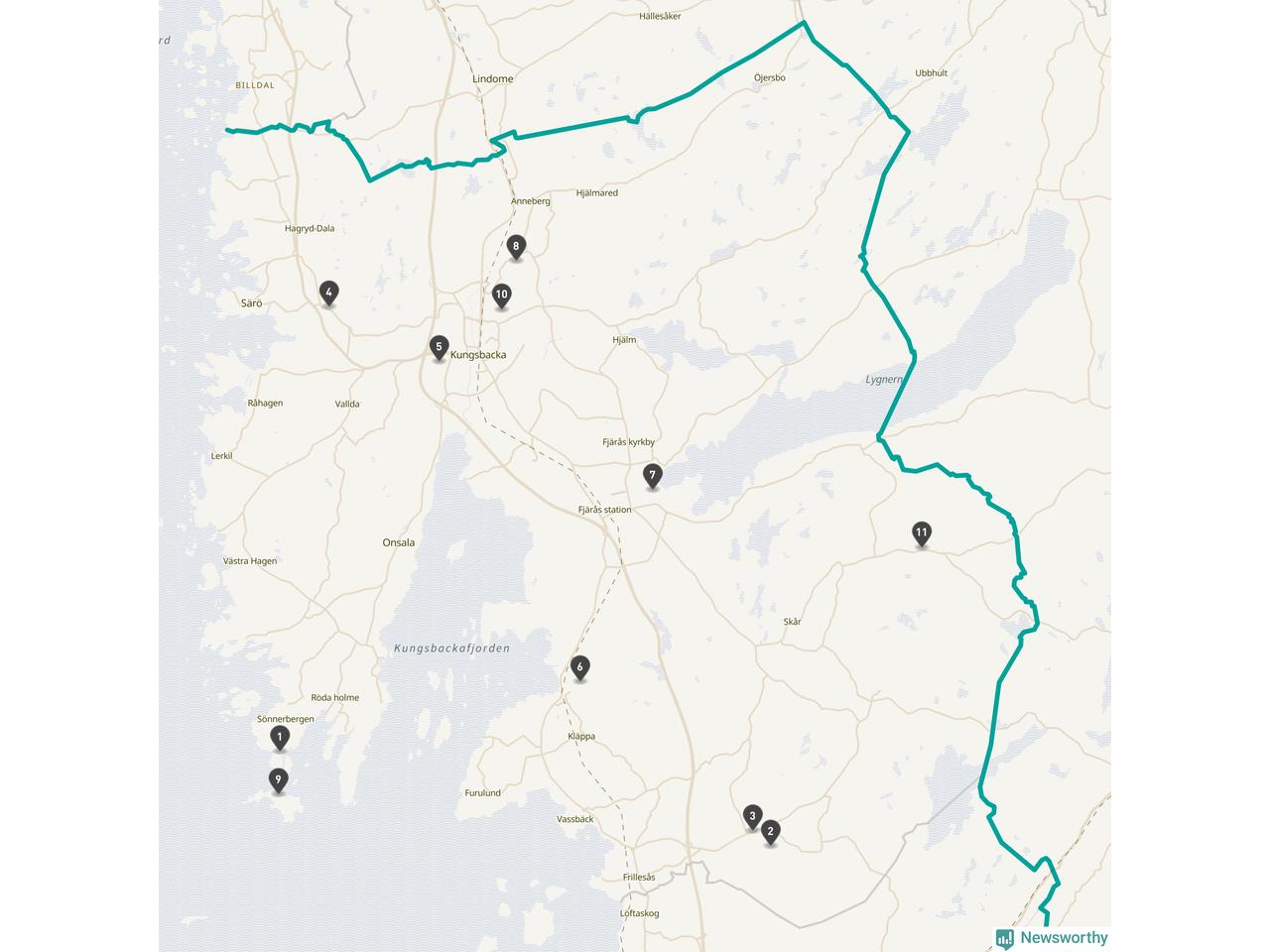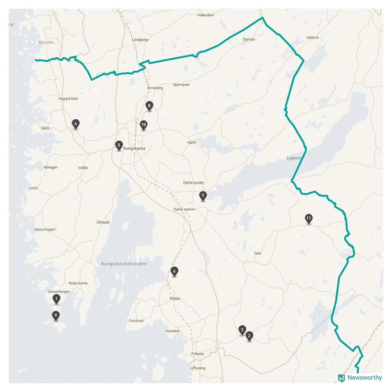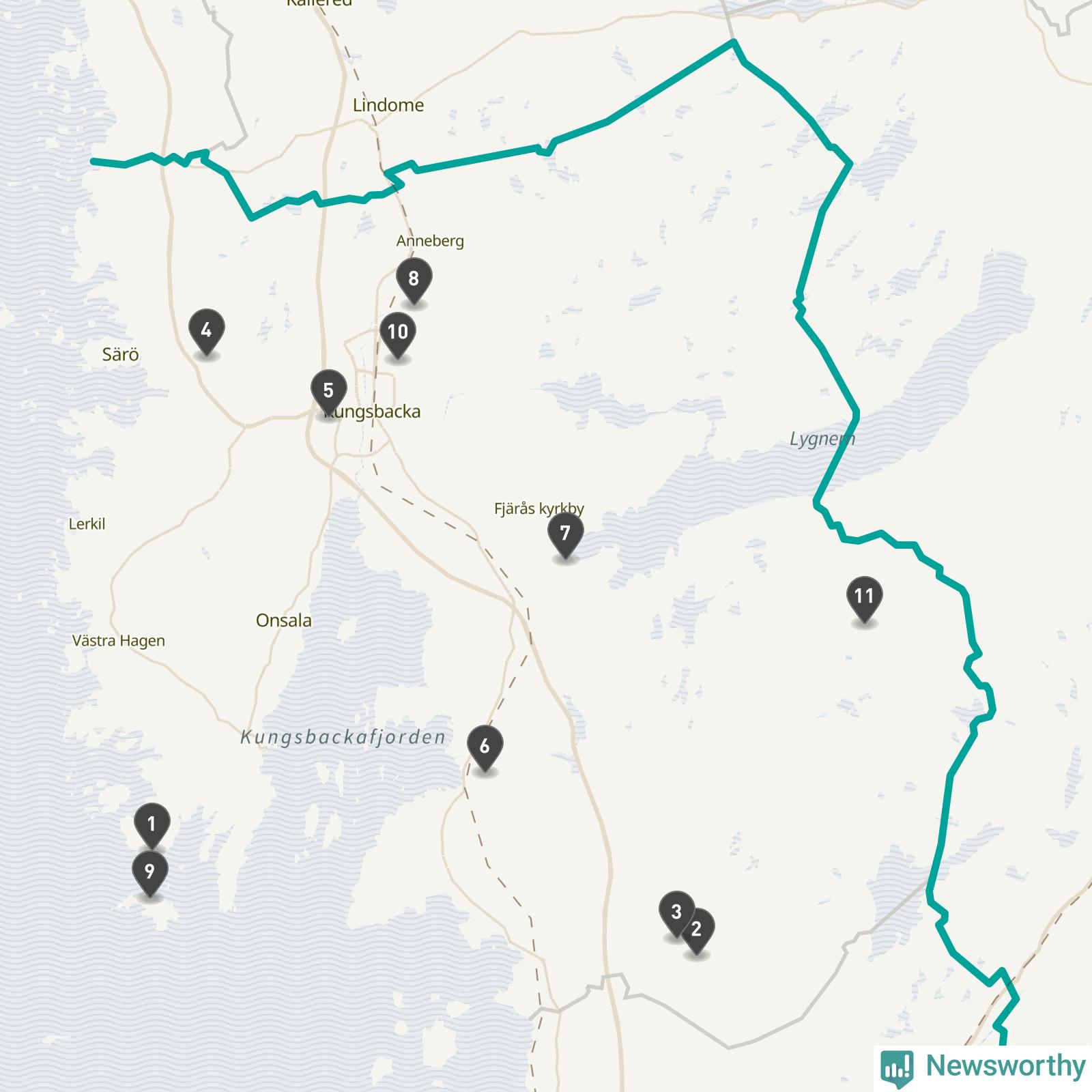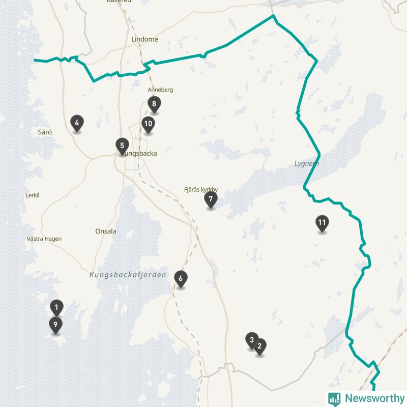 | Kungsbacka | 11 | Pest-/kolerakyrkogård | 42 |