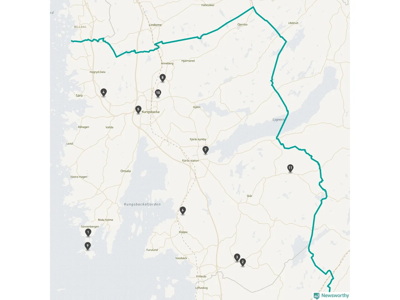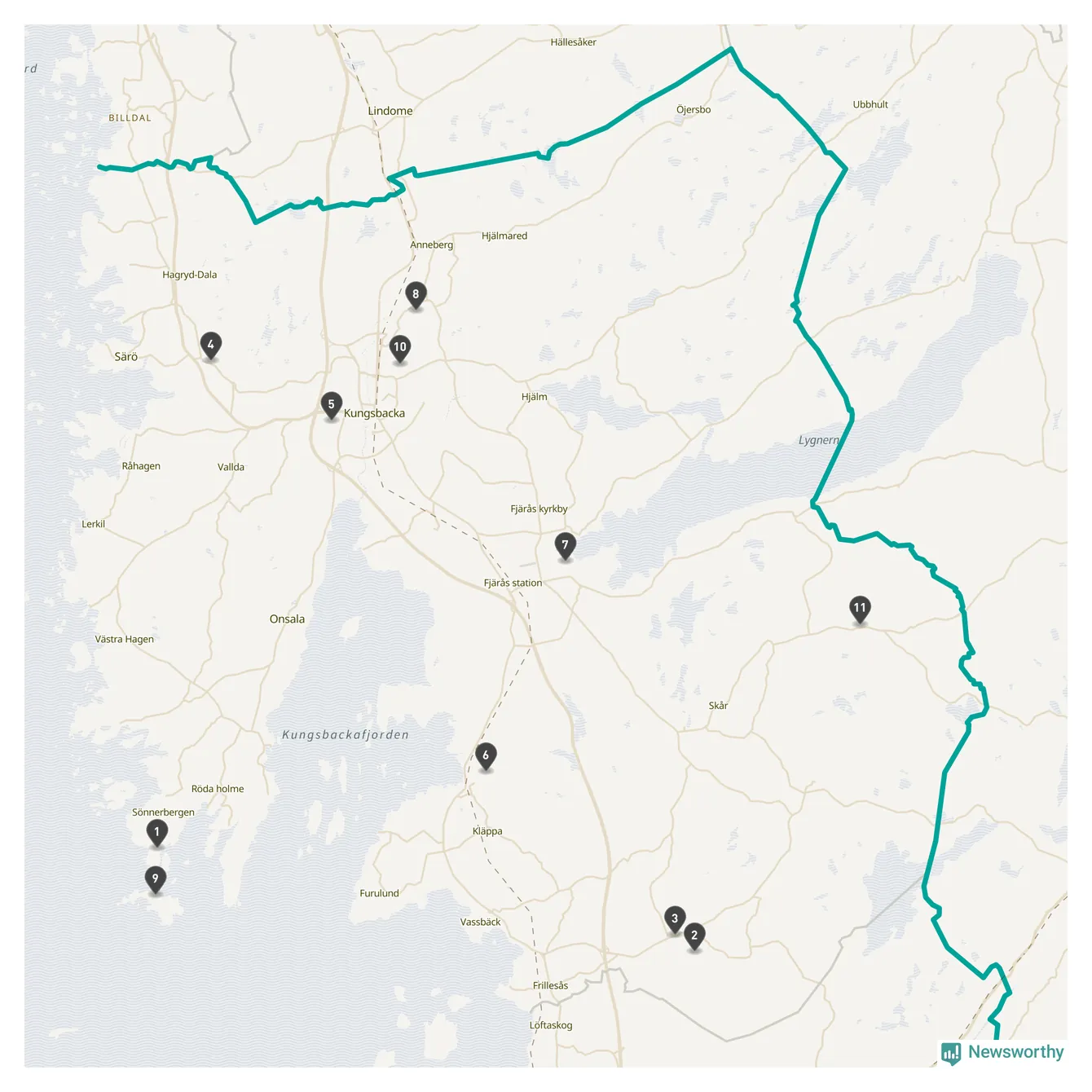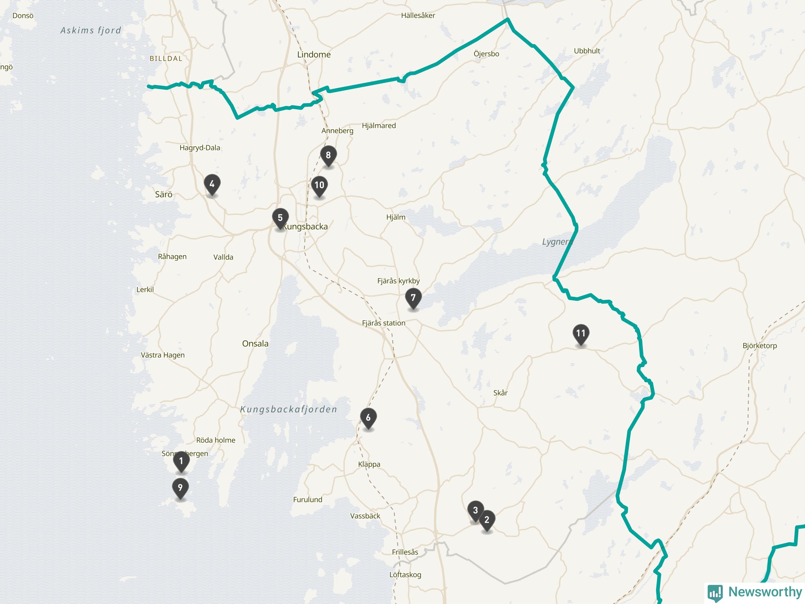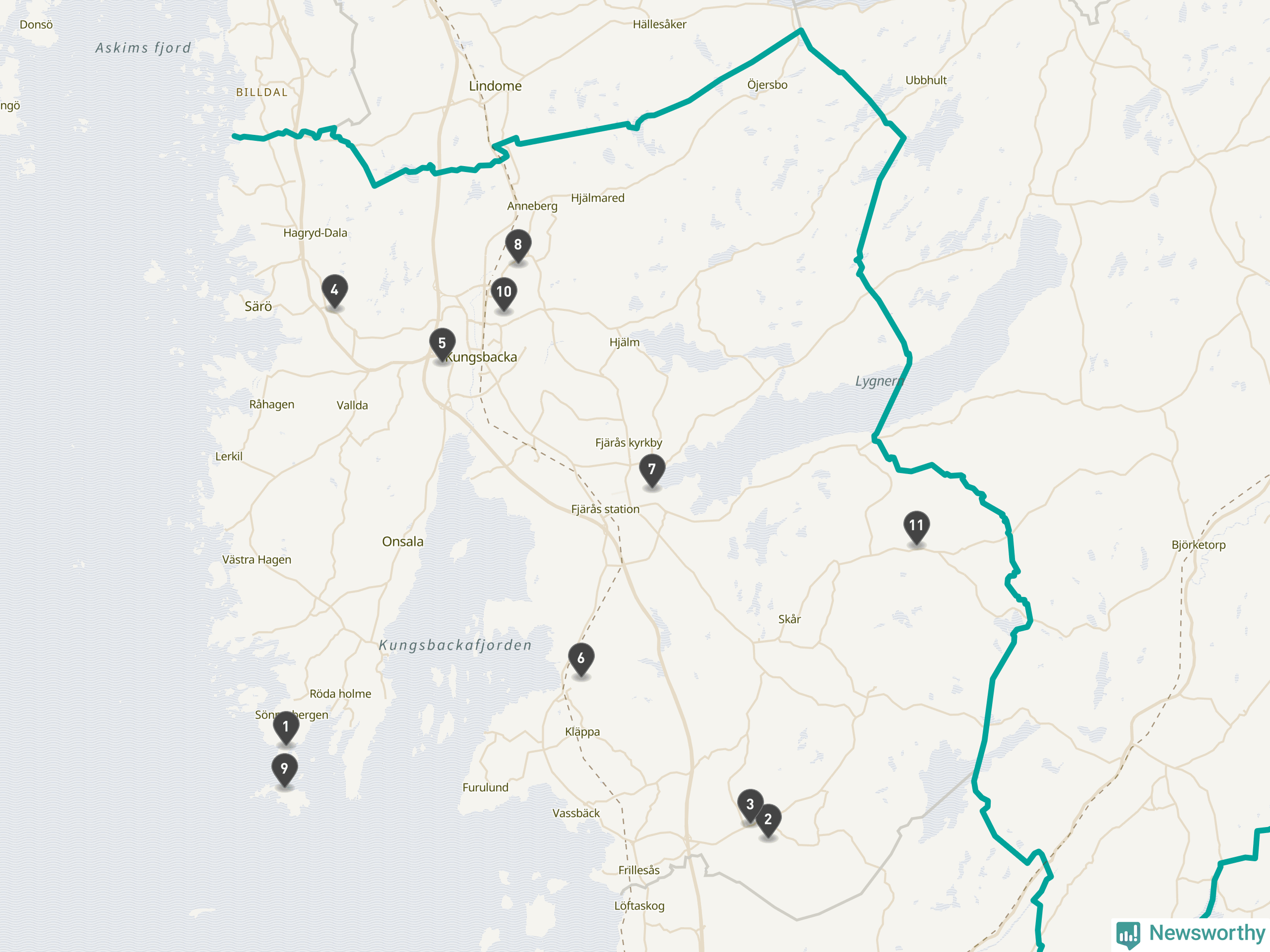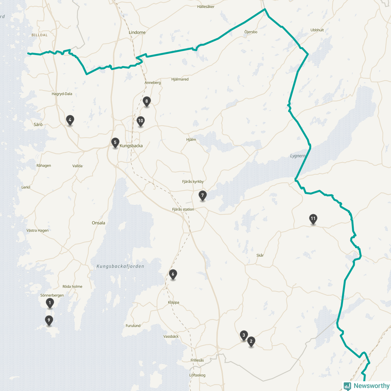 | Kungsbacka | 11 | Pest-/kolerakyrkogård | 42 |